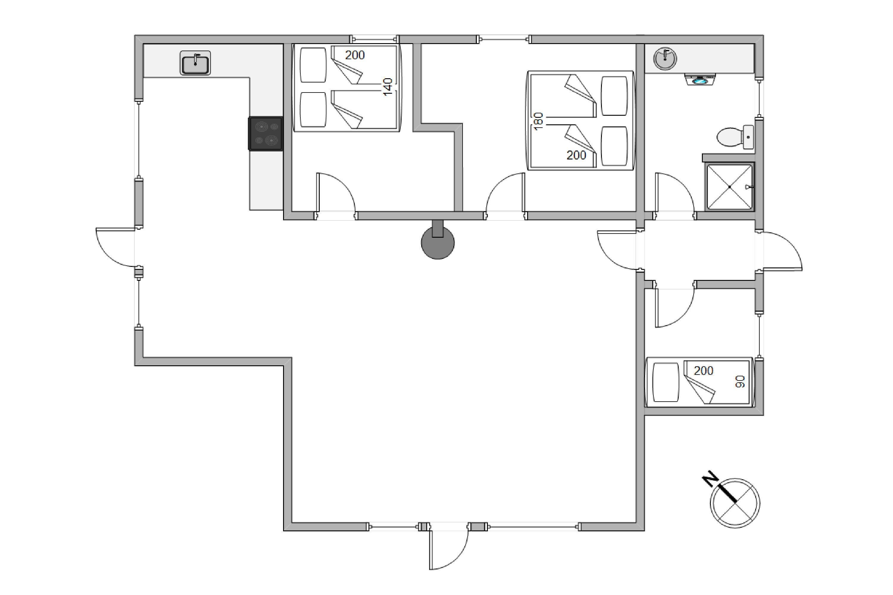 Sommerhuset er indrettet med kærlighed, så I føler jer rigtig godt tilpas, så snart I træder ind ad døren. Husets hjerte er spise- og stuerummet, som er åbnet op ind til køkkenet. Her kan I nyde hinandens selskab, mens dagens måltid bliver tilberedt. Efter middagen sørger opvaskemaskinen for at klare resten for jer, så I kan slappe af. Selve sommerhuset fordeler sig på 3 soverum, hvoraf de 2 har dobbeltsenge og det sidste en enkeltmandsseng.