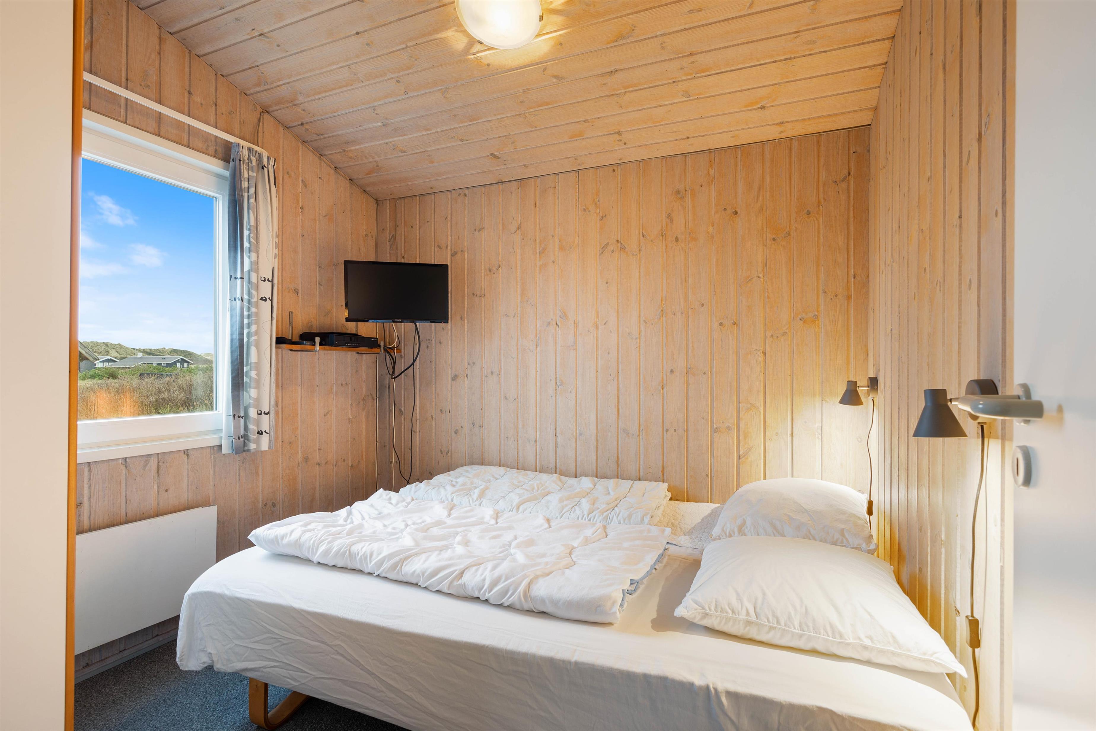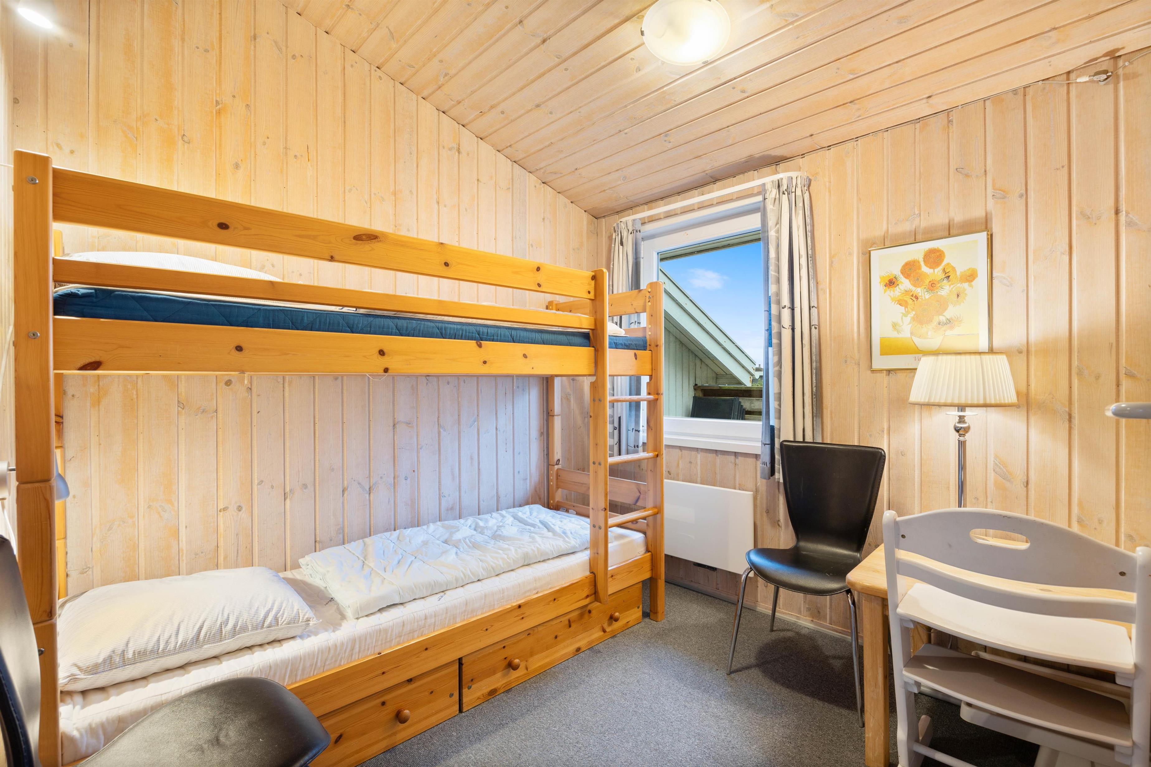 Den åbne og rummelige opholdsstue er udstyret med brændeovn, der sørger for en dejlig varme og ægte feriestemning. Som supplement til brændeovnen, kan I benytte jer af den energisparende varmepumpe, der også sikrer et behageligt indeklima. Sommerhuset er indrettet med 12 sovepladser fordelt på 6 soverum, hvoraf 3 af værelserne er udstyret med dobbeltseng, ét med enkeltsenge og de sidste to med køjesenge.