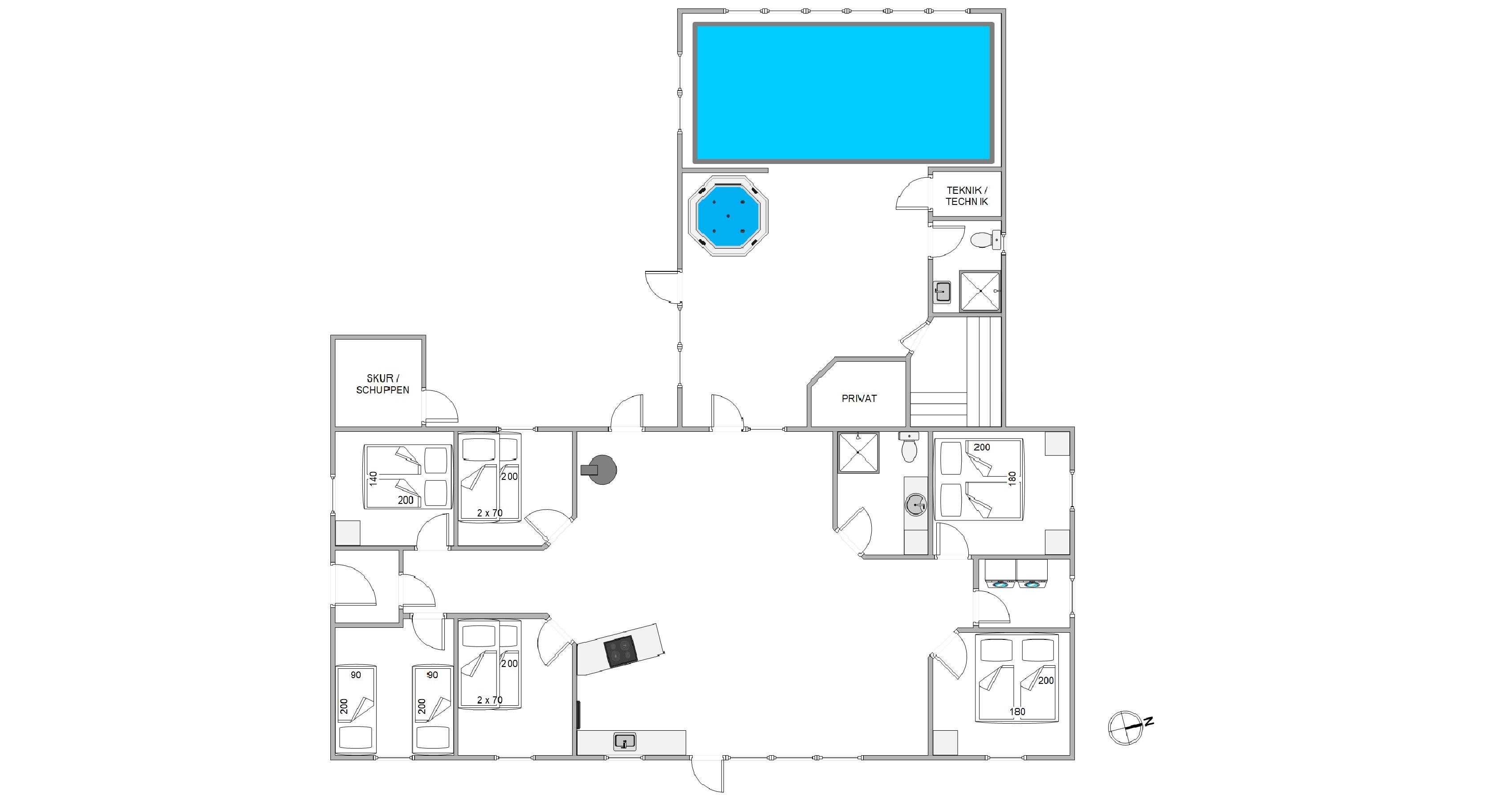 Ydermere finder I 2 badeværelser, der begge er udstyret med gulvvarme, så I om morgenen undgår at få kolde fødder. I feriehusets forfriskende pool kan I sammen med børnene eller vennerne rigtigt få brændt krudt af og desuden blive udfordret af den tilhørende svømmetræner. Efter nogle gode timer i poolen, kan I afslutningsvis nyde godt af den boblende spa efterfulgt af en tur i den varme sauna.