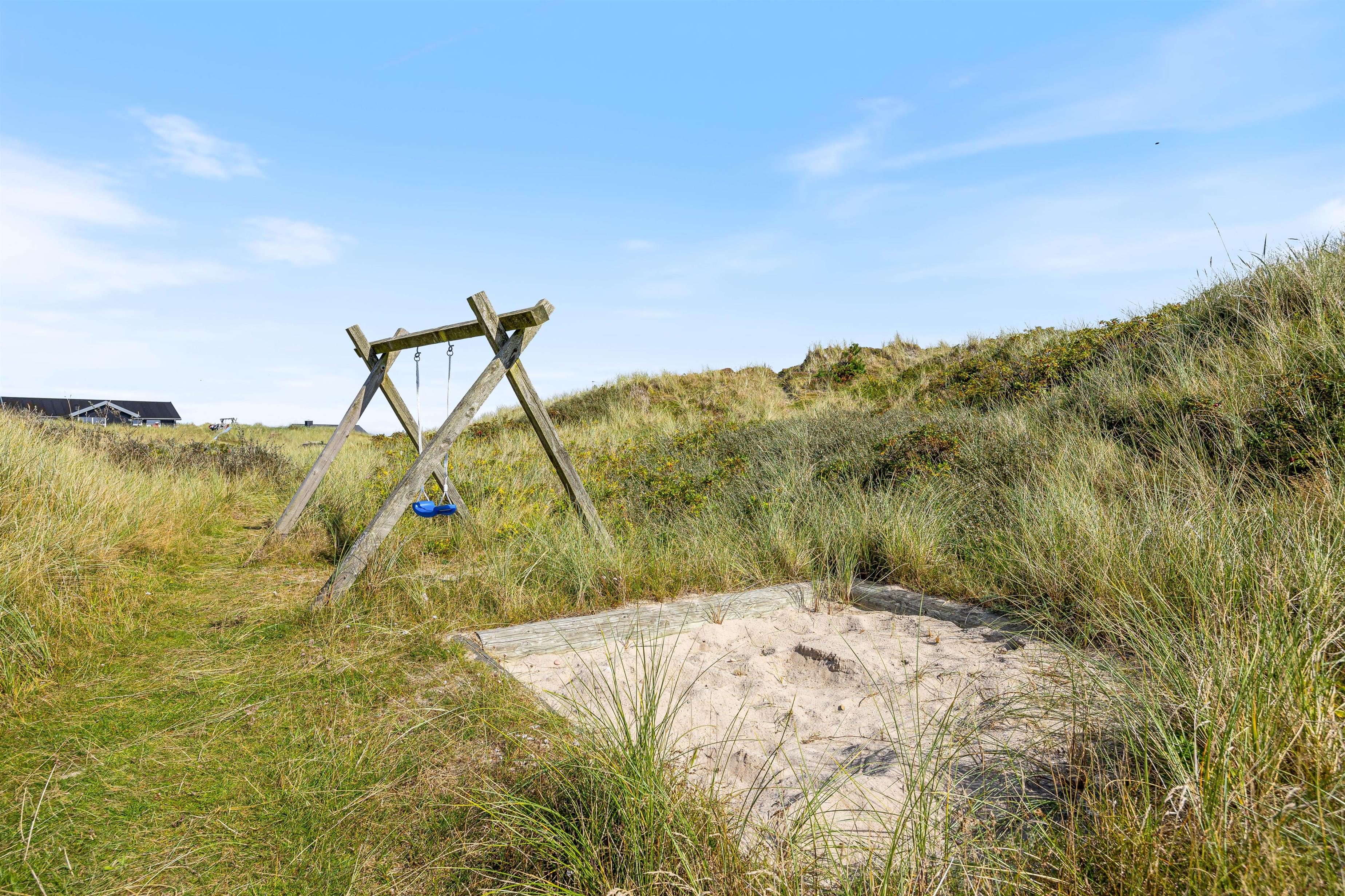 Udeareal med gynge og sandkasse – Vesterhavet som nabo her på Sneppedalen 64