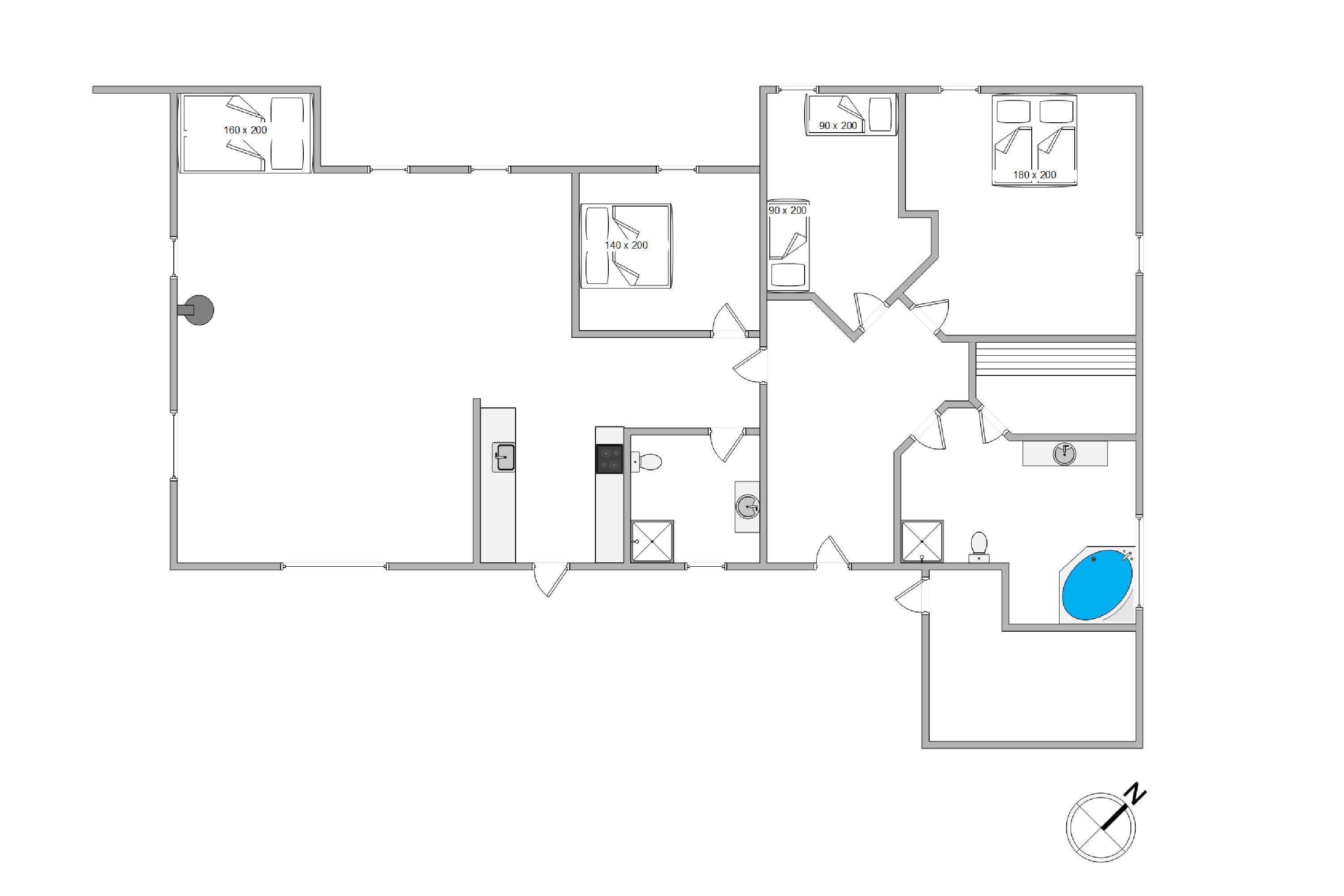 Selve sommerhuset er på 110m2 og fordeler sig på tre soverum, hvoraf det ene har dobbeltseng. Der er både brændeovn, spabad og sauna til at skabe en ægte sommerhusstemning.