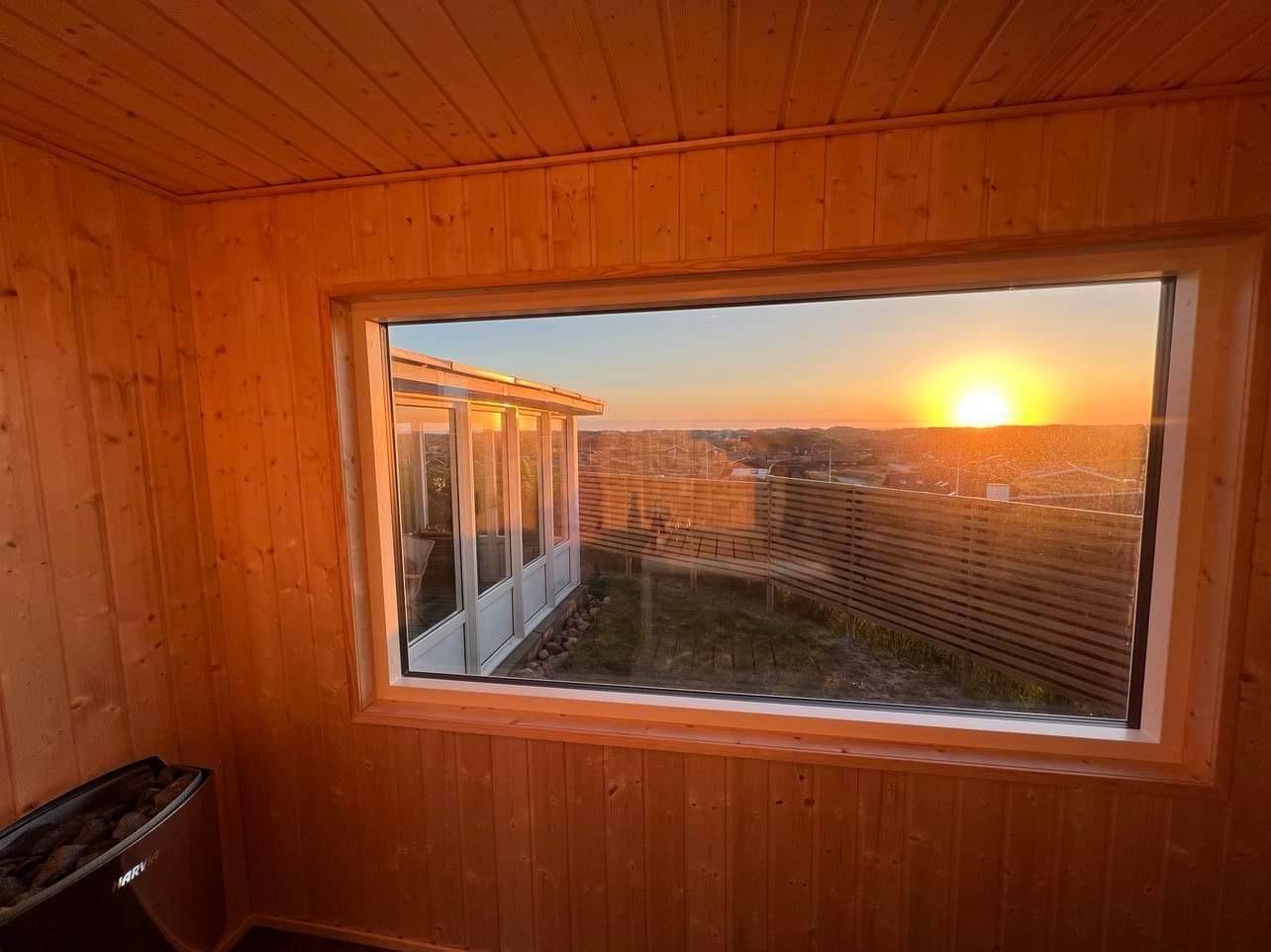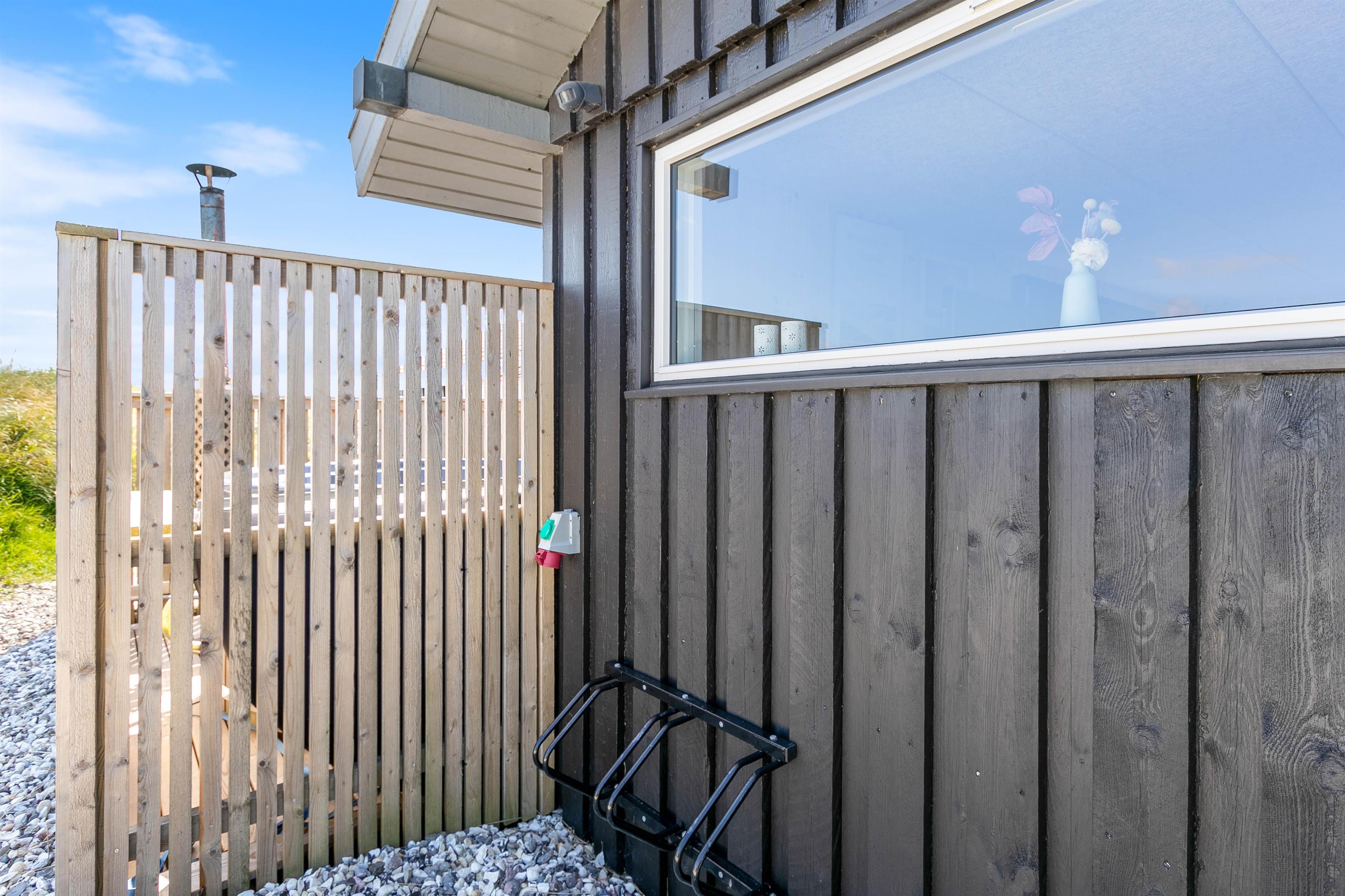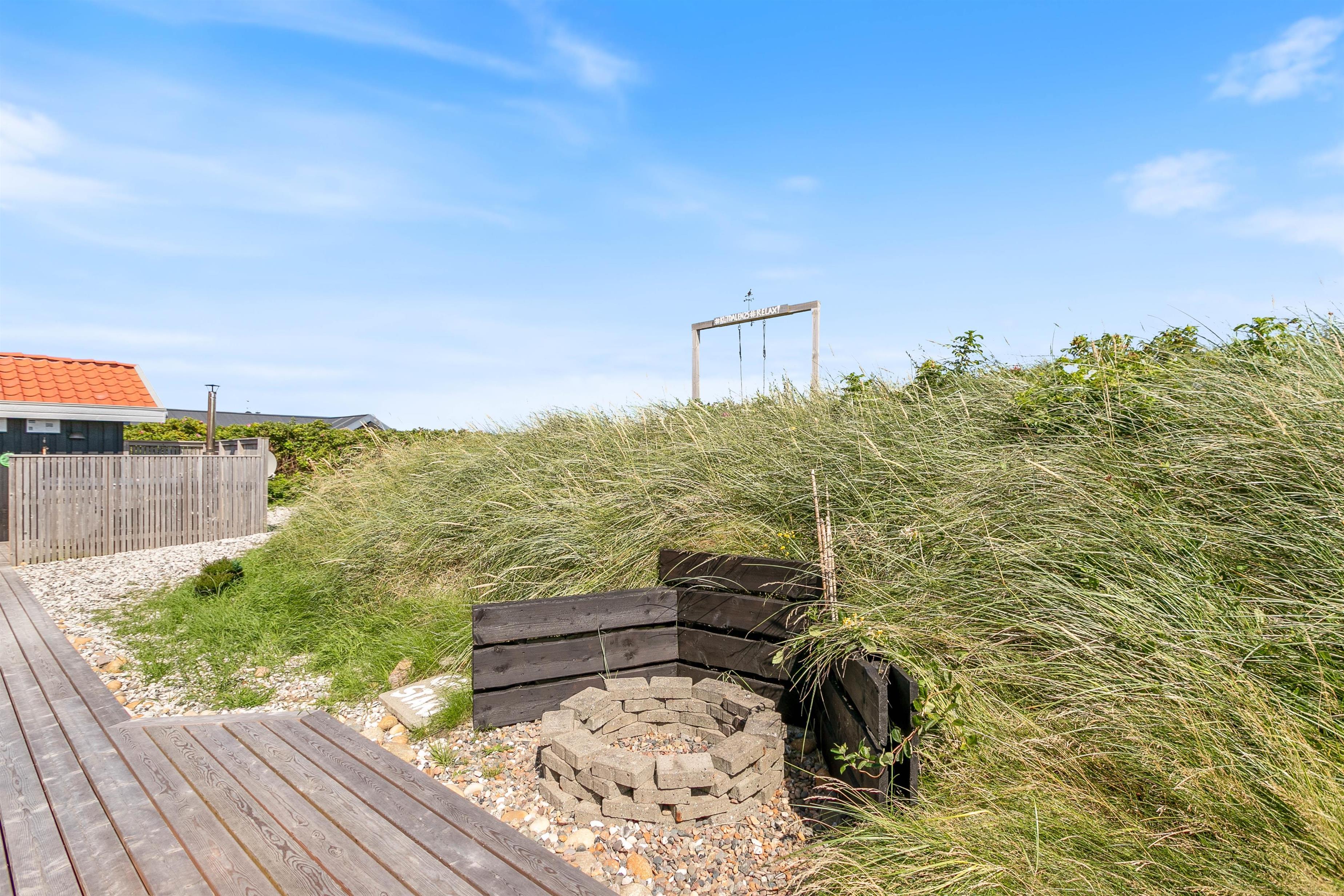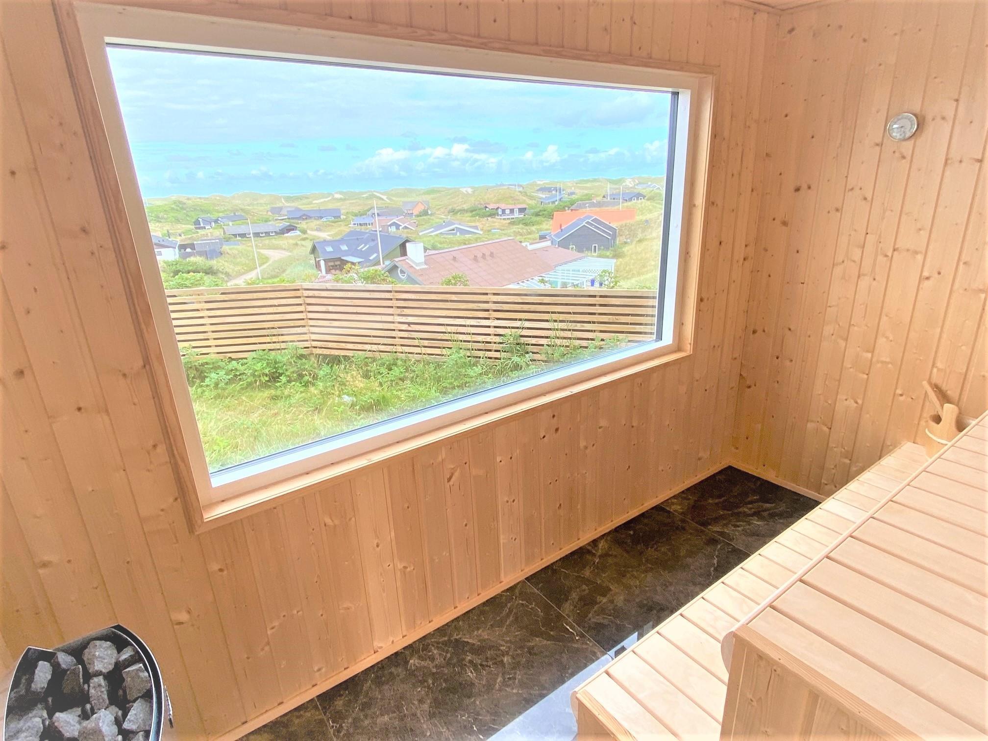 Som et særligt højdepunkt har feriehuset en udendørssauna hvor udsigten over Vesterhavet med de smukke solnedgange vil være fristende for enhver. Derudover finder I et vildmarksbad og et udendørs brusebad, hvorfra I på de varme sommerdage kan nyde et koldt gys fra det kolde vand, og på samme måde kan I på de lidt køligere dage nyde det varme vand fra udebruseren. Både sauna, vildmarksbad og udebruseren er godt beskyttet mod uønskede blikke, - I har på denne måde derfor gode muligheder for rigtigt at nyde den lille wellness-oase.