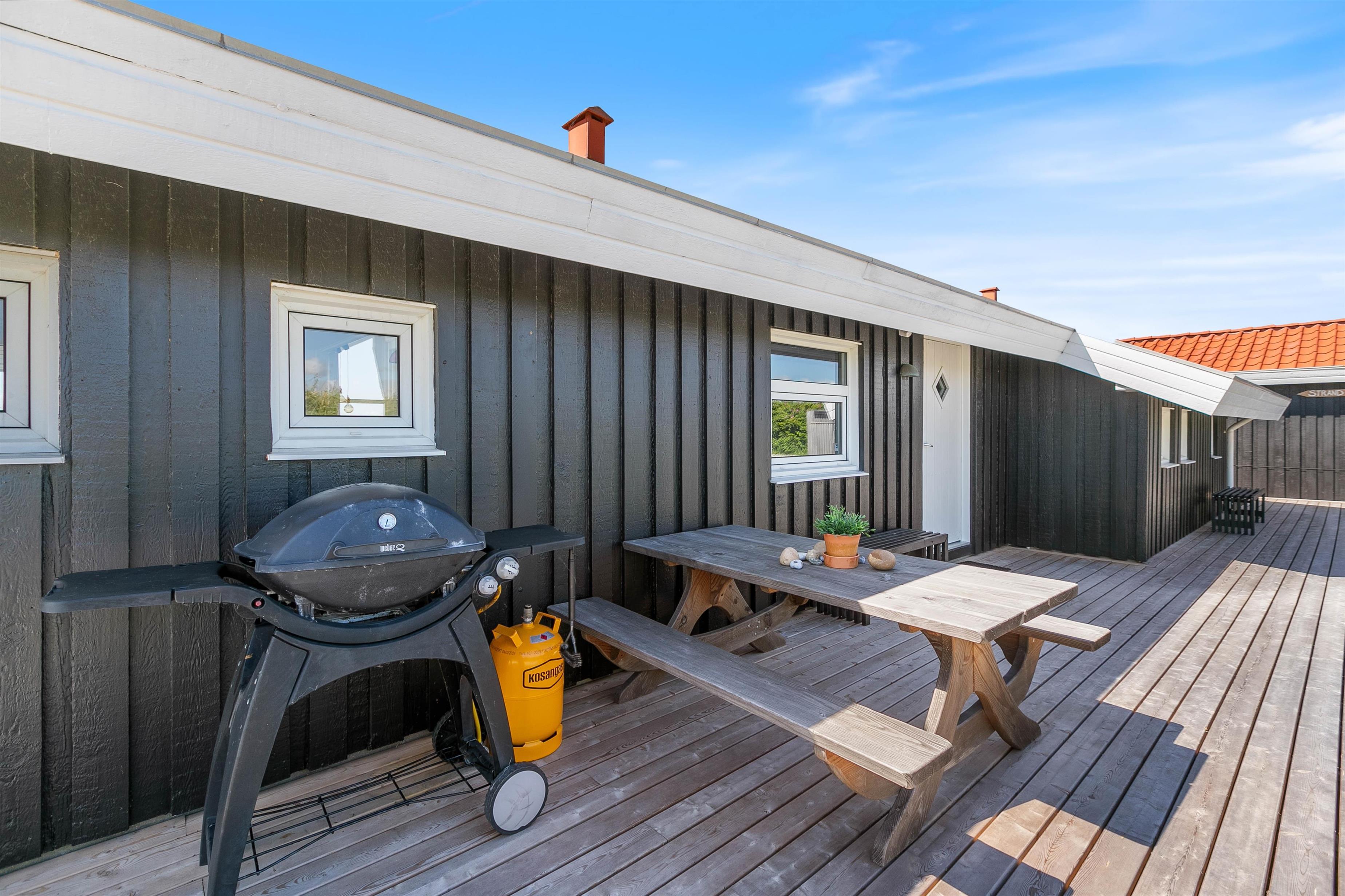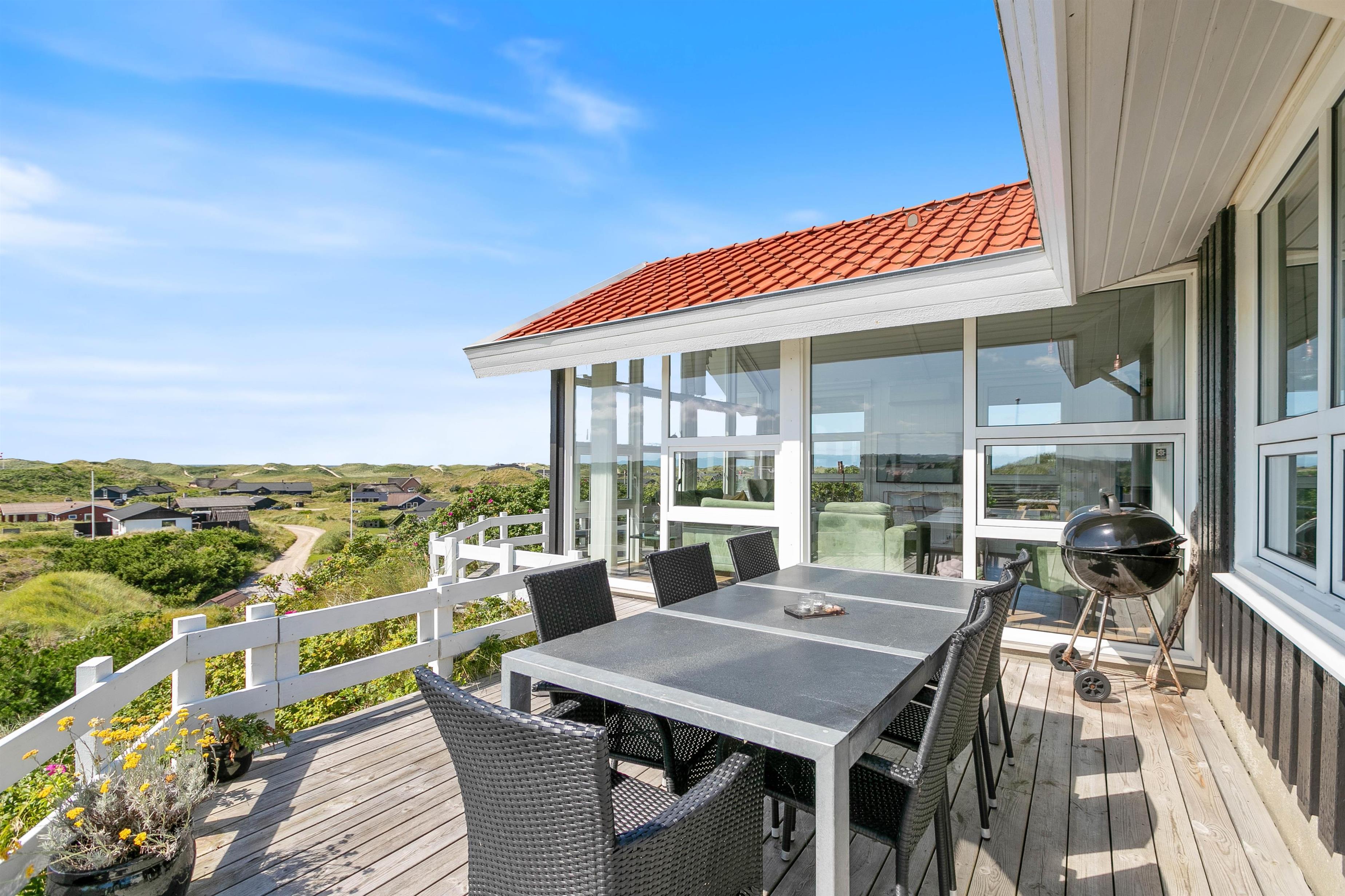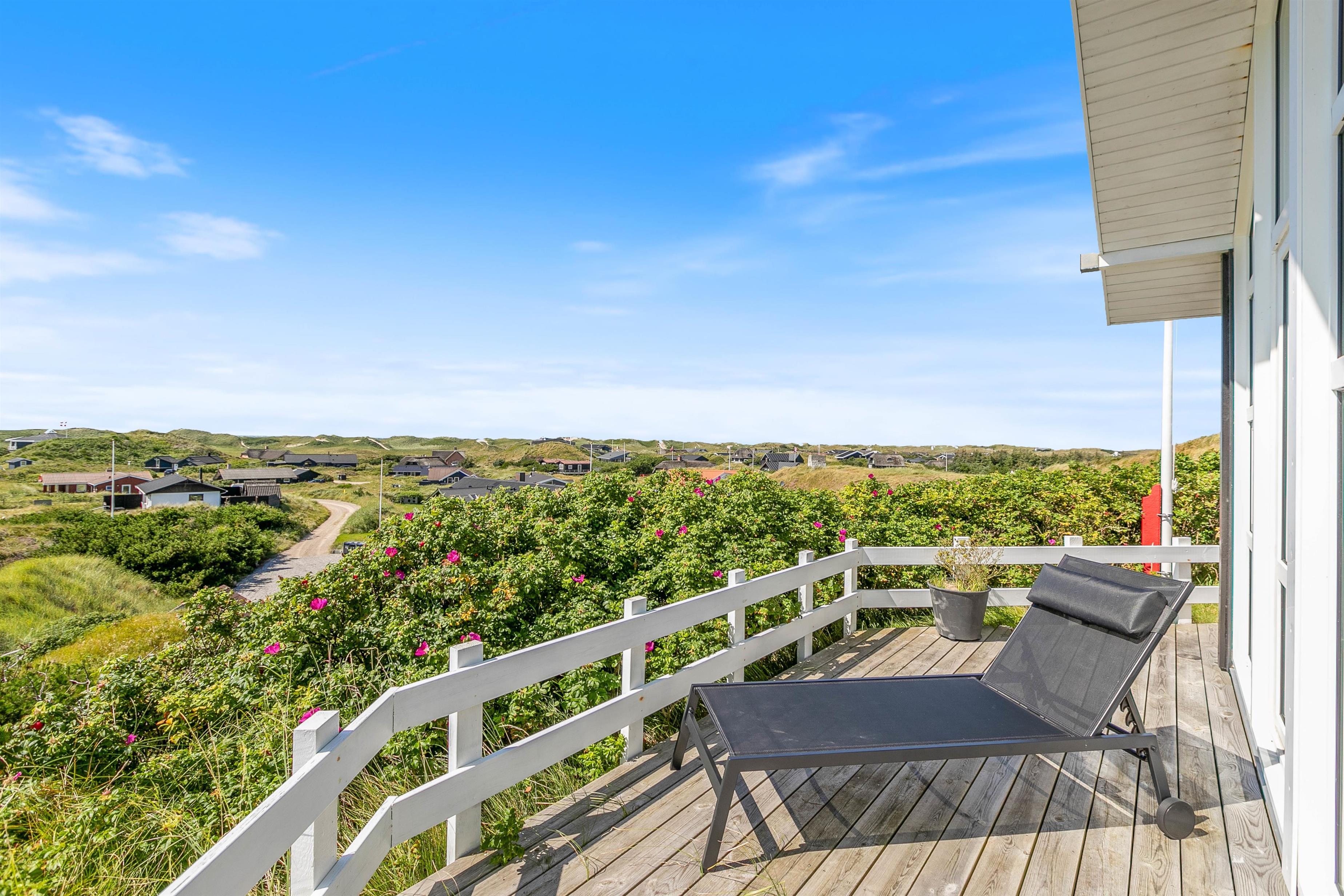 Selv køreturen op til dit feriehus på Klitdalen 25 vil imponere dig. Når du først er nået op på toppen, vil du blive overvældet af udsigten fra første øjeblik. Terrassen strækker sig hele vejen rundt om huset, og I har en smuk udsigt over Houvig fra alle sider af huset, selv klitterne og Vesterhavet kan ses herfra. Du kan med garanti finde en hyggekrog, hvor I kan nyde en lækker middag fra gasgrillen.
