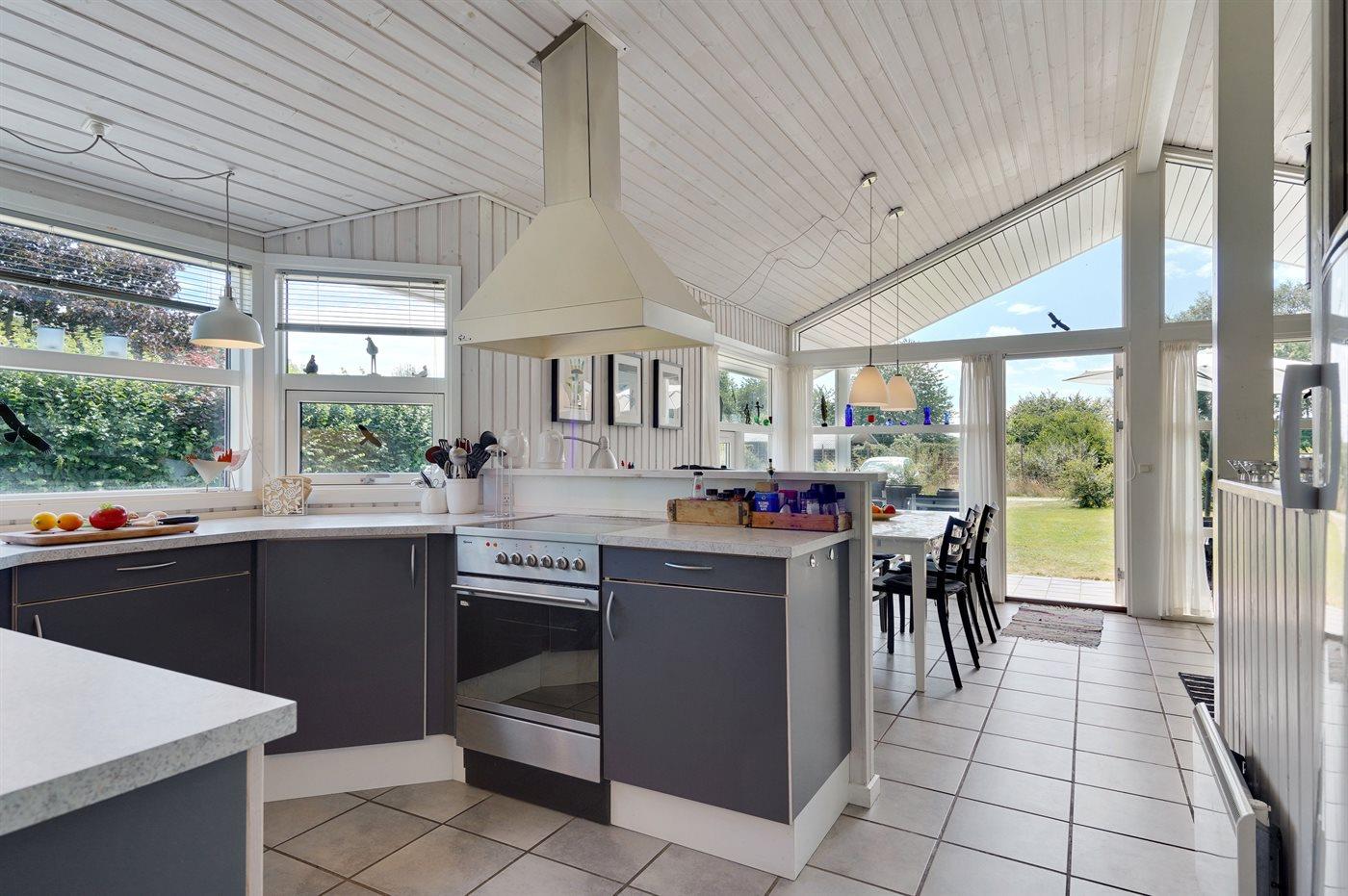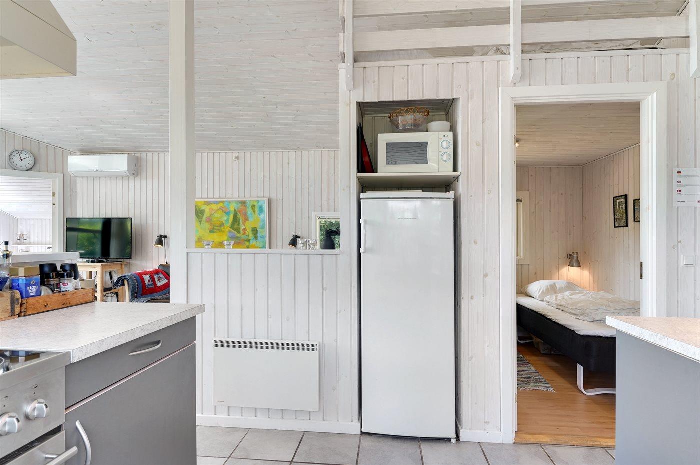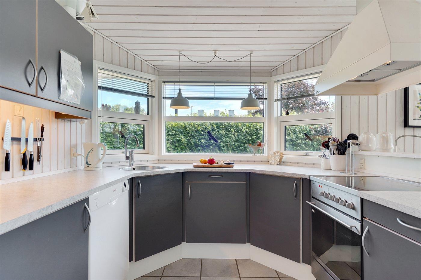 Køkkenet er udstyret med 1 køleskab. Der er 4 keramiske kogeplader, varmluftovn, mikrobølgeovn samt opvaskemaskine.