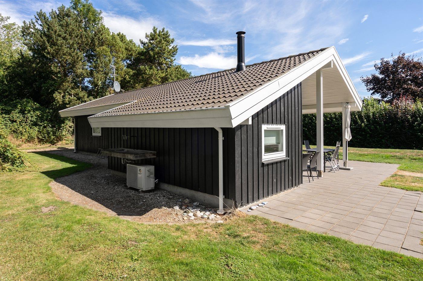 Ferieboligen er beliggende på en 1227 m² stor havegrund. Der er 375 m til havet. Nærmeste forretning er beliggende i en afstand af 3000 m. Til ferieboligen hører åbent terrasseareal. Desuden er der overdækket terrasse. Grill til rådighed. Parkering ved ferieboligen.