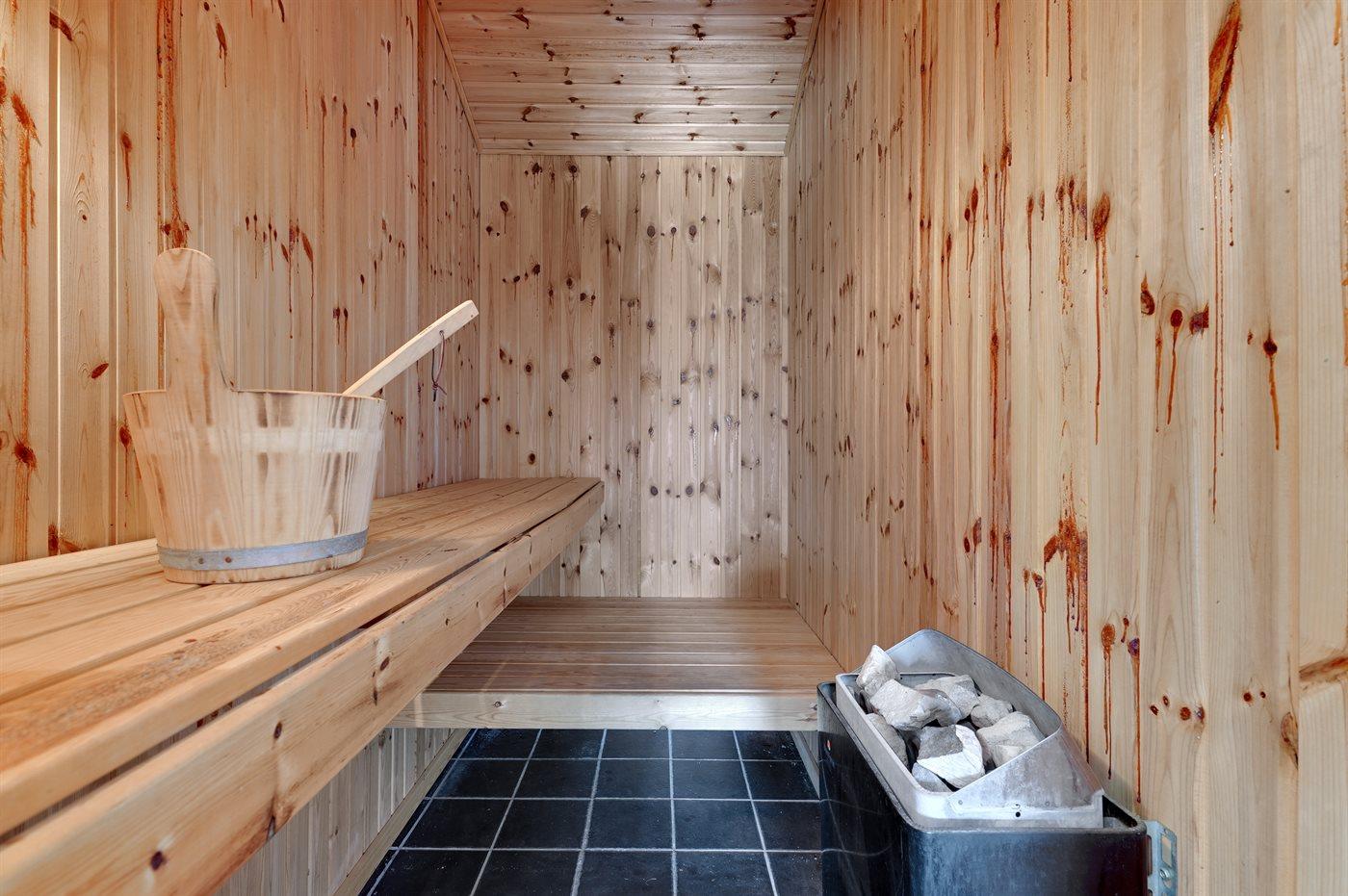 Der er 1 badeværelse med bruseniche og 1 toilet.. Der er gulvvarme på 1 badeværelse. I saunaen er der mulighed for afslapning.