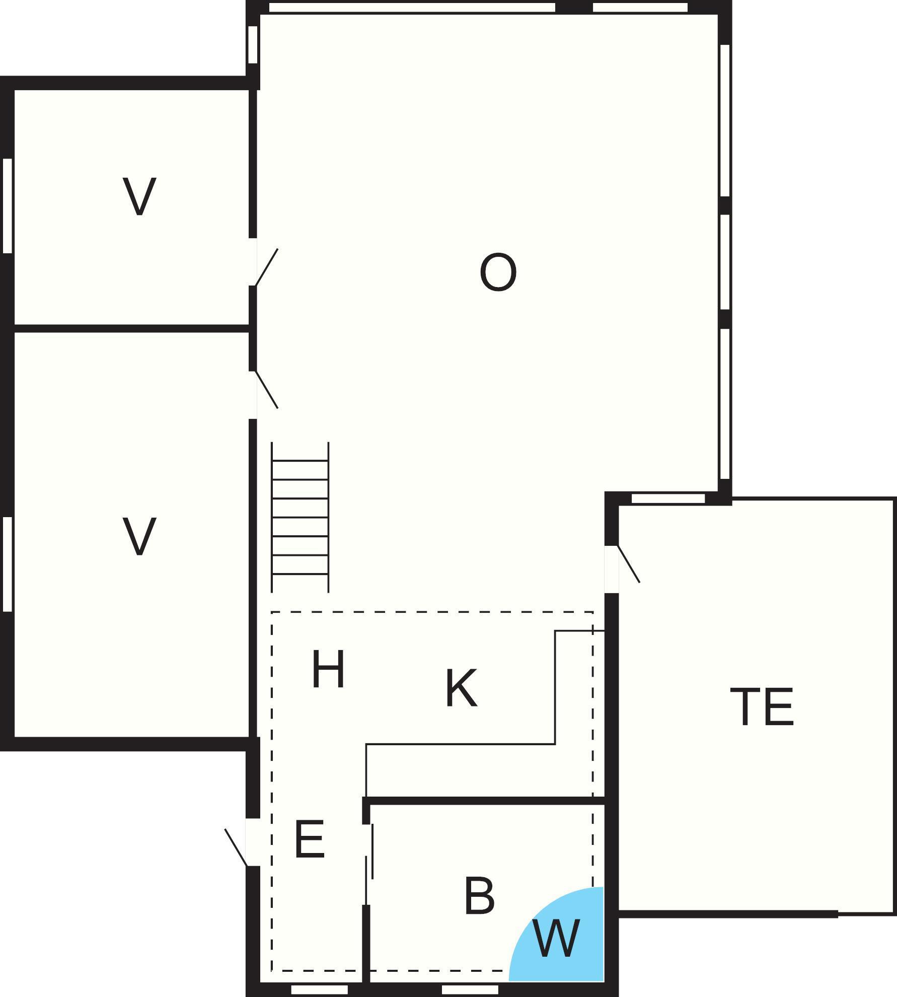 Køkkenafd.: El-komfur, køle-frys, mikroovn, kaffemaskine, opvaskemask.