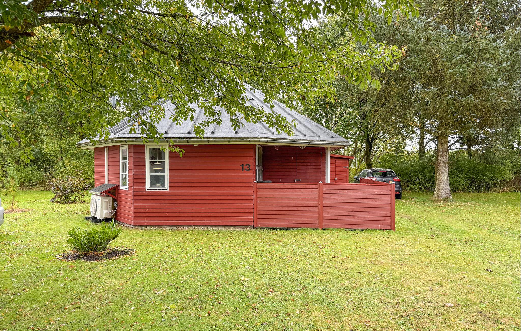 Oplev et charmerende og unikt feriehus med rund arkitektur og overdækket terrasse i naturskønne Hovborg.
