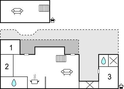 Badeværelse 3m2 (nr. 1) - WC. Varmt og koldt vand. Bruser