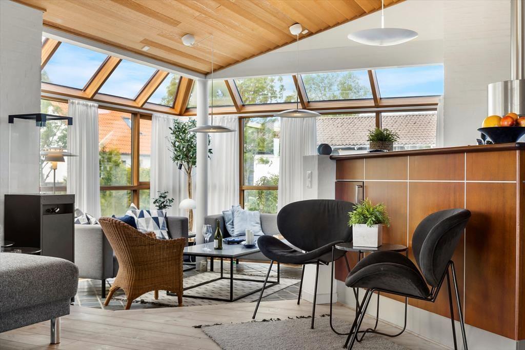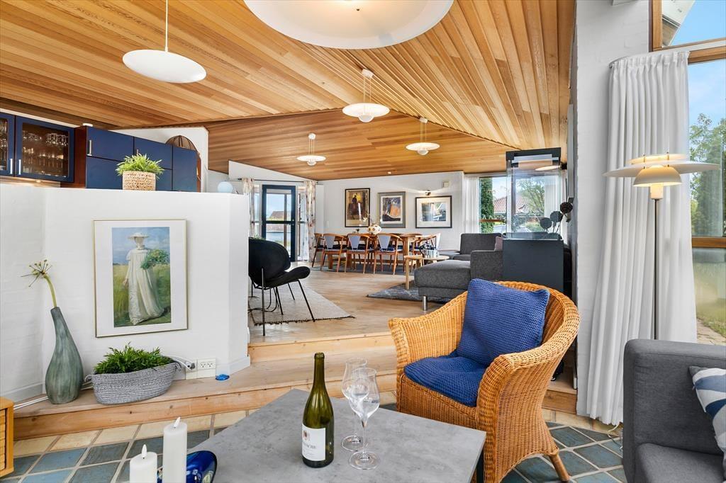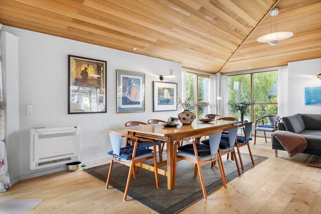 Sommerhuset byder dig velkommen med en varm og indbydende atmosfære. De lyse rum, det høje loft til kip og den charmerende indretning giver en fornemmelse af luft, lys og lethed – præcis som en ferie ved Vesterhavet og Kattegat skal føles. I den store opholdsstue samles I omkring spisebordet til hyggelige måltider, og sofahjørnet indbyder til afslapning, brætspil eller en god film, når dagens udflugter er slut. Det åbne køkken er ideelt, når feriens kokke vil trylle med lokale råvarer, mens snakken flyder frit mellem madlavning og samvær. Med to badeværelser i huset er der tænkt på komfort for alle – og familiens firbenede ven er naturligvis også velkommen, for her må én hund gerne holde ferie med.