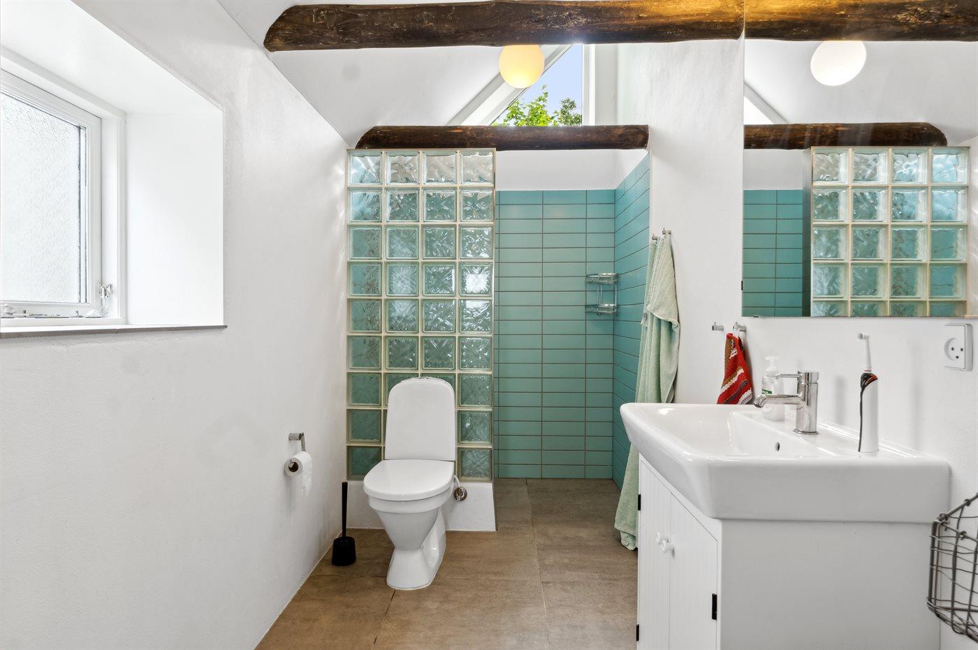 Der er 1 badeværelse med bruseniche og 1 toilet.. Der er gulvvarme på 1 badeværelse.