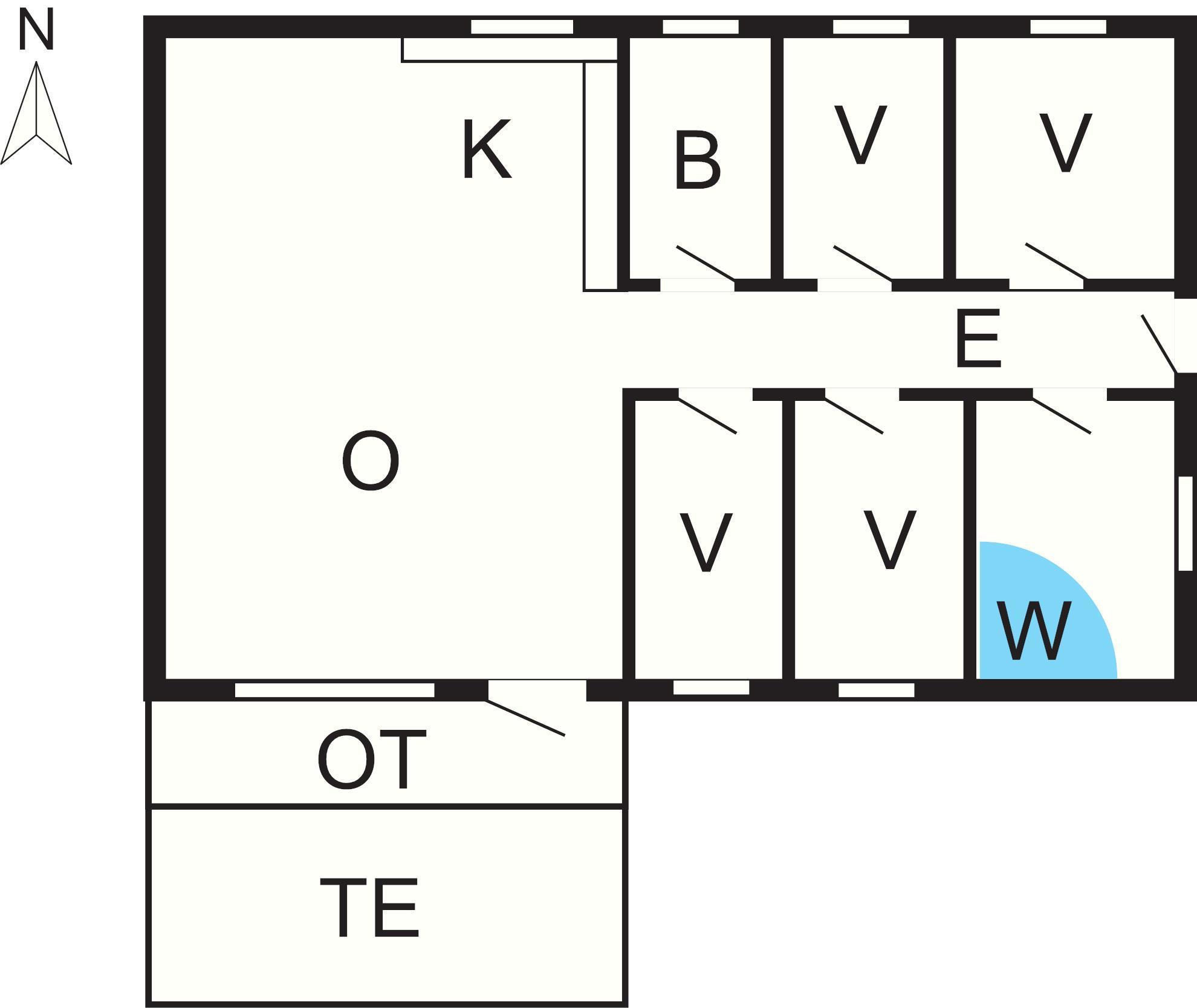 4 Soveværelser: (1DS)+(1DS)+(2K)+(2K)