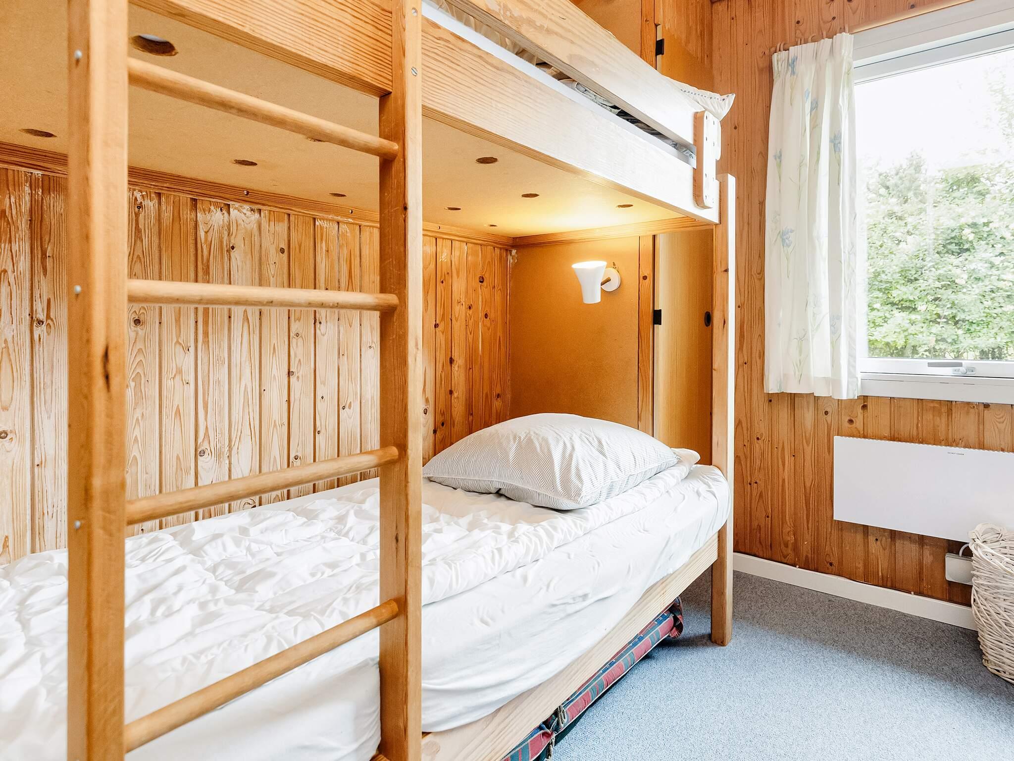 Sommerhus på stor grund, som ligger ugenert, så I kan solbade i fred. Til de små gæster er der sandkasse. Huset er lyst indrettet. Køkkenet er et åbent køkken, så I er i kontakt med familien, når der skal laves mad. Dobbeltsengen måler 140x200 cm, køjeseng måler 190x70 cm.