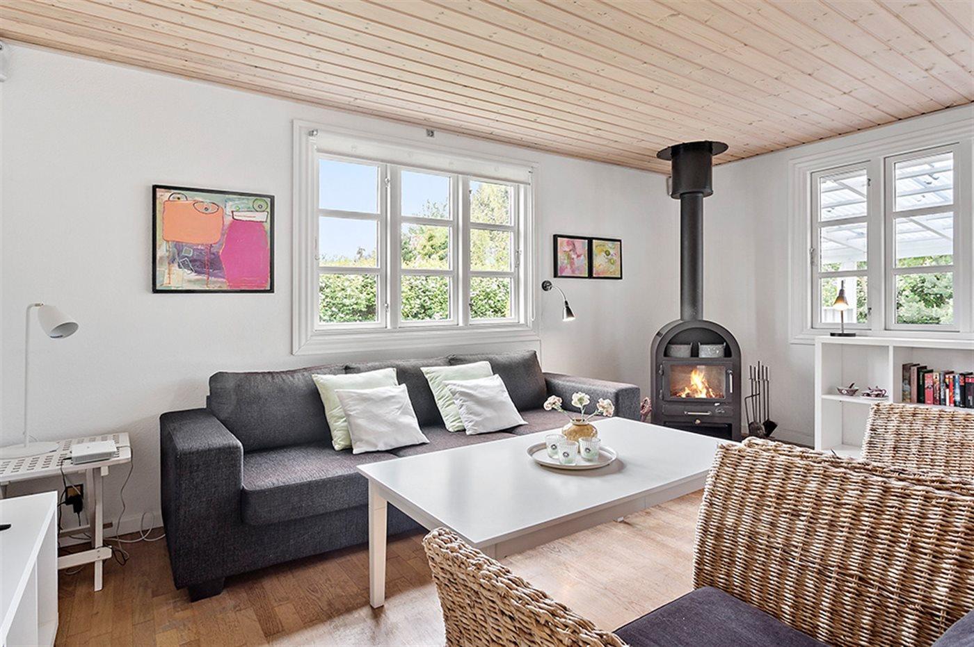 Lyst og indbydende sommerhus med spa, brændeovn og tæt på stranden i Hummingen.