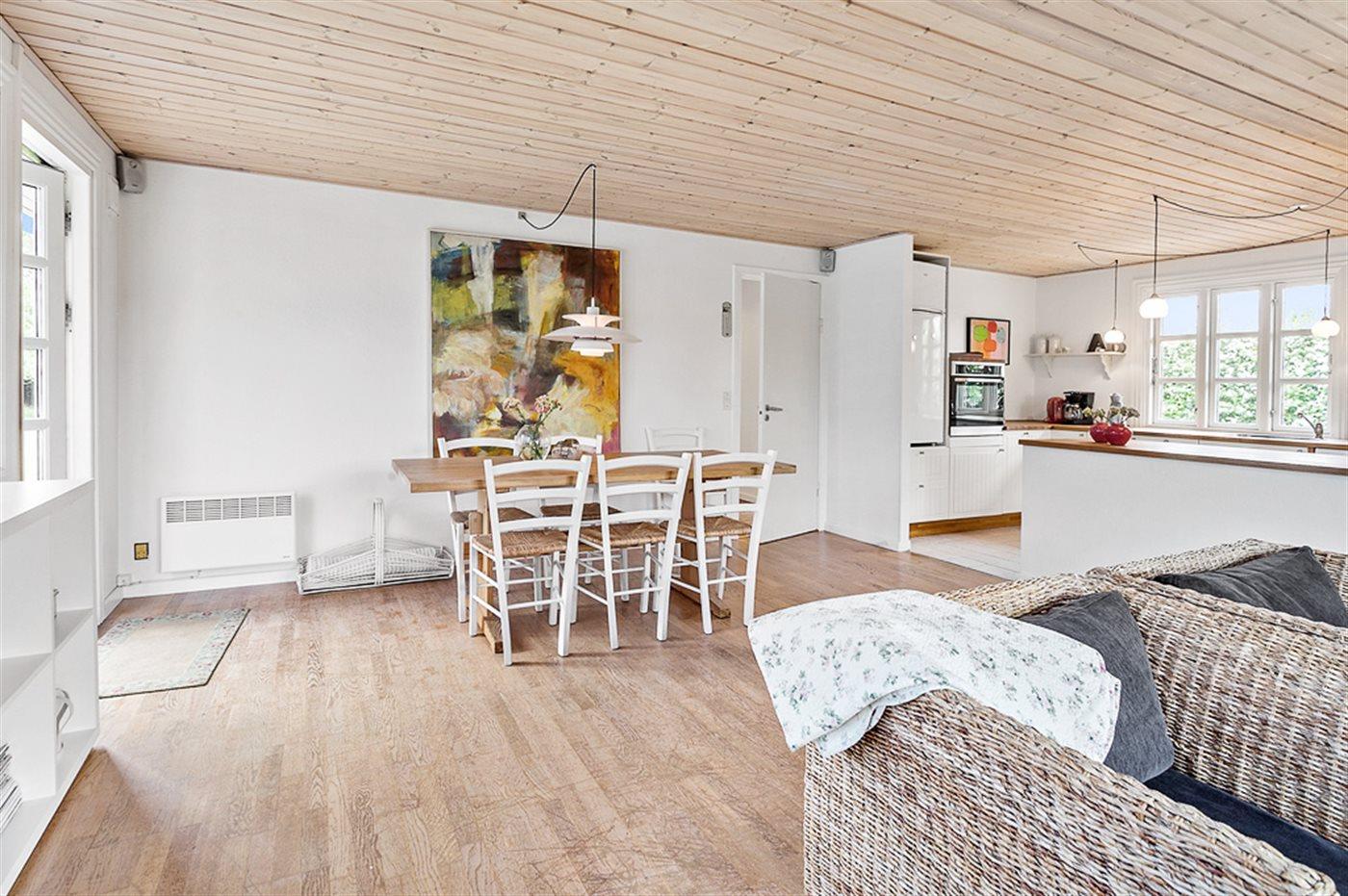 Dette dejlige sommerhus fremtræder lyst og indbydende og har en god atmosfære. Huset ligger på en lukket vej kun 200 m fra stranden. Til huset hører såvel åben som overdækket terrasse med havemøbler.