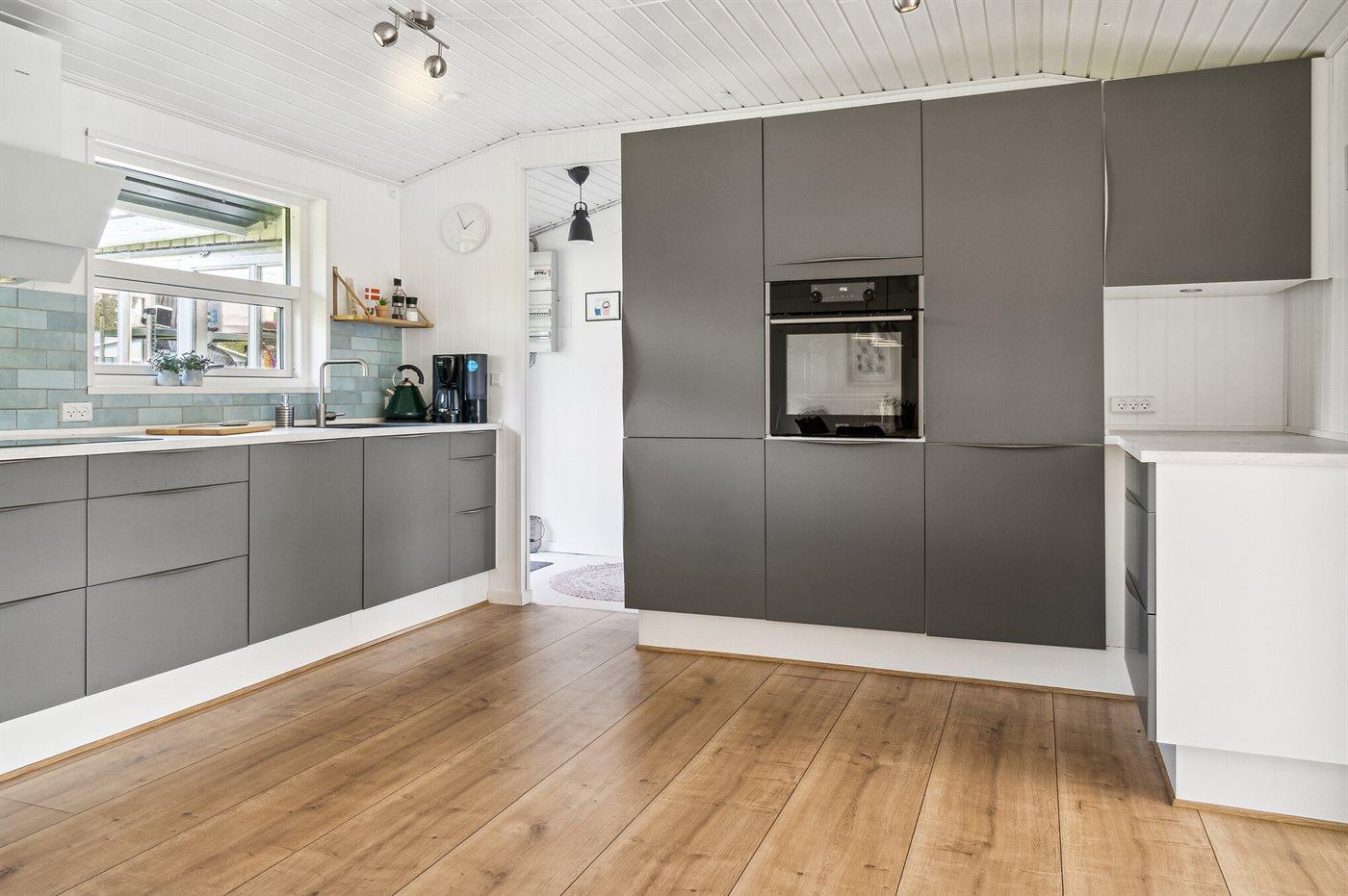 Køkkenet er udstyret med 1 køleskab. Der er 4 induktionskogeplader, varmluftovn, mikrobølgeovn samt opvaskemaskine.