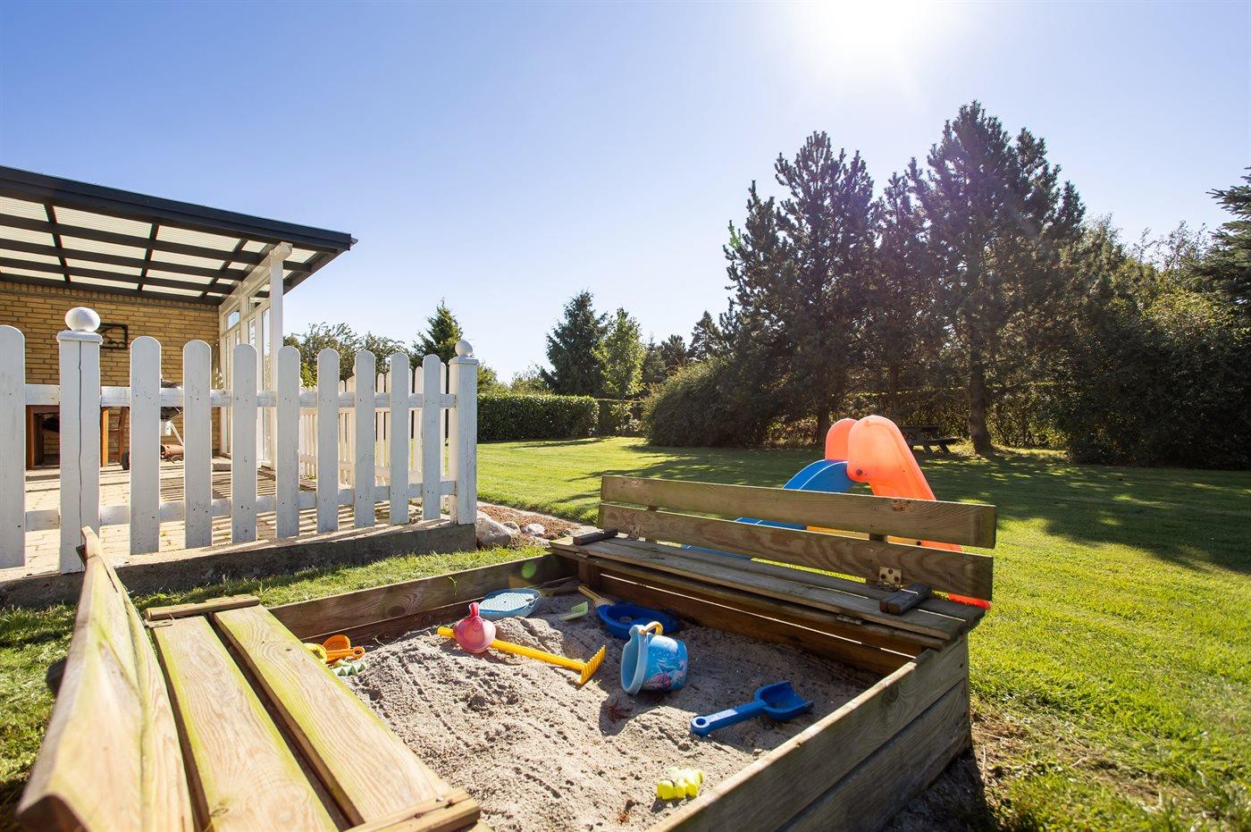 Ferieboligen er beliggende på en 884 m² stor havegrund. Der er 400 m til havet. Nærmeste forretning er beliggende i en afstand af 2000 m. Til ferieboligen hører åbent terrasseareal. Desuden er der overdækket terrasse. Gynge. Sandkasse. Der ligger en legeplads i en afstand af 2000 m. Grill til rådighed. Parkering ved ferieboligen.