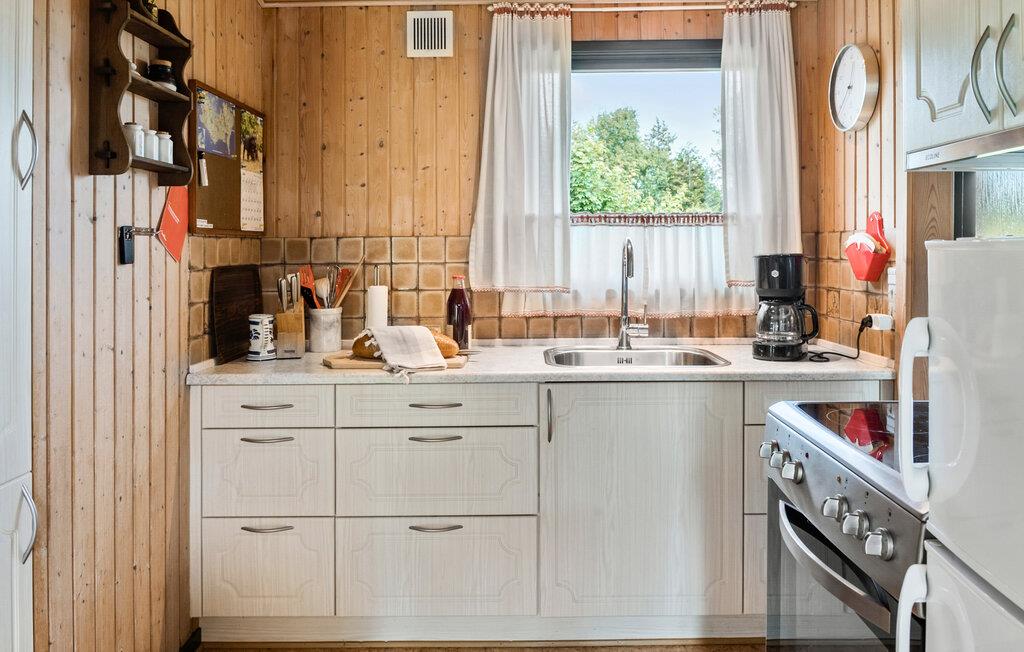 Der er kort afstand til færgehavnen i Rødby, så I er hurtigt fremme ved dette skønne hus og kan tage fat på jeres feriedage på Lolland. Huset har en skøn, varm stemning med trævægge og dejligt brede vinduespartier ud mod haven. Sæt hverdagen på pause og nyd den fredfyldte stemning, der hersker her. I det praktiske spisekøkken kan I hygge jer med madlavningen og nyde måltiderne ved spisebordet eller udenfor på terrassen. Rundt om huset er der en stor grund med masser af plads til leg, og børnene kan have det sjovt med at forme figurer i sandkassen.