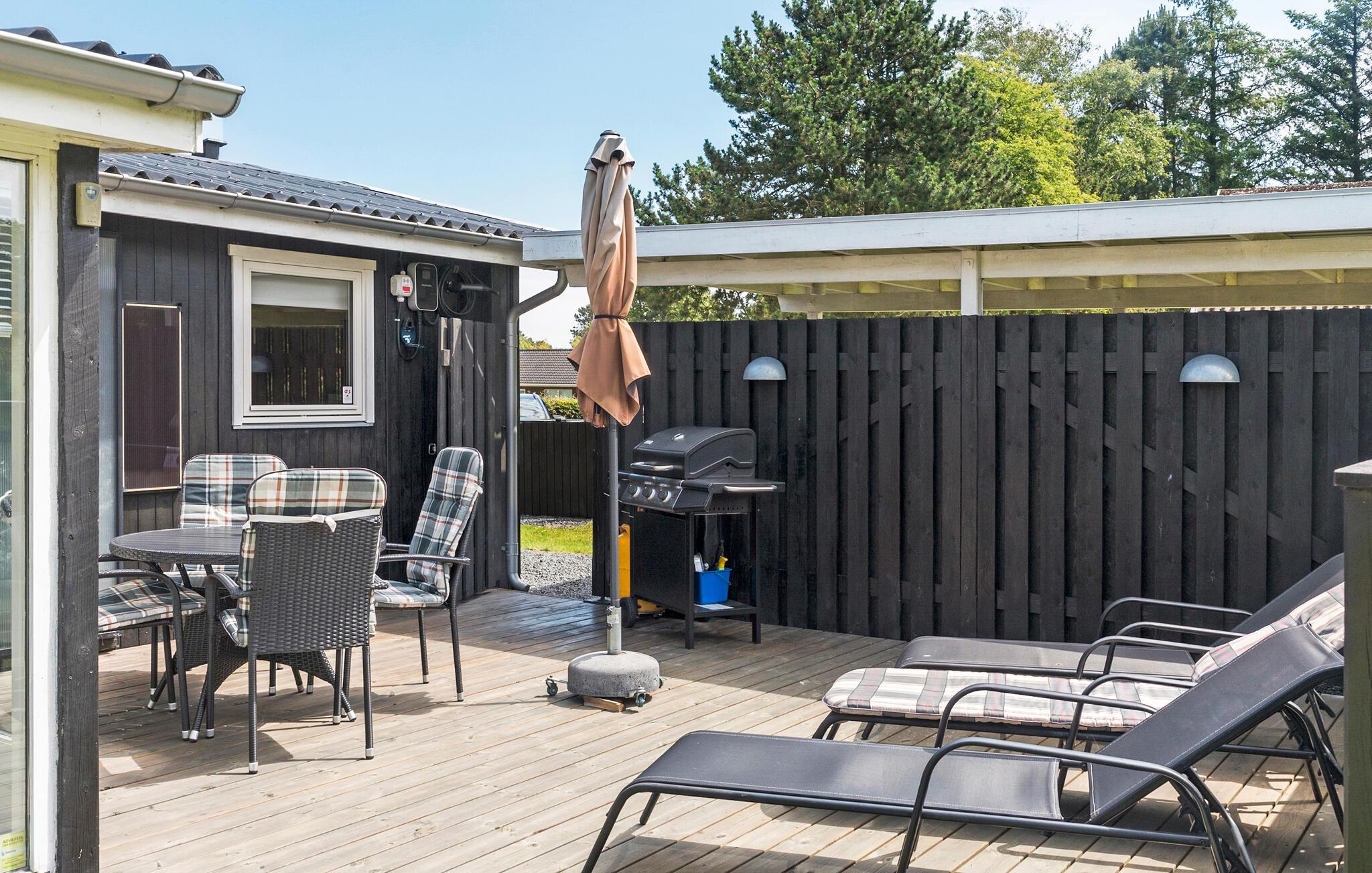 Hyggeligt feriehus med trævægge tæt på stranden og gode udendørsfaciliteter i Hummingen, Lolland.