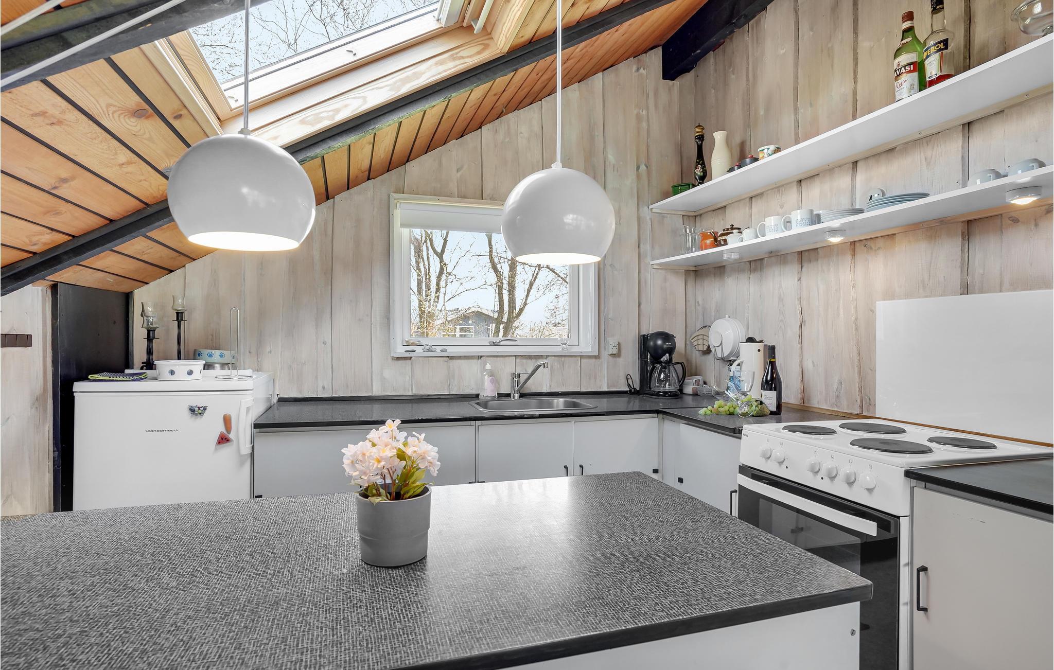 Dette sommerhus i Hummingen er ikke kun et tilflugtssted, men også et ideelt udgangspunkt for at udforske området og opleve skønheden på Lolland. Med sine store gulv-til-loft-vinduer overbader dagslyset værelserne og giver jer en malerisk udsigt over landskabet. Nyd den venlige atmosfære, som huset emmer af og føl jer straks hjemme her. Den hyggelige stue med brændeovn lægger op til at slappe af efter en aktiv dag. Læn jer tilbage og lyt til bålets knitren, mens naturen falder til ro udenfor. Det åbne rumskoncept forbinder problemfrit stue og køkken, hvilket gør det nemt at lave mad sammen og samles.