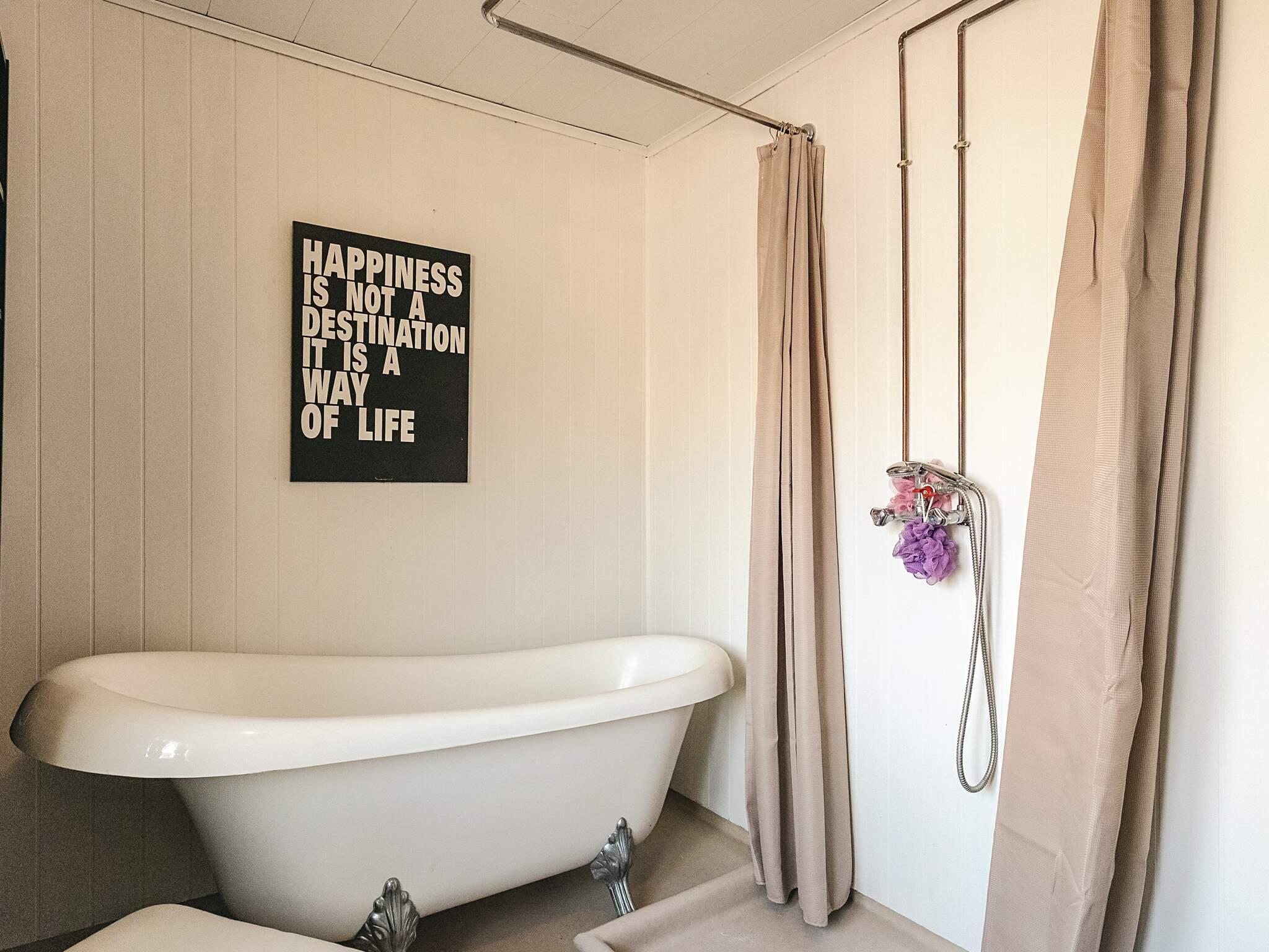 Feriehuset har åbent køkken i forbindelse med stuen, to hyggelige soveværelser med dobbeltsenge samt stort badeværelse med bruser og badekar. Der er også et separat anneks med vindue og to sovepladser.