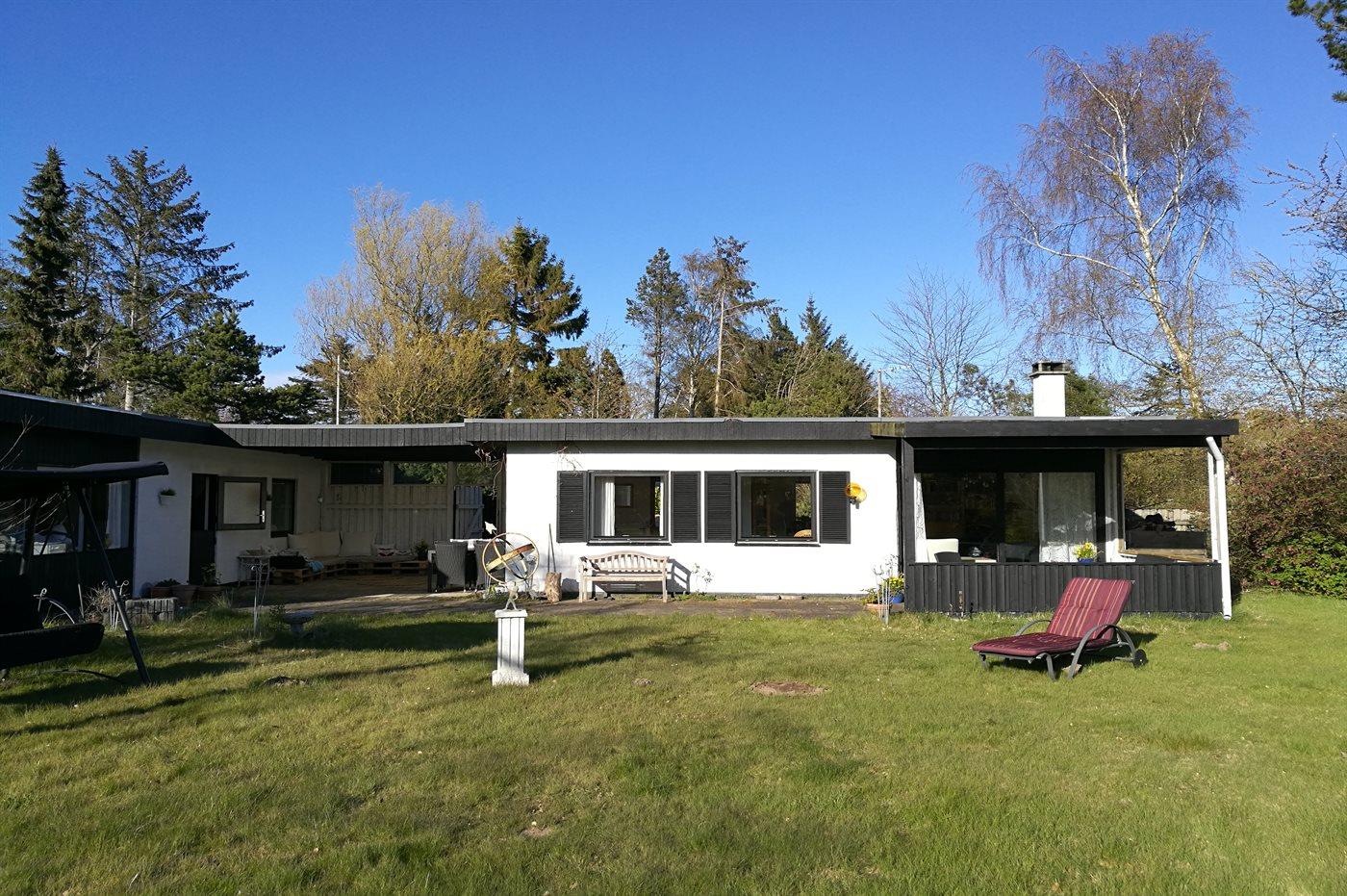 Hyggeligt sommerhus nær Hald strand med stor terrasse og anneks til 8 personer i naturskønne omgivelser.