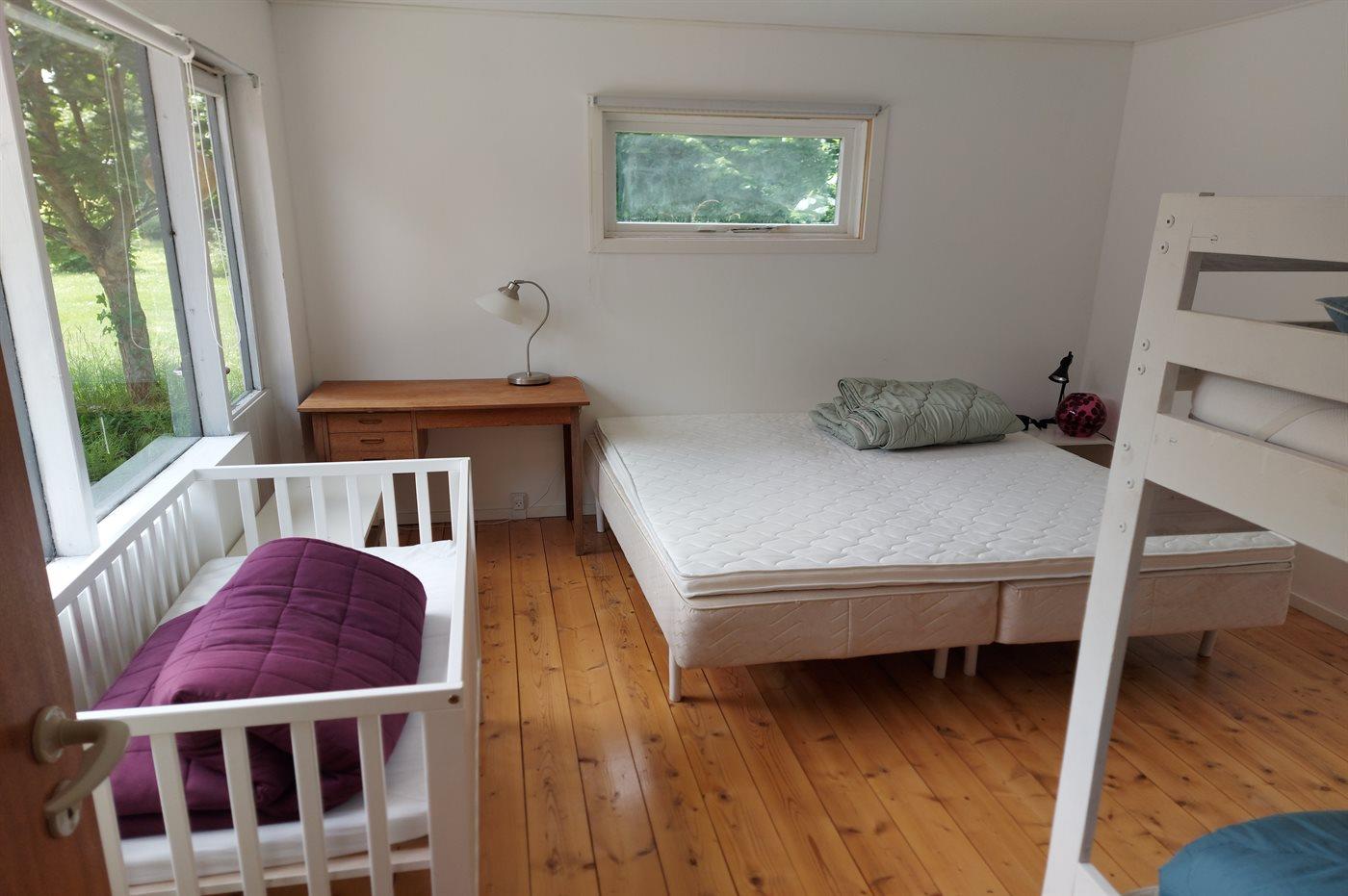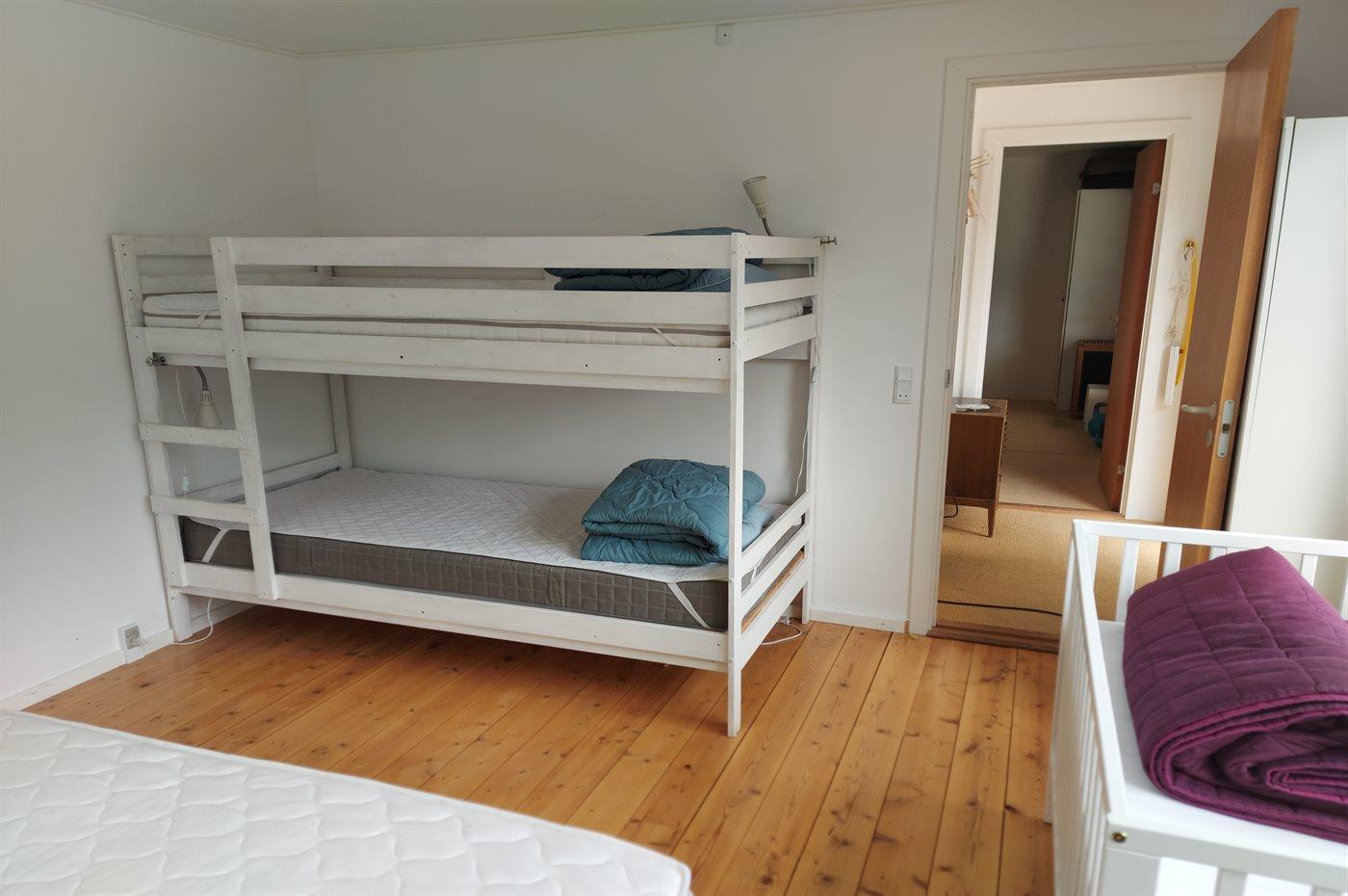 Der er i alt 3 soveværelser. Sovepladserne fordeler sig på: 4 sovepladser i dobbeltsenge. 2 sovepladser i enkeltsenge. 2 sovepladser i køjeseng.