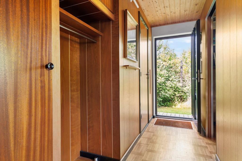 Dette autentiske sommerhus emmer af nostalgi og retro, hvor den originale atmosfære er bevaret. Indretningen tager dig tilbage i tiden, men med moderne komfort, så ferien bliver både hyggelig og afslappende. I den indbydende opholdsstue kan du synke ned i de komfortable møbler og nyde udsigten til haven. Herfra er der direkte udgang til terrassen, der forlænger opholdsrummet ud i det fri.