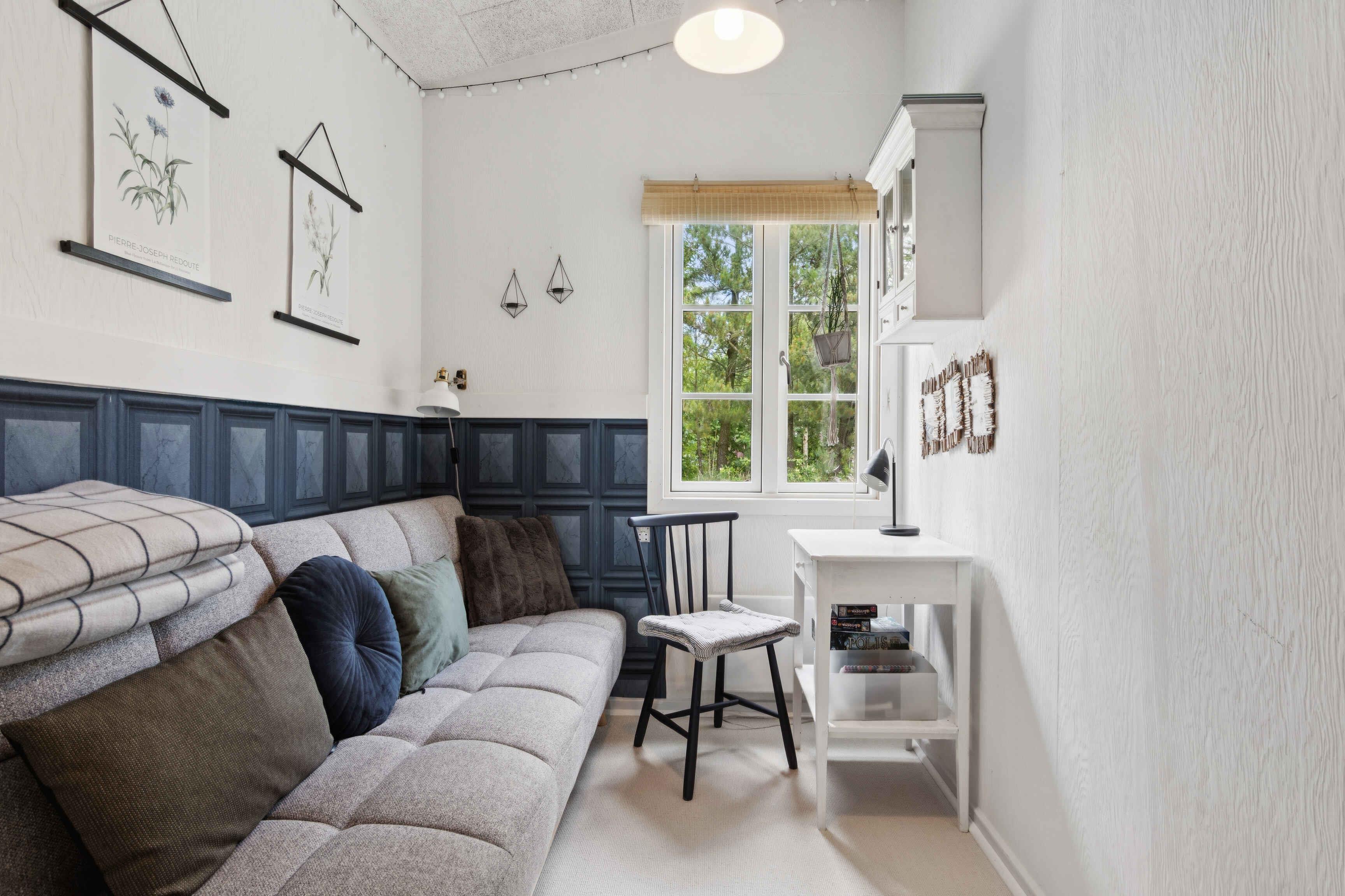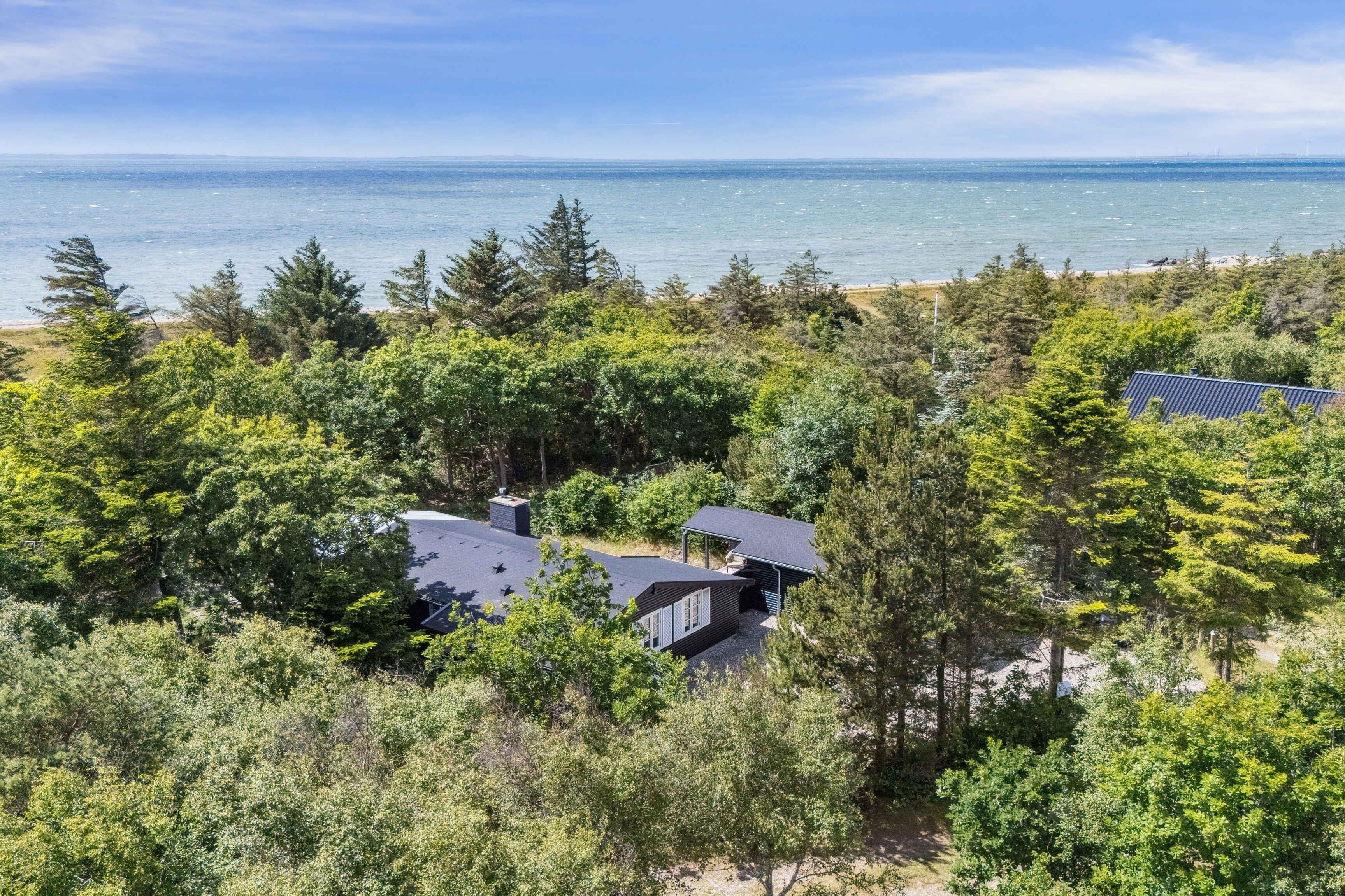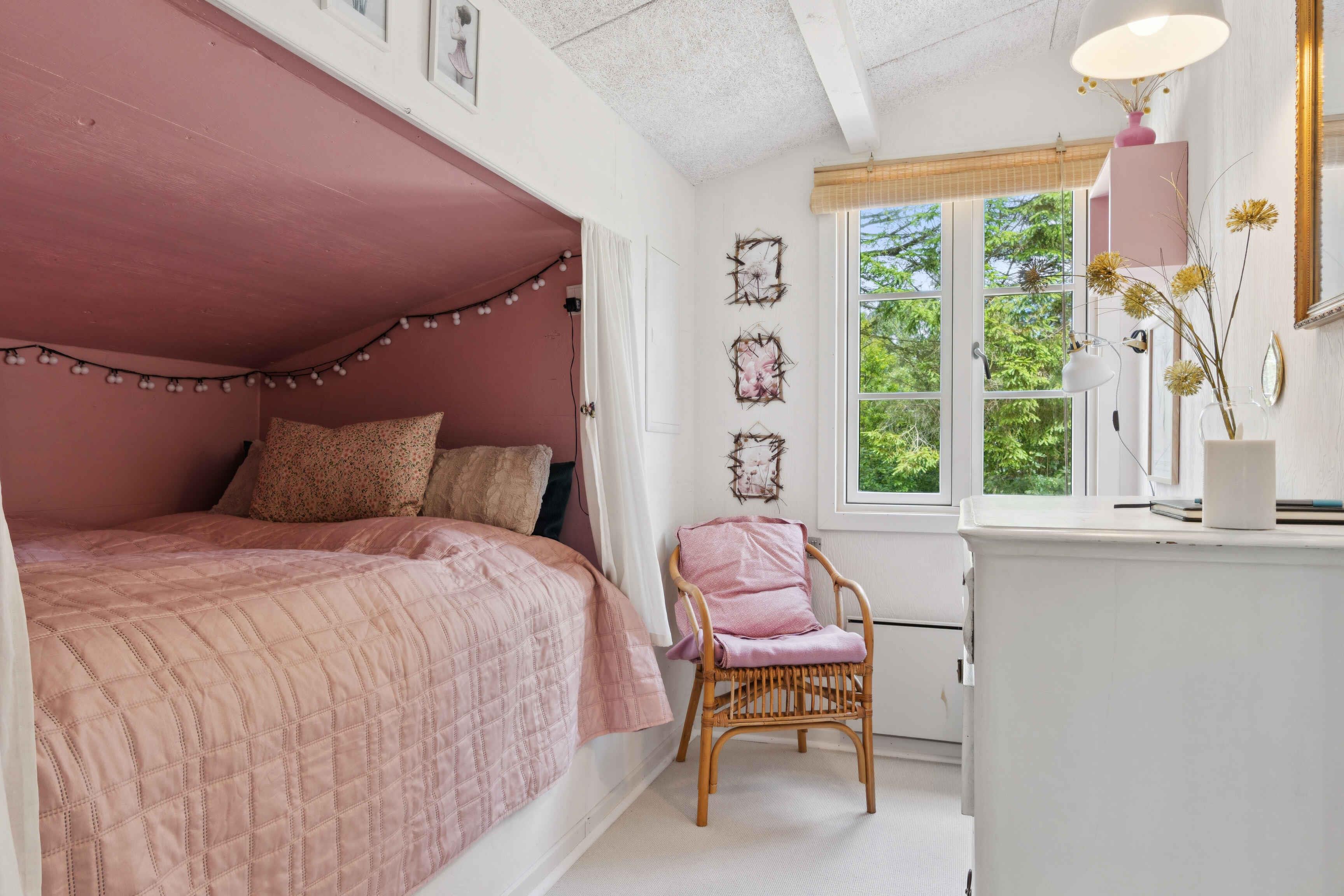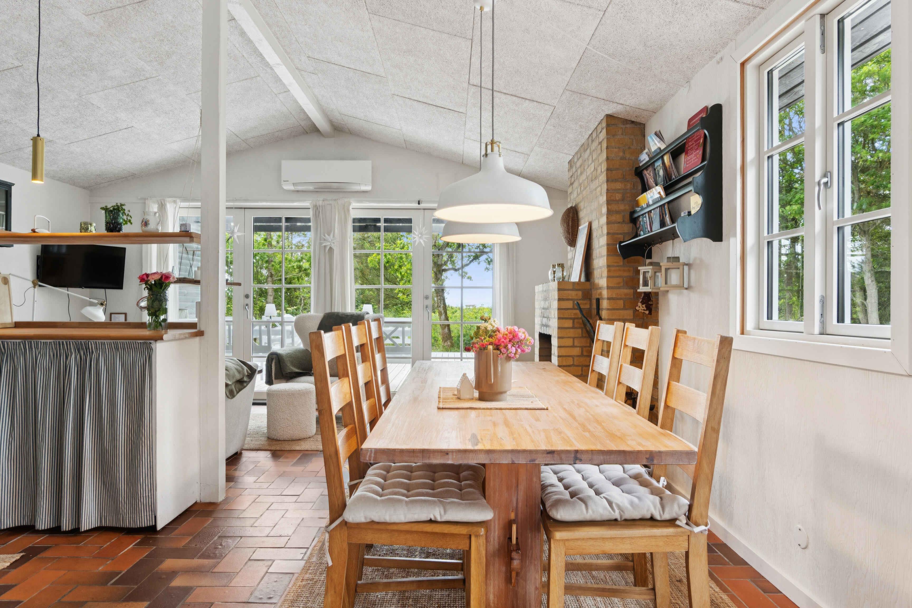 På en unik, ugeneret sydvest-vendt naturgrund i første række til fjorden ligger dette sommerhus - med fantastisk udsigt til vandet og kun 100 meter til stranden. En lille privat sti fører direkte ned til den børnevenlige fjord, hvor lavt klart vand og blødt sand indbyder til leg, badning, afslappede dage i solen og de smukkeste solnedgange! Huset rummer 75 veldisponerede kvadratmeter med fire separate soveværelser og i alt seks sovepladser: - et anneks med dobbeltseng og fjordudsigt - et soveværelse med dobbeltseng - et værelse med alkove til en person - et værelse med sovesofa til en person Herudover et badeværelse og en garage, hvor man kan finde parasol, hynder m.m. Køkken og stuen er husets naturlige og hyggeligste samlingspunkt. Den åbne pejs og varmepumpe sikrer dejlig varme hele året rundt samt køl på varme sommerdage. Og udsigten over fjorden fungerer som et kæmpe levende maleri. Der er naturligvis også wifi, så opholdet kan kombineres med streaming eller arbejde. På den store træterrasse, som ligger i læ blandt træerne, er der god plads til at nyde solen og de rolige omgivelser. Den udendørs pejs gør det muligt at forlænge aftenerne og samle sig omkring ilden - i garagen finder man snobrødsspyd. Her er god plads til at slappe af – uden at blive forstyrret. I gå- eller løbeafstand finder man smukke vandreruter, insketbingo for de små og selvfølgelig mulighed for at bade (hele året rundt) og fiske. Eller bare nyde udsigten over det smukke fjordlandskab. På ti minutters kørsel er man på Statens Museum for Kunst i Doverodde, hvor man kan opleve kunst i verdensklasse og nyde en god frokost. Er man til levende musik er både Høloftet og Agger Darling gode bud på hyggelige lokale spillesteder. I kort køreafstand er der fantastiske muligheder for vandaktiviteter i alle mulige former som fx windsurfing, bølgesurfing, bodyboard, wing surfing, SUP og derudover ligger Sydthy Kurbad og svømmehal kun ti minutters kørsel fra sommerhuset. I Struer findes også Kurbad Limfjorden og wakeboardbane. Nationalpark Thy ligger tæt på med klitplantager, vidtstrakte hedelandskaber og masser af storslået natur med afmærkede stier til både vandre- og cykelture. Der er også mulighed for udflugter til små charmerende havnebyer. Endelig er Hurup den nærmeste handelsby med flere butikker, supermarkeder, et lille godt bageri og café samt en god slagter, som også sælger fisk, italienske og selvfølgelig Thy specialiteter. Små vejboder byder også på lækre lokale Thy råvarer. Kort sagt - sommerhuset til dem som sætter pris på det simple, afslappende og gode liv, hvor naturen, vand og roen er værdsat.