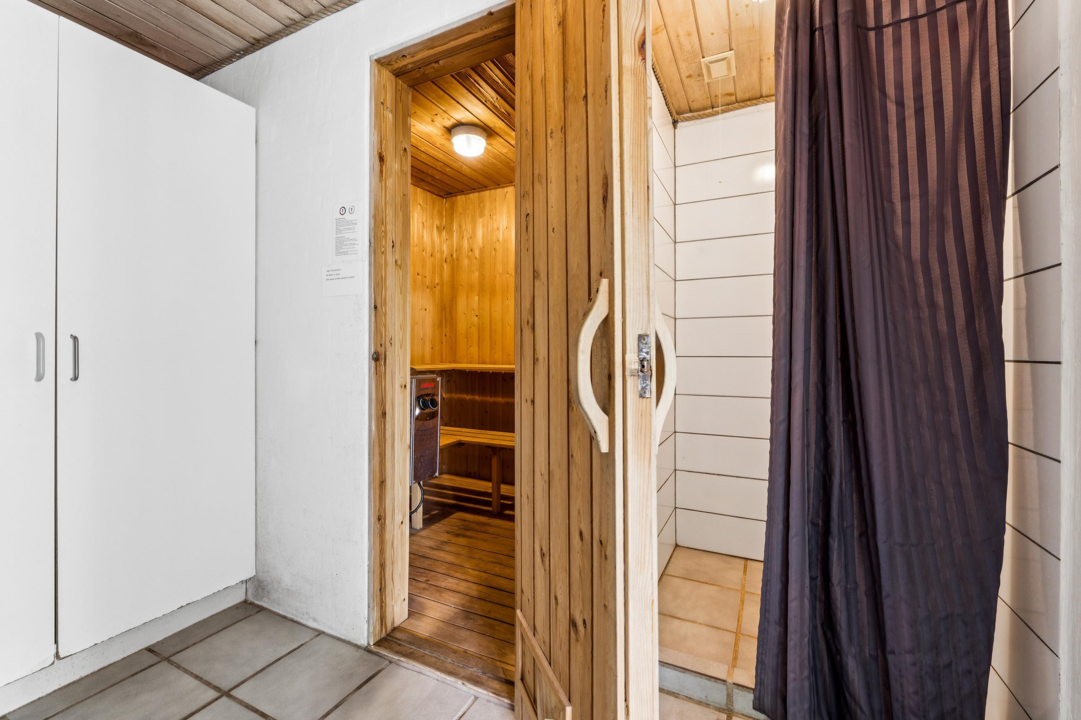 Køkkenet har et køleskab, fire keramiske kogeplader, en ovn, mikrobølgeovn og opvaskemaskine. Huset rummer desuden to badeværelser med bruseniche og toiletter, hvoraf begge badeværelser har gulvvarme. Saunaen er det perfekte sted at slappe af efter en dag ude.