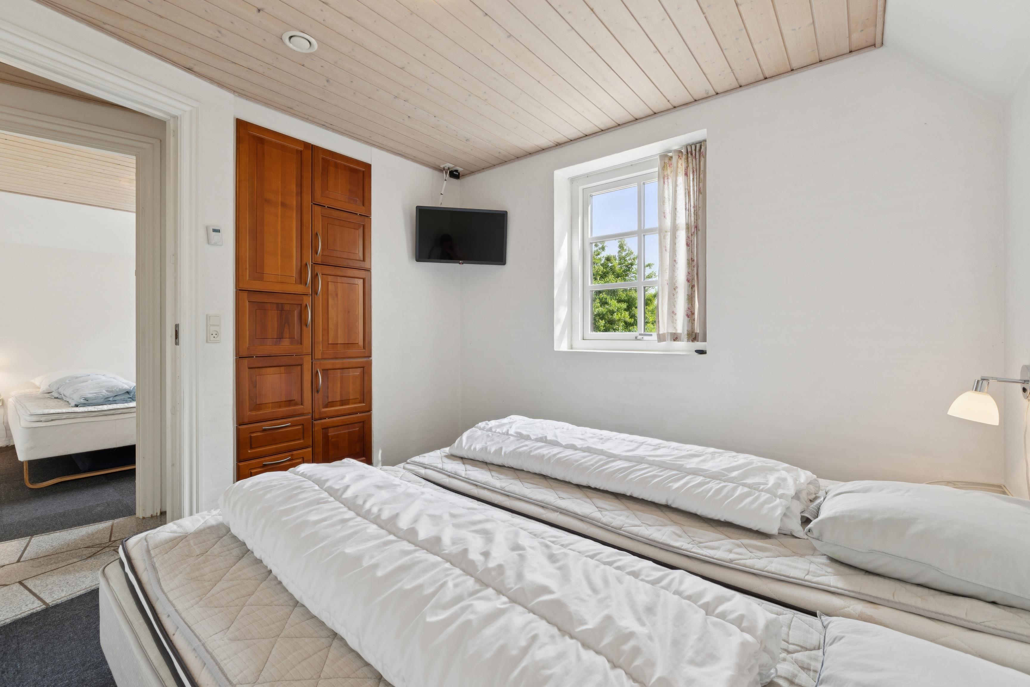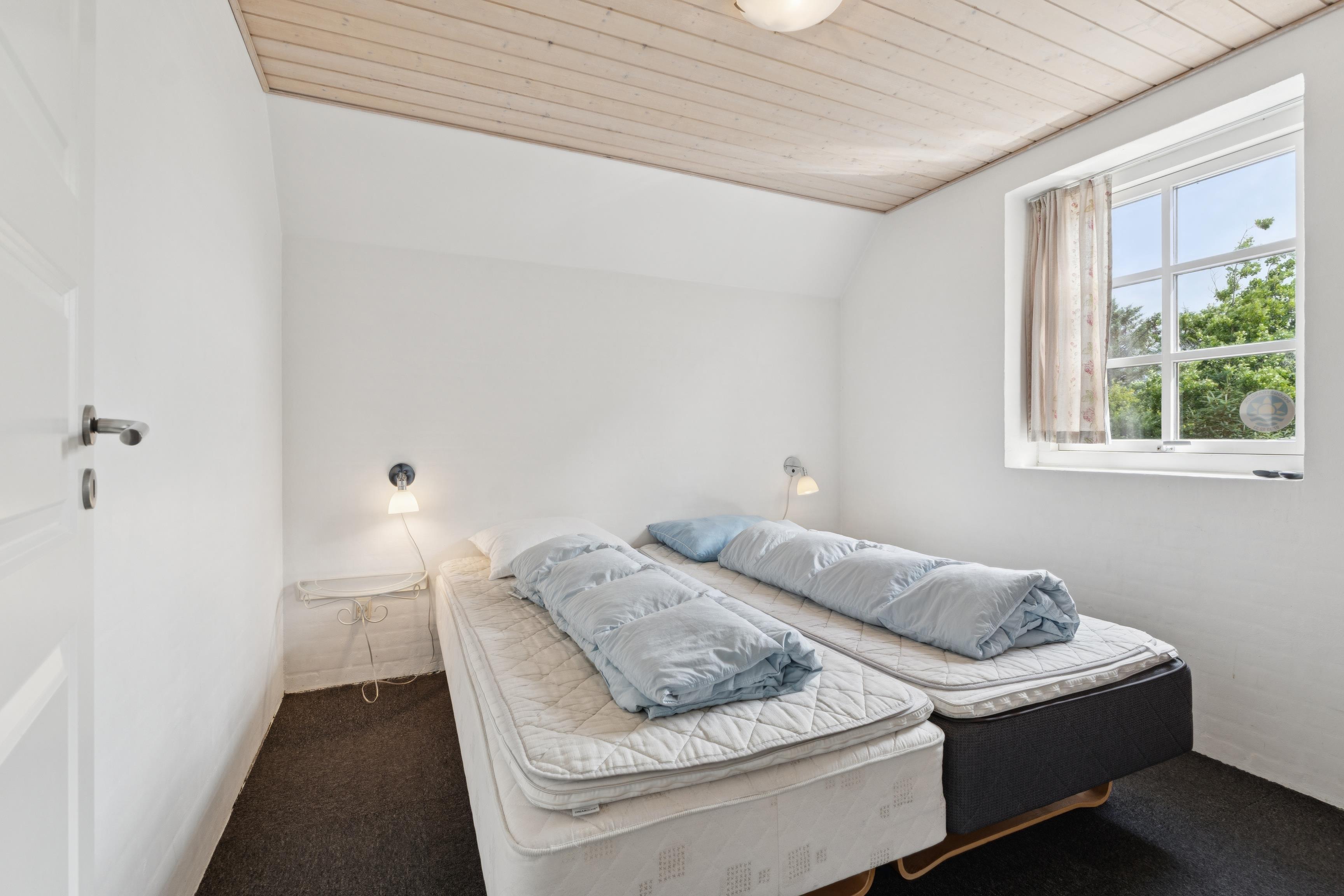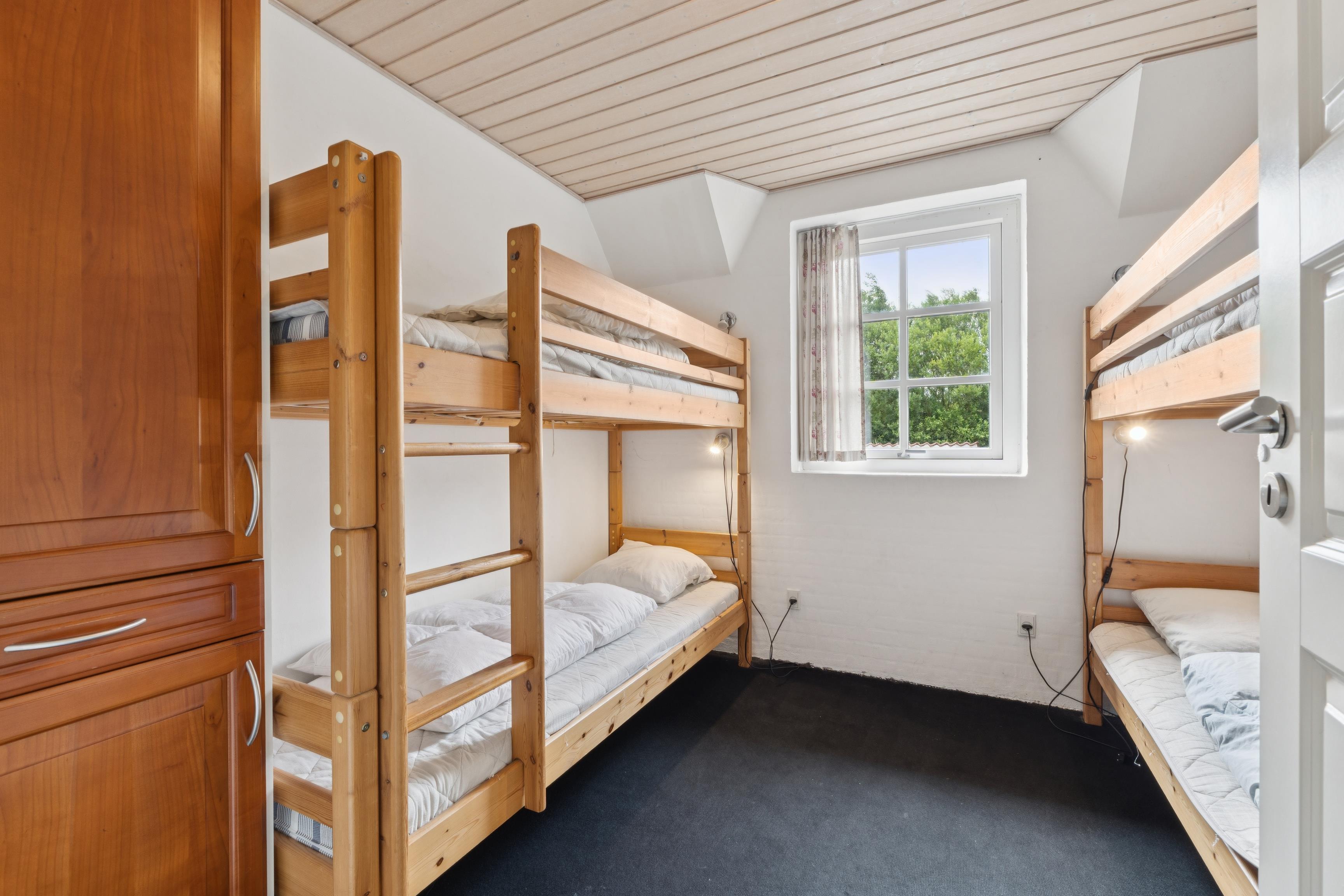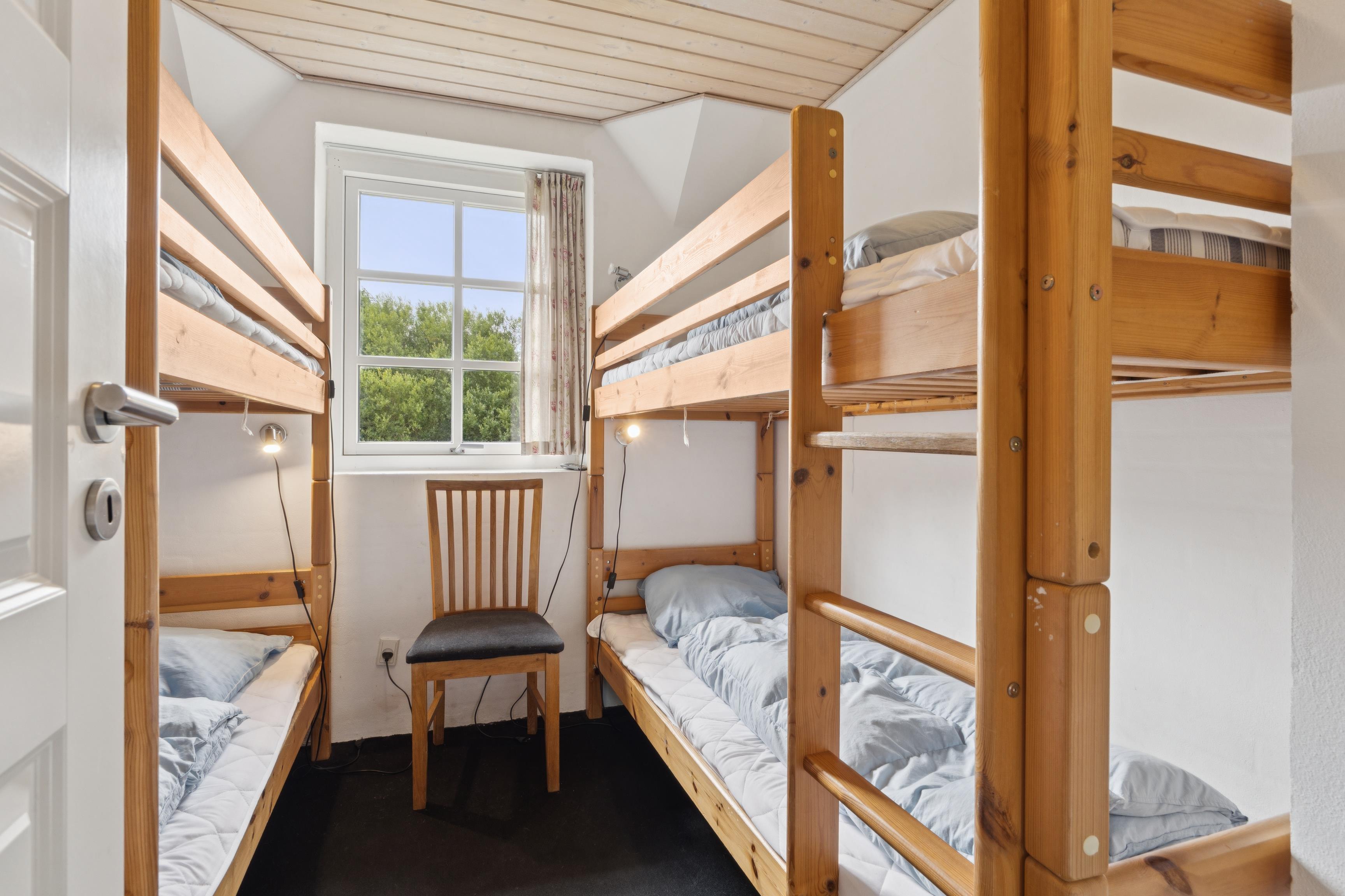 Sommerhuset har plads til 18 personer og rummer hele 7 soveværelser med både dobbeltsenge og køjesenge.