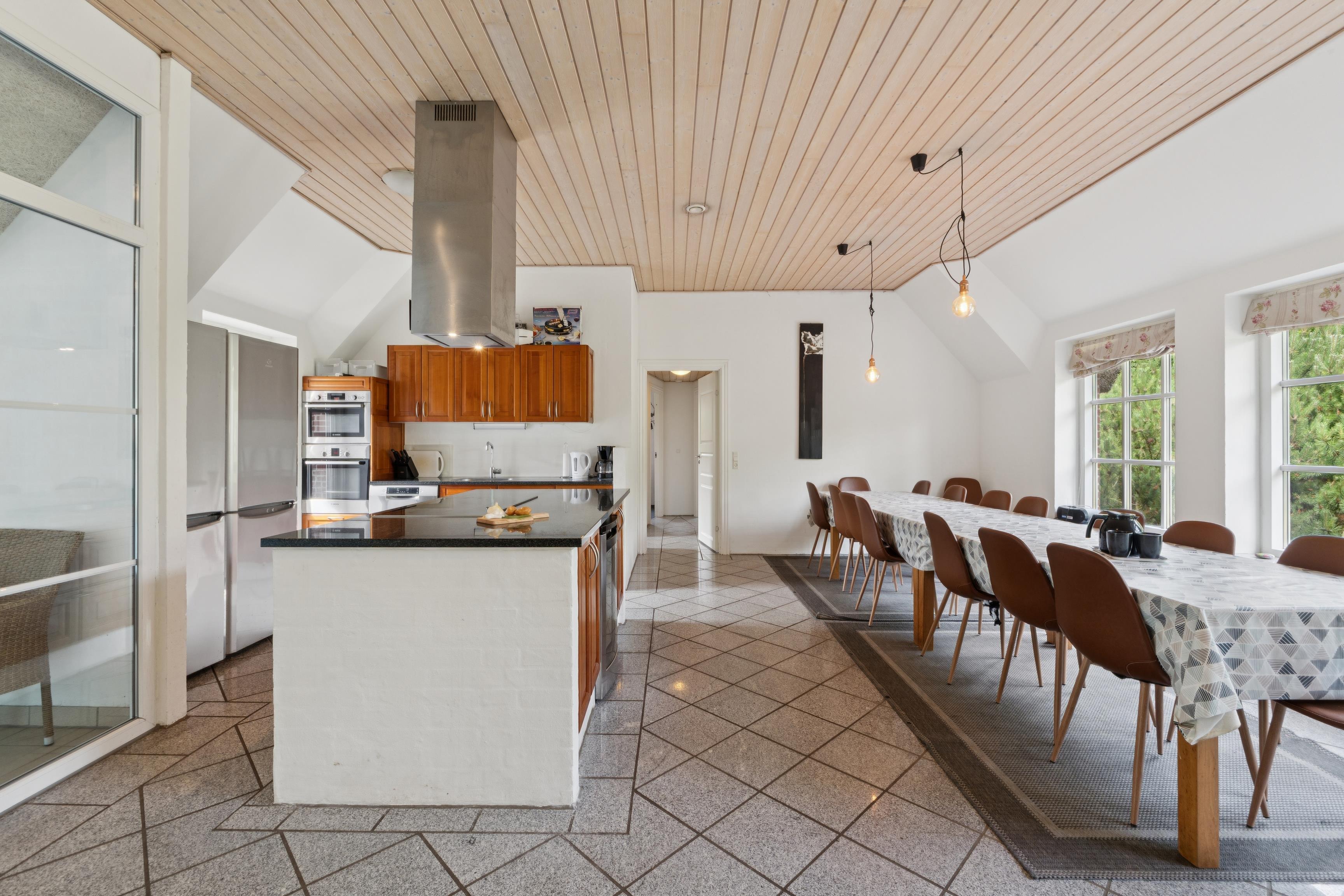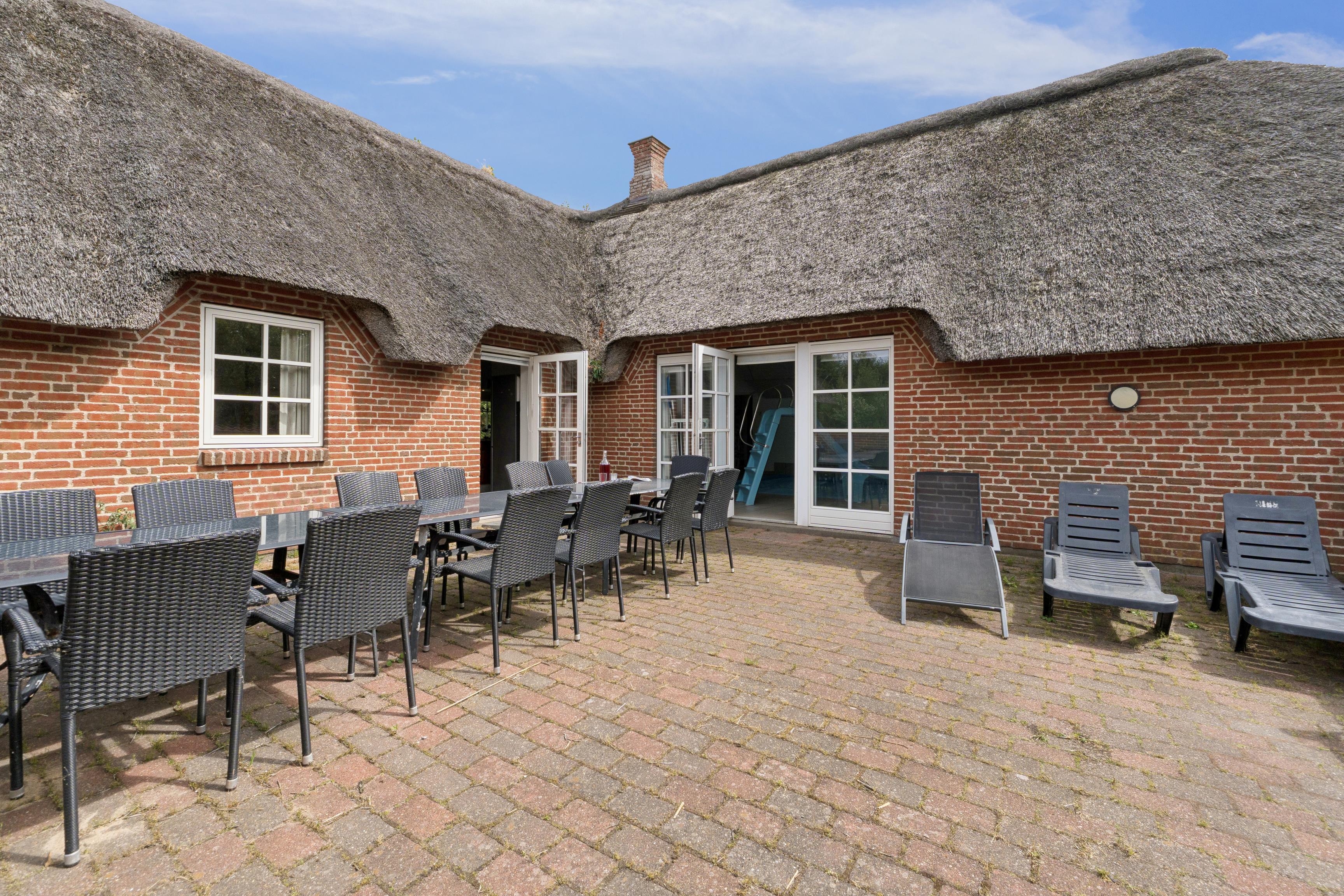 Leder du efter et stort og velindrettet sommerhus i rolige omgivelser? Dette luksus sommerhus til 18 personer ligger uforstyrret og tilbagetrukket på en stille sidevej – perfekt for dem, der ønsker en afslappende ferie tæt på naturen.