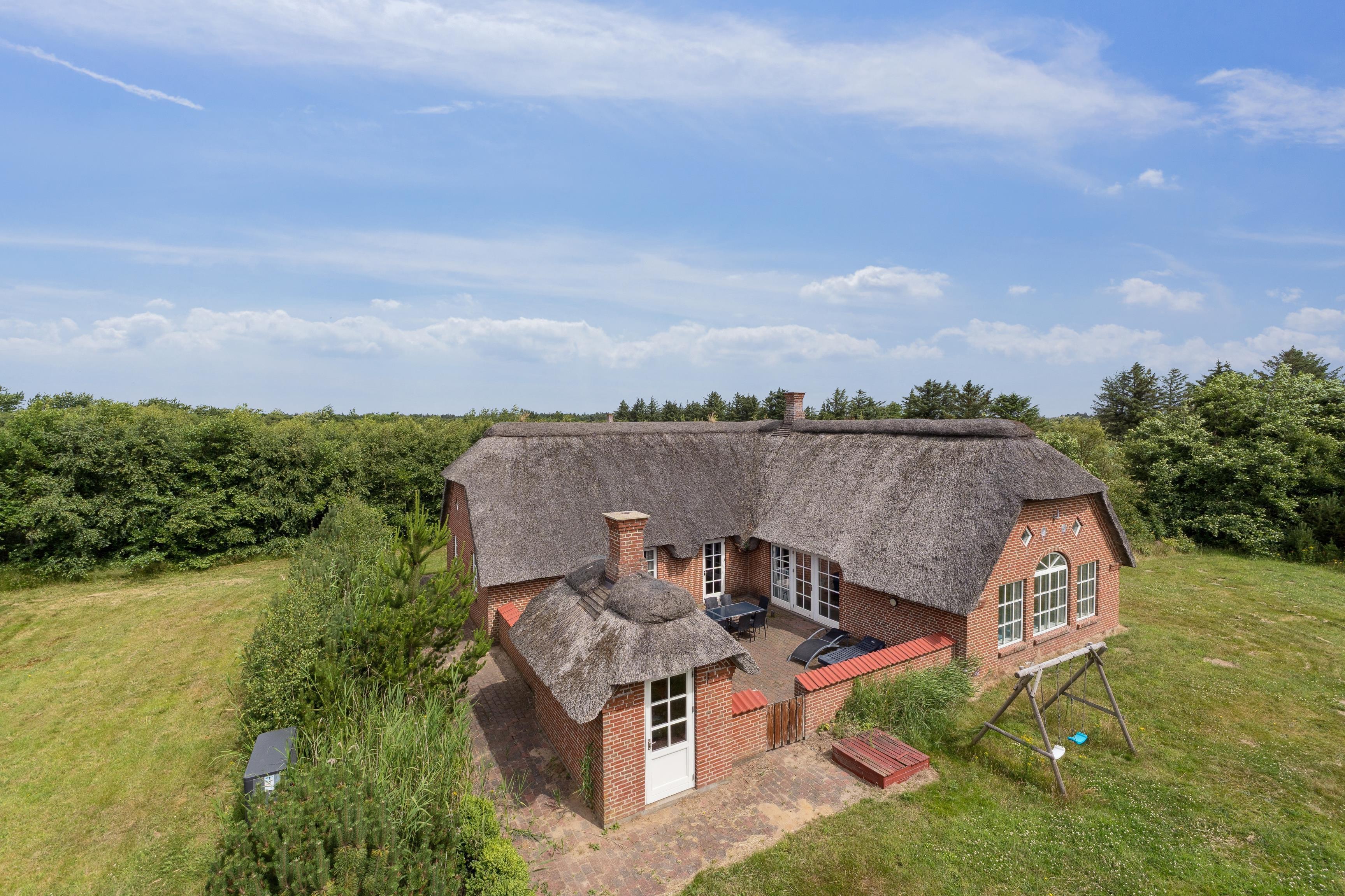 Huset ligger på en 3500 m² stor naturgrund kun 2500 meter fra stranden. Her er lukket terrasse på 30 m², gynge og masser af plads til leg og boldspil. Gratis parkering ved huset.