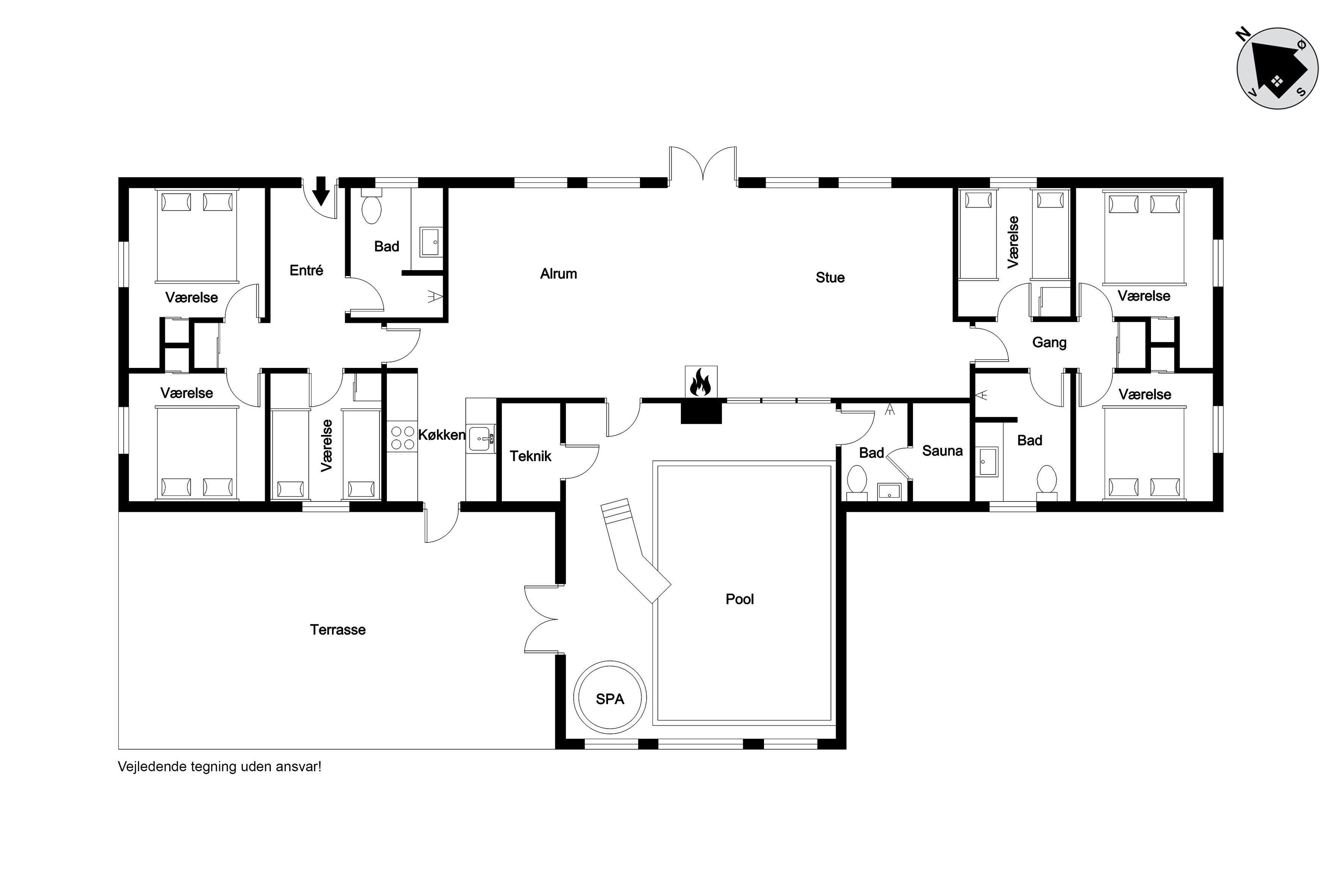 De tre moderne badeværelser er udstyret med brusere og gulvvarme, hvilket sikrer en behagelig oplevelse uanset vejret udenfor. For dem, der elsker at slappe af, tilbyder huset både indendørs og udendørs spa, hvor op til 6 personer kan nyde en beroligende stund. Den indendørs sauna er perfekt til at varme sig op efter en dag udendørs, og det store udendørs spa med plads til 4 personer giver mulighed for skønne stunder under stjernerne.