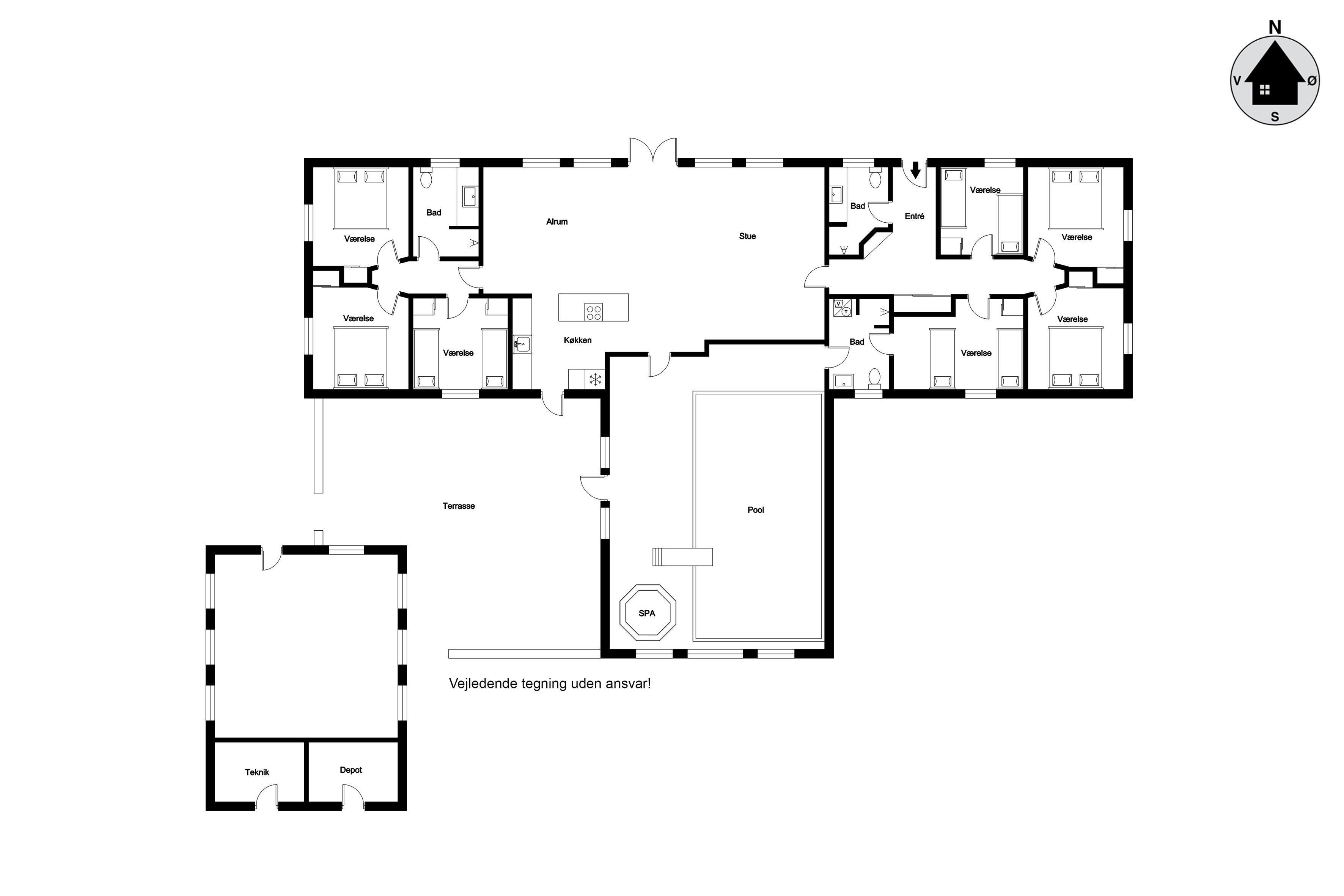 Dette dejlige poolhus på Øbyvej 25 i Husby, bygget i 2011, tilbyder en perfekt kombination af moderne komfort og naturskønne omgivelser. Beliggende kun 2000 meter fra Vesterhavet, er dette hus ideelt for familier og grupper, der ønsker at nyde en uforglemmelig ferie ved kysten. Med et husareal på 300 kvadratmeter og en stor grund på 3500 kvadratmeter, er der masser af plads til både leg og afslapning.