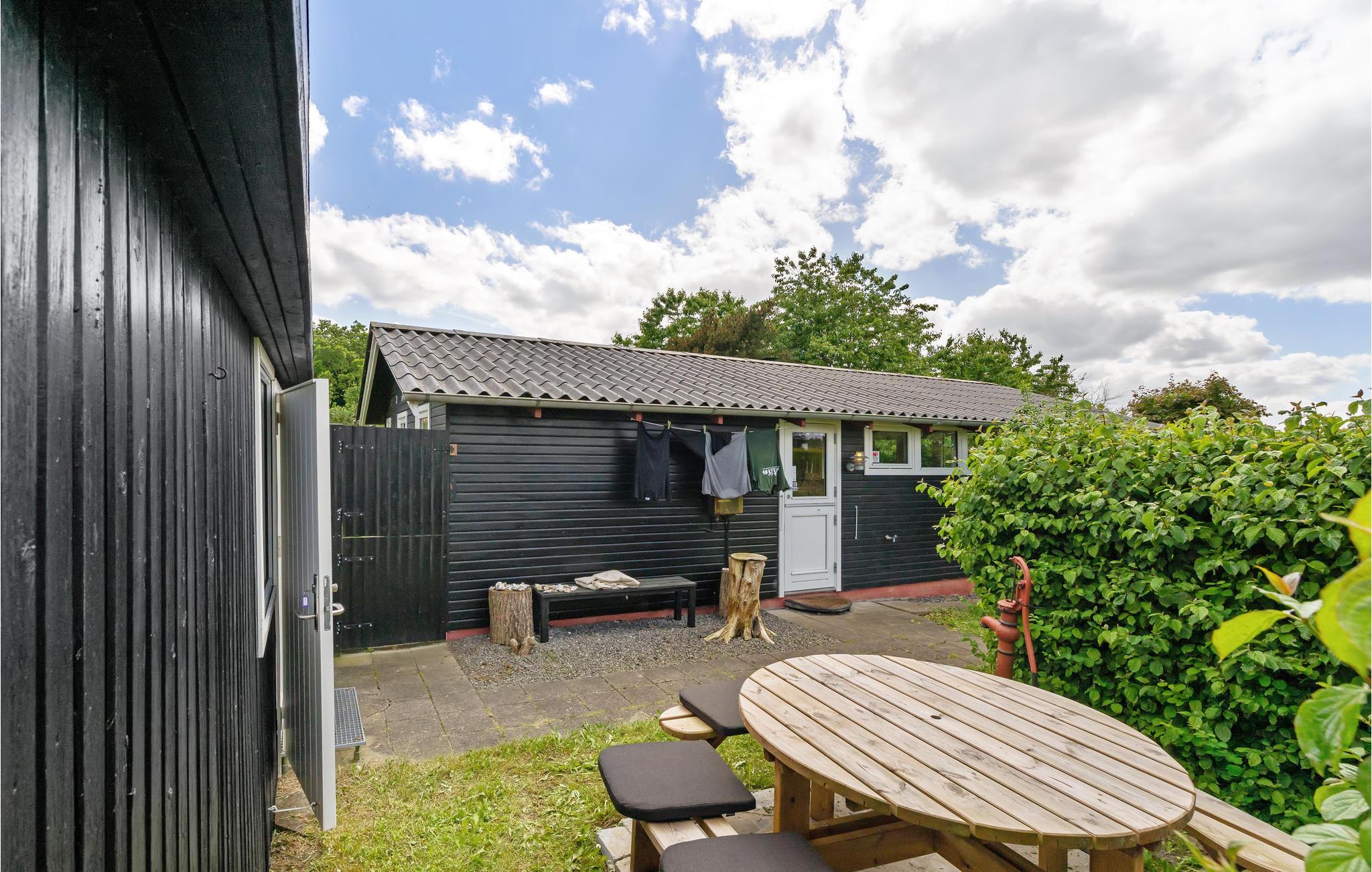 Læn jer tilbage på den delvist overdækkede terrasse. Senere kan I alle samles ved bålpladsen. Det er dejligt praktisk, at I også kan lade jeres bil ved huset.