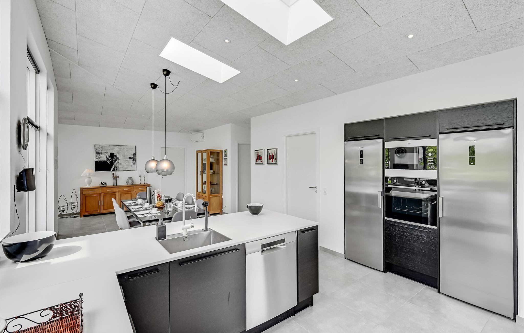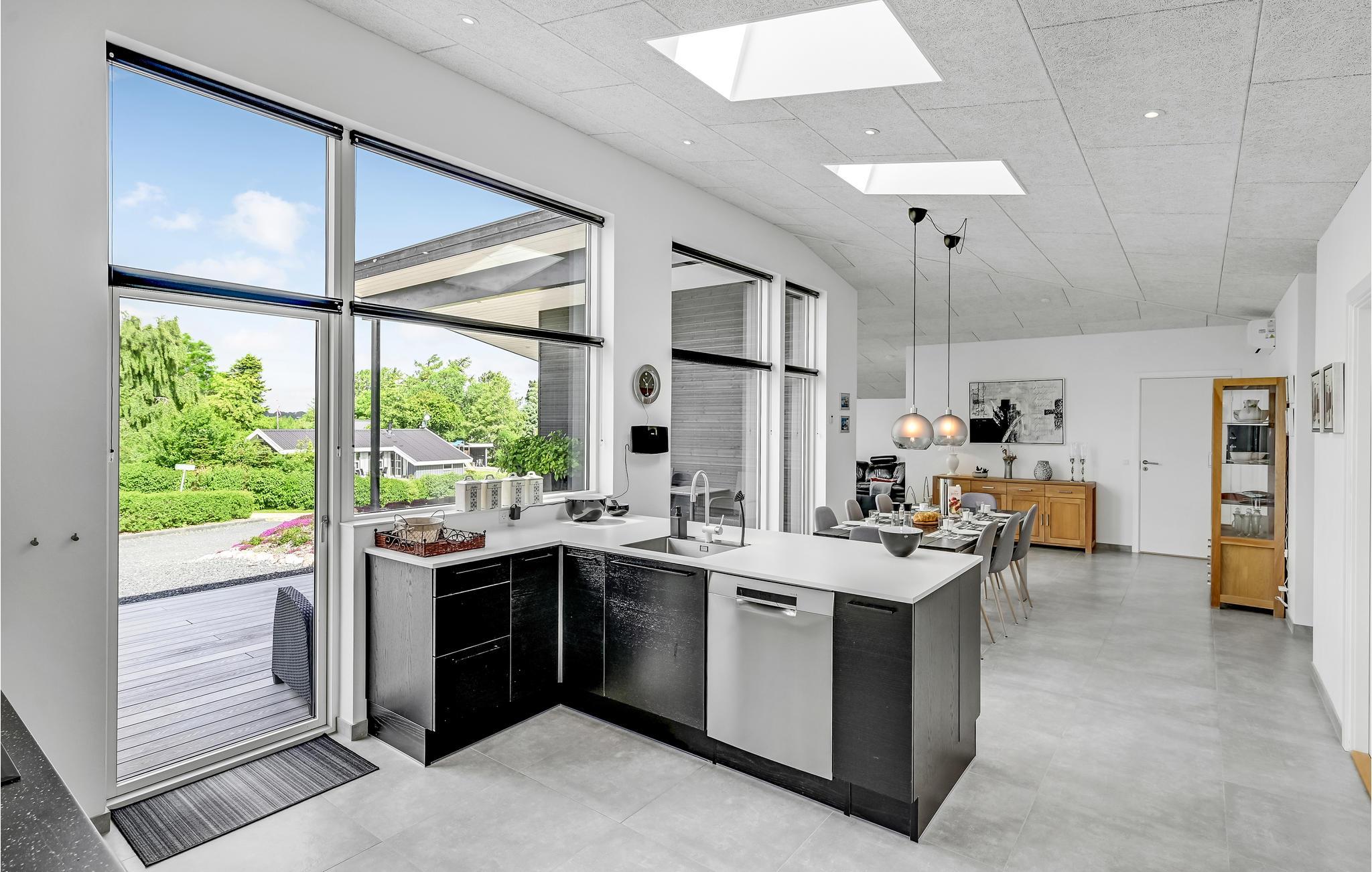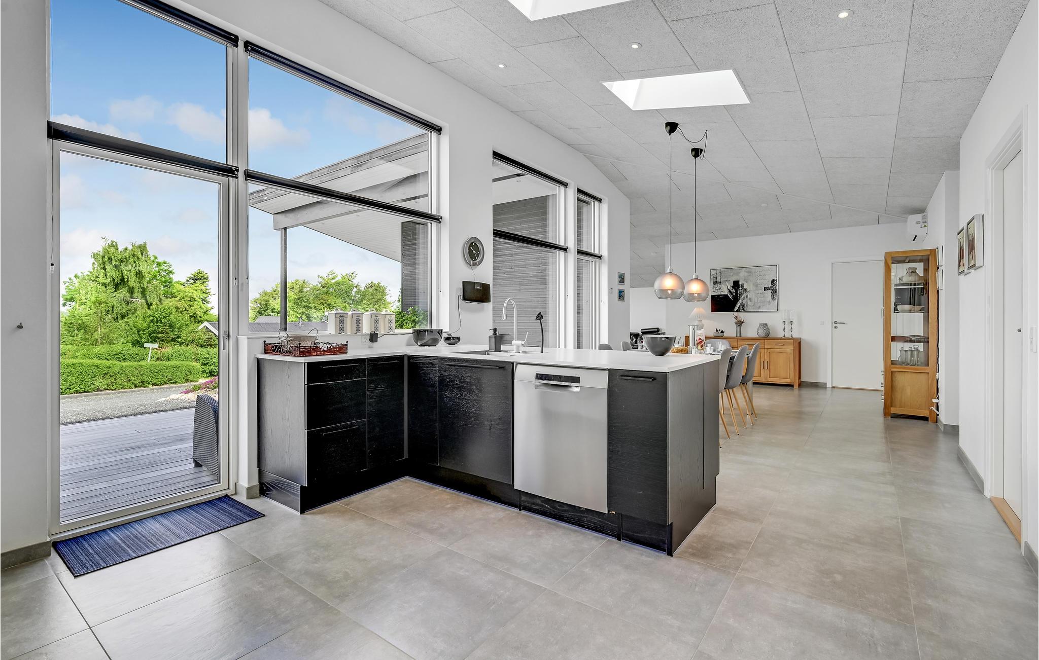 Den overdækkede træterrasse bliver en skøn ramme om jeres rolige stunder og en hyggelig grillmiddag. I vinterhalvåret kan I hygge jer indenfor i den lyse og hyggelige stue, mens aftensmaden trylles frem i det åbne køkken.