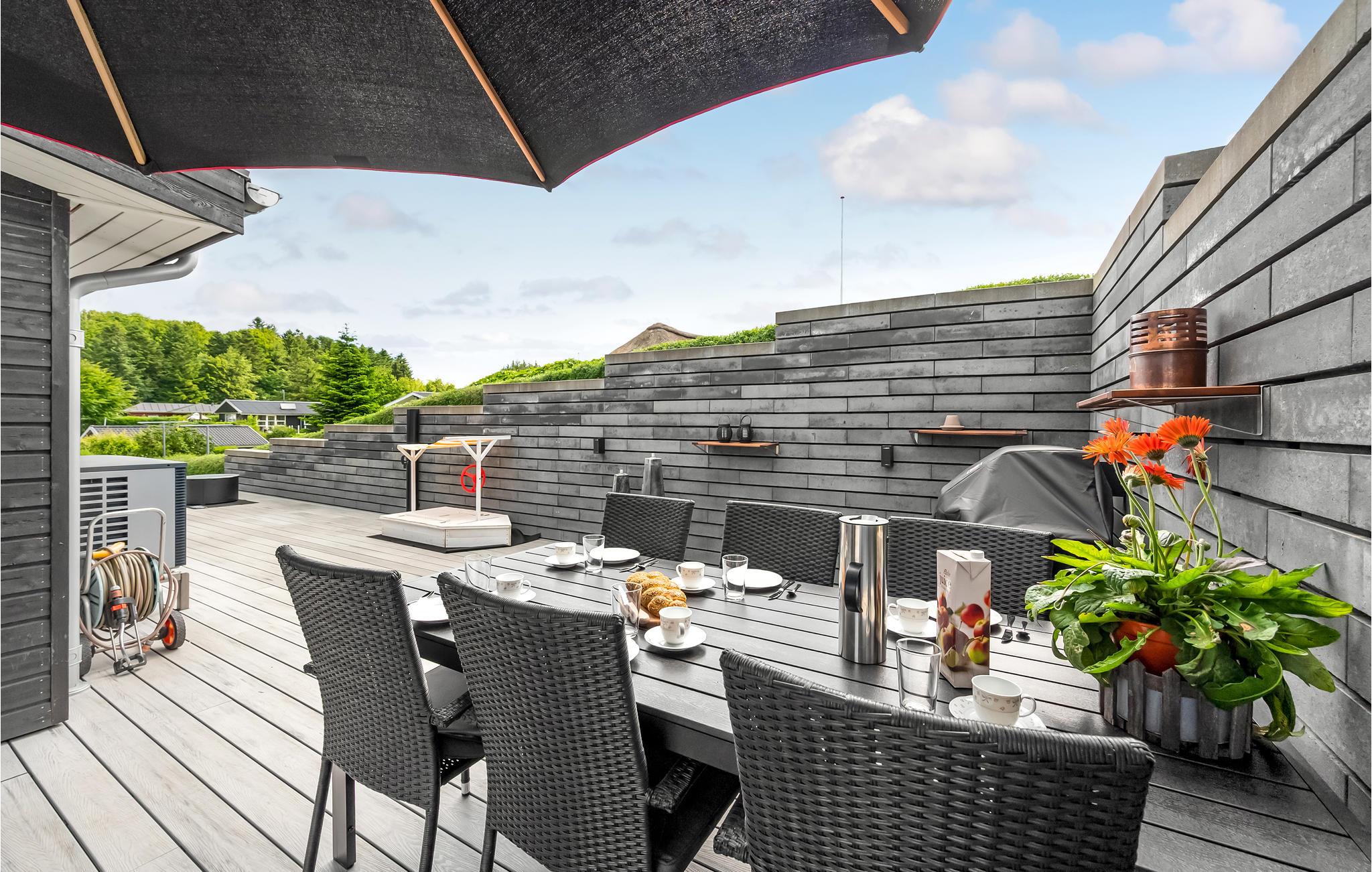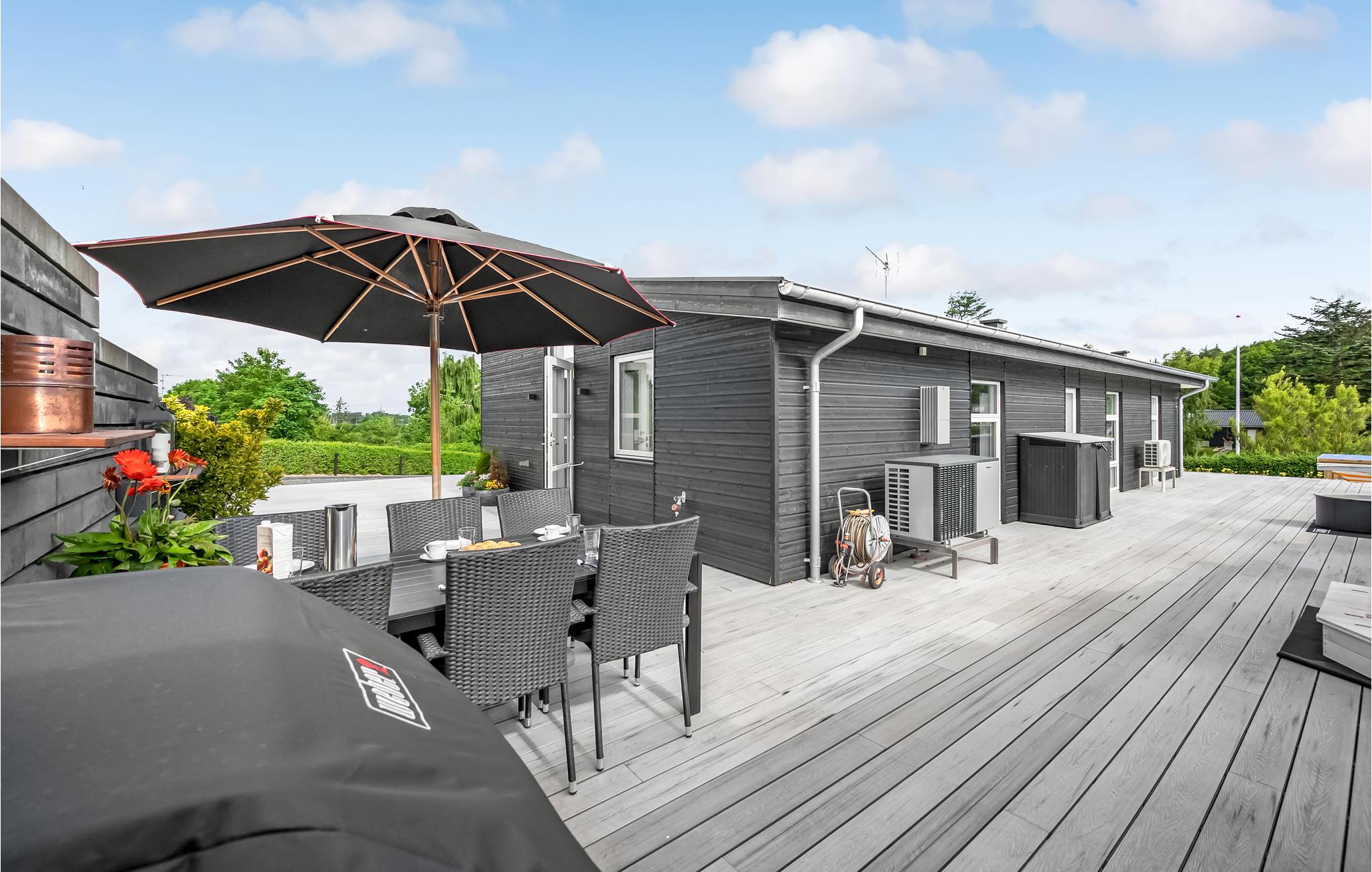 Luksuriøst sommerhus med stor terrasse nær Hvalpsund og havet, perfekt til afslapning og naturoplevelser i Nordjylland.