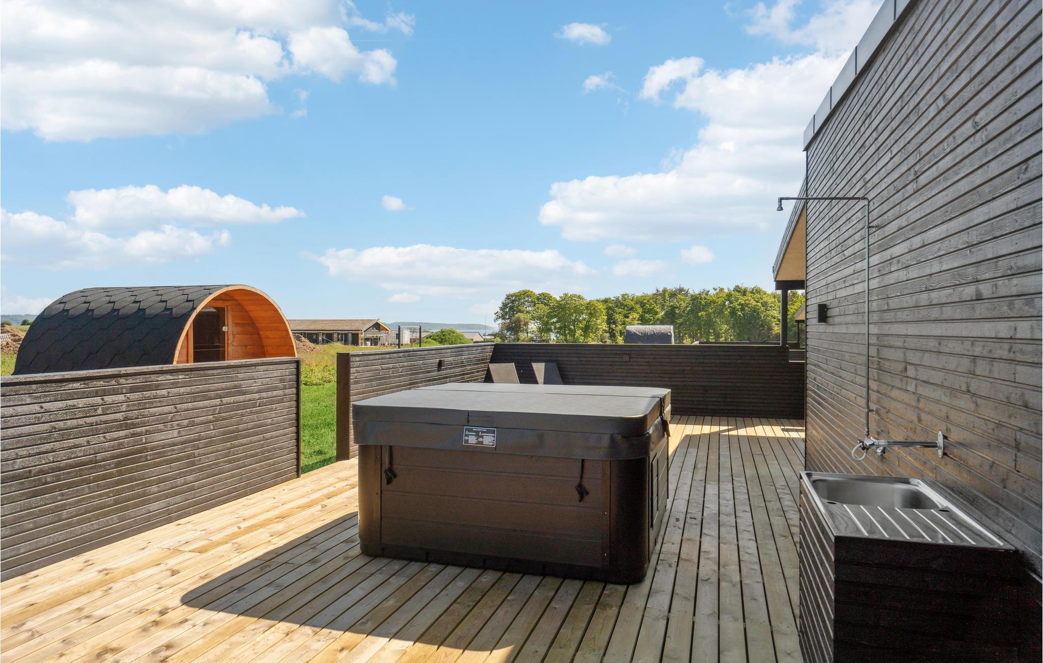 Med til huset hører en dejlig grund med græsareal, flotte terrasser og en jacuzzi, hvor I kan hvile de ømme muskler efter dagens strabadser. Nyd solen og lidt wellness i det fri på den ene side af huset, mens den anden terrasse er det oplagte sted at samles til en grillmiddag eller en kølig drink. Børnene vil sikkert bruge en god del af tiden på at gynge og lege fangeleg i haven.