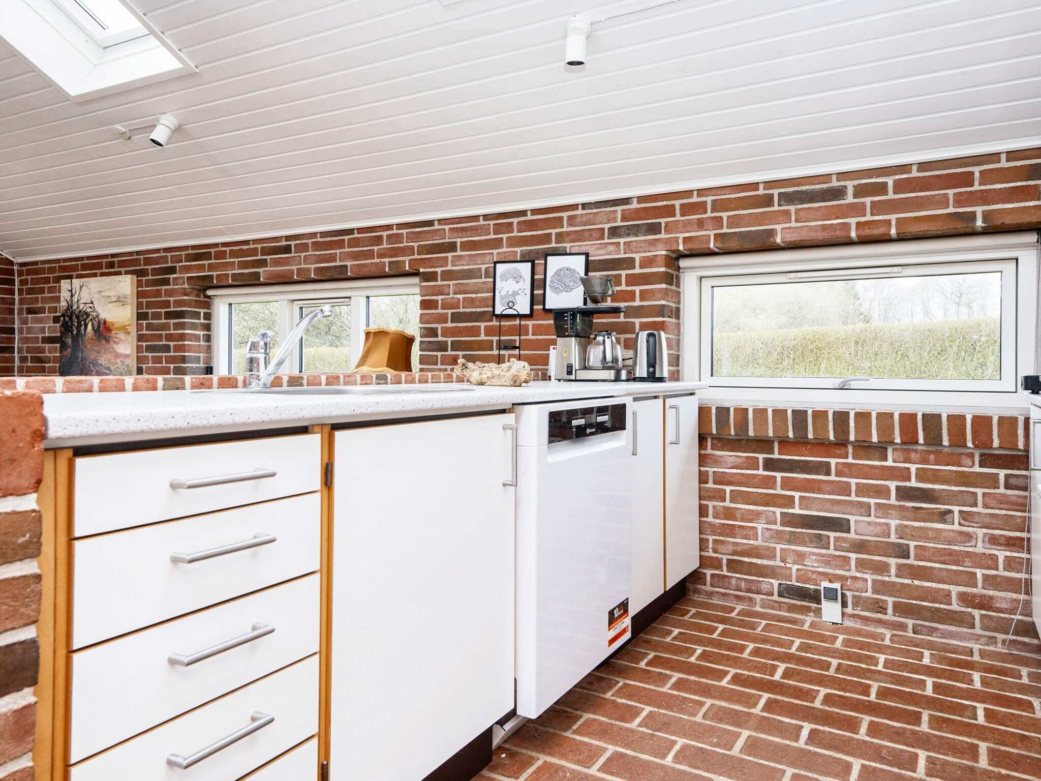 Indvendigt rummer huset et lyst og indbydende køkken og opholdsstue med loft til kip og ovenlys, hvilket skaber en luftig og imødekommende atmosfære. De rustikke murstensgulve tilføjer varme og karakter, mens komfortable møbler gør det nemt at finde sig til rette og føle sig hjemme. Badeværelset, nyrenoveret og udvidet i 2023, tilføjer et moderne touch til ejendommen. Efter en dag på stranden kan du slappe af i hjemmets spabad eller samles i det hyggelige opholdsrum med din yndlingsbog eller film.