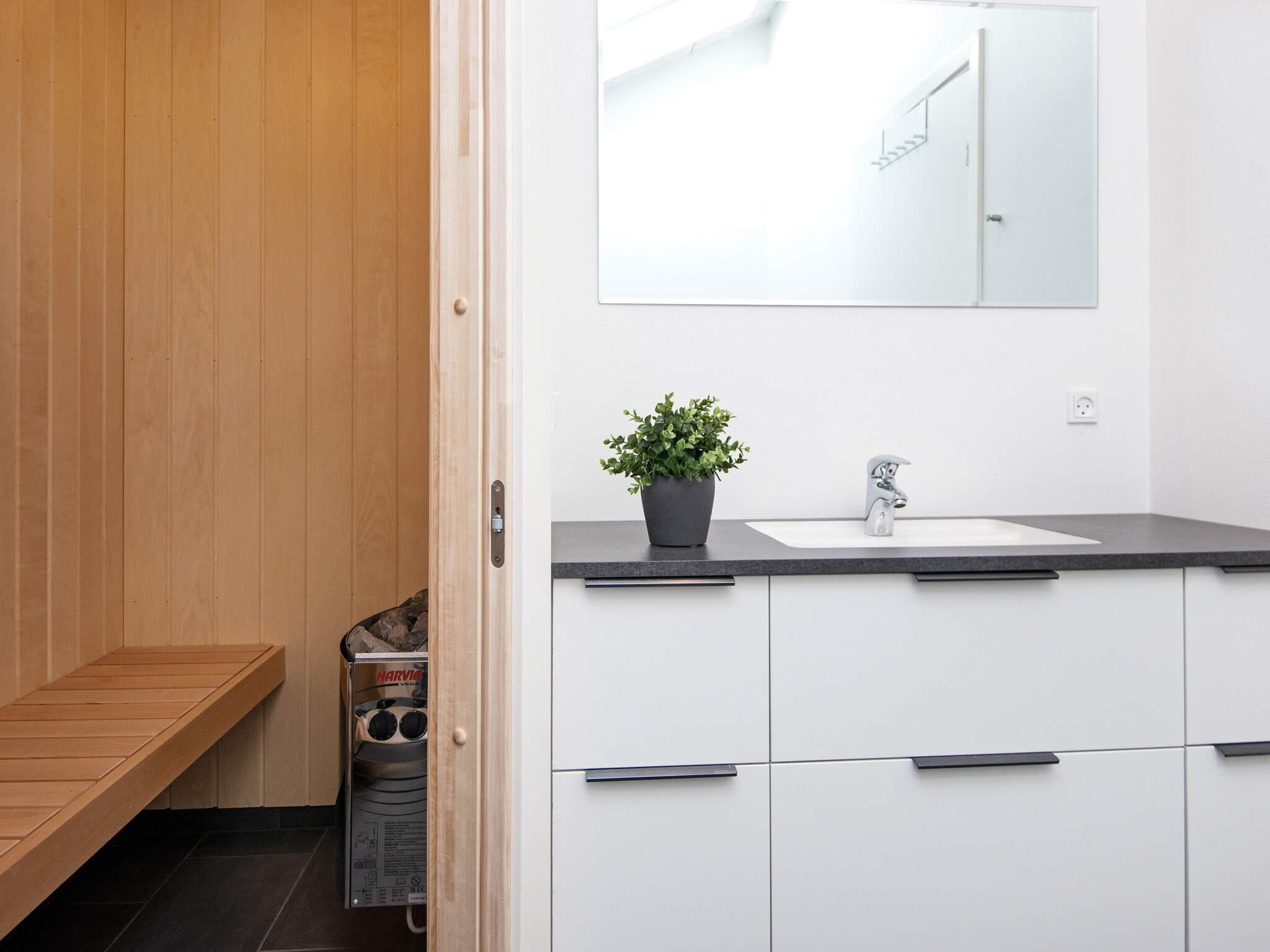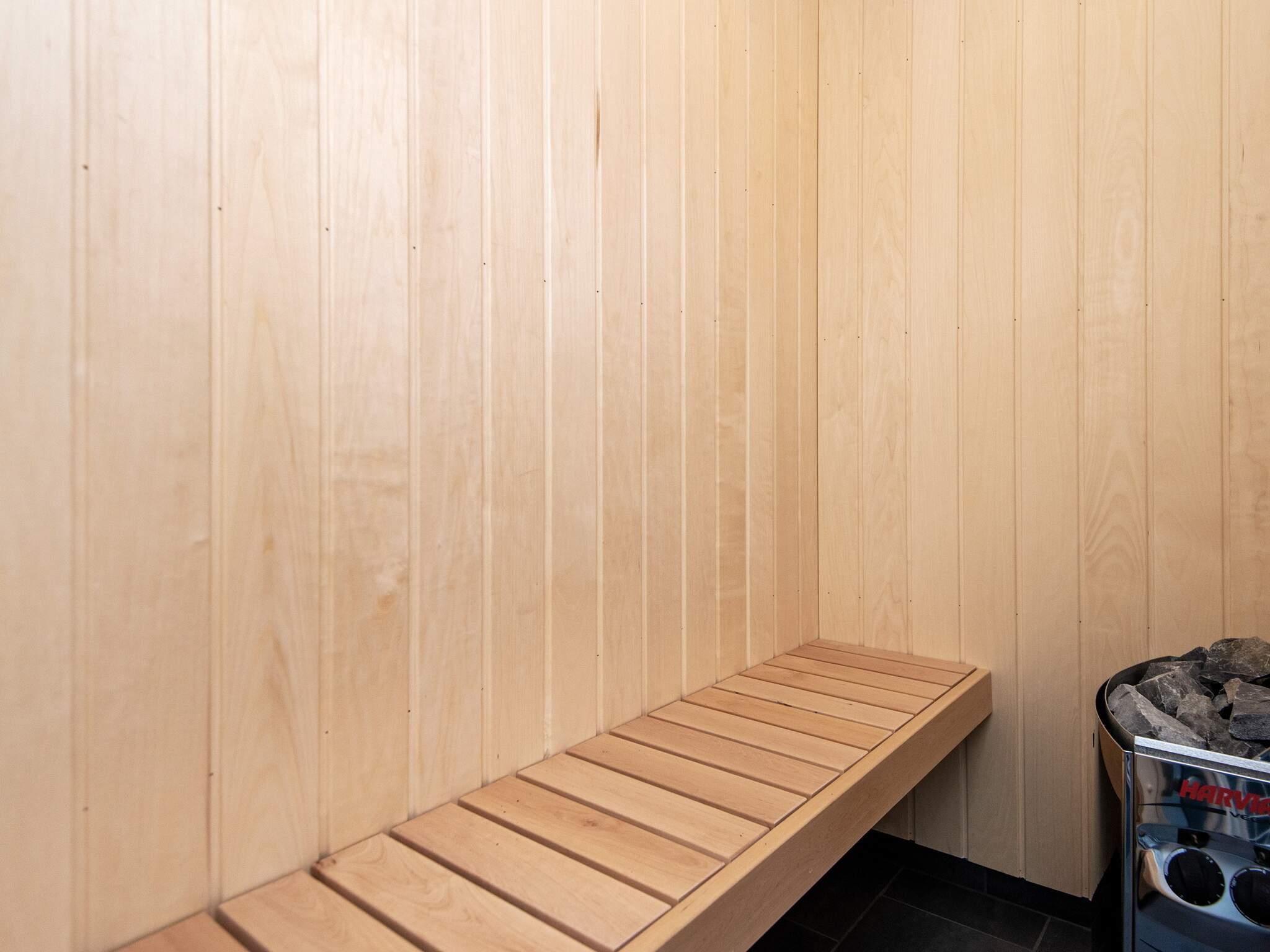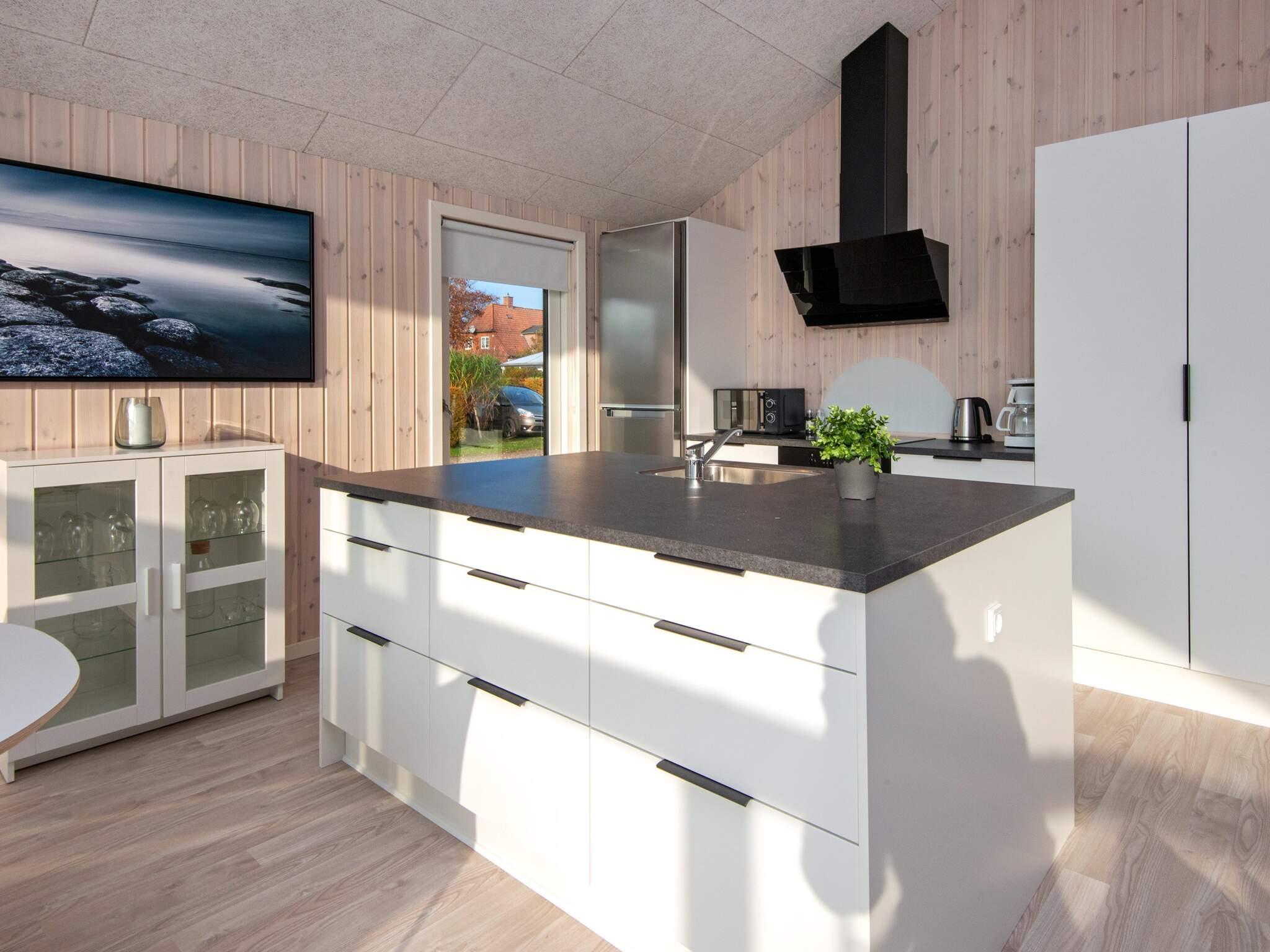 Gæsterne kan slappe af på badeværelset, som har både et beroligende spabad og en sauna, hvilket gør det nemt at nyde wellness og afslapning uden at forlade huset. Hjemmets hjerte er køkkenet og opholdsstuen i åbent plan, komplet med en spise- og opholdsafdeling, hvor hele familien kan samles til måltider, spil eller stille aftener ved fjernsynet. Store vinduespartier skaber en lys og imødekommende atmosfære og giver direkte udgang til den rummelige terrasse, der nærmest slynger sig om hele huset. Udstyret med udendørsmøbler er den ideel til grillaftener, til at slappe af i solen eller blot nyde den friske kystluft.