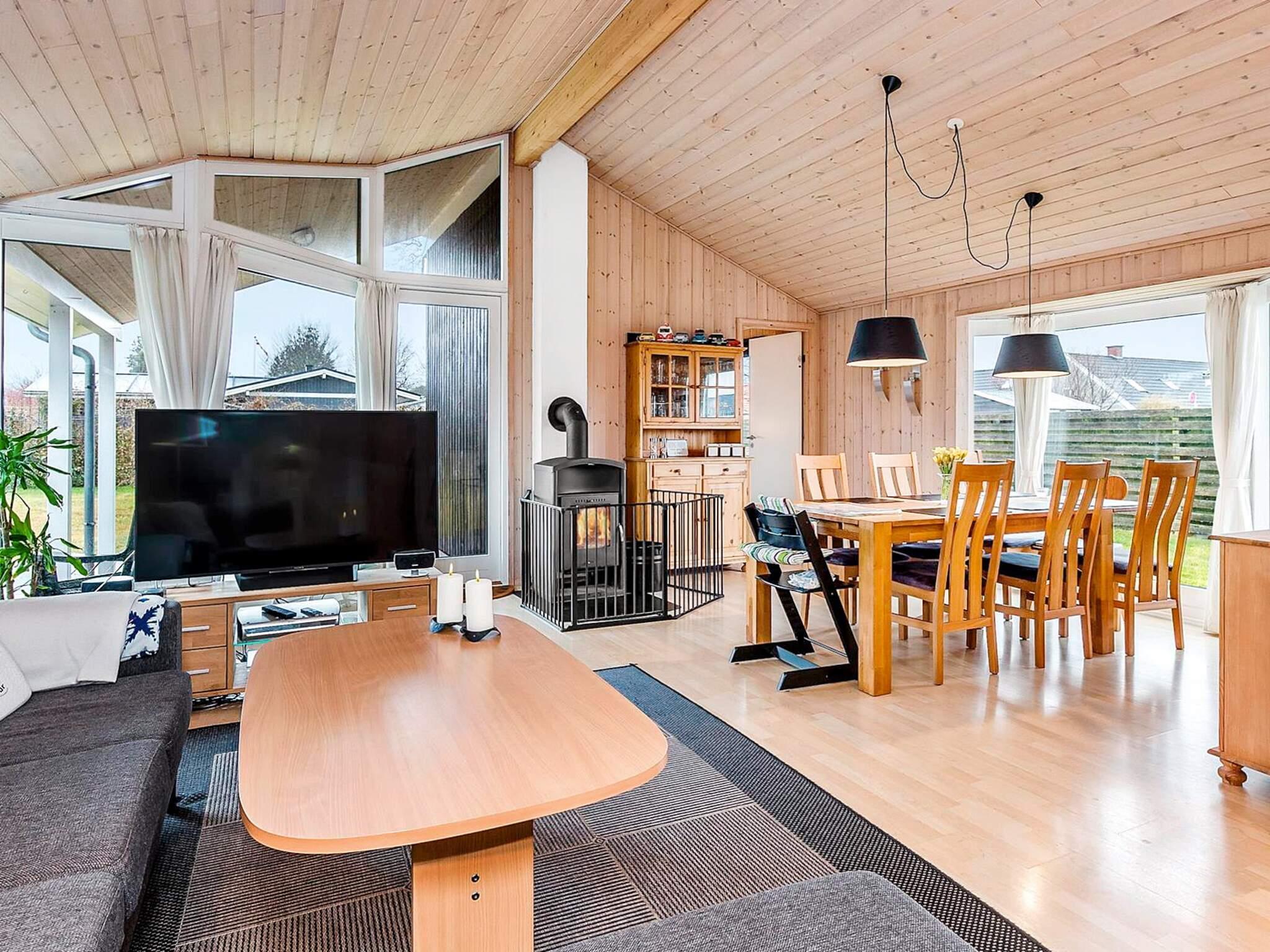 Kun en kort gåtur fra sandstranden ved Høll er dette feriehus et sted, hvor familiens minder skabes. Dens afslappede omgivelser, omgivet af grønne områder, føles både fredelige og indbydende, mens den børnevenlige græsplæne udenfor hurtigt forvandles til en legeplads med latter og leg. Indenfor åbner den hyggelige stue direkte ud til terrassen og haven, så det er nemt at flyde mellem solbeskinnede morgener udendørs og stille aftener indendørs. Uanset om det er morgenmad i den friske luft eller at se børnene jage en bold hen over græsset, går livet her i et roligt tempo.
