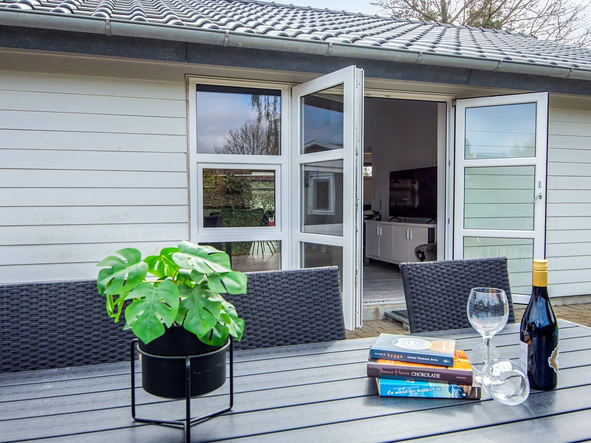 Udendørs kan i nyde de lange sommeraftener på den store terrasse. Haven er omkranset af hække, hvilket giver en privat og ugenert atmosfære. Der er også en grill og havemøbler til rådighed