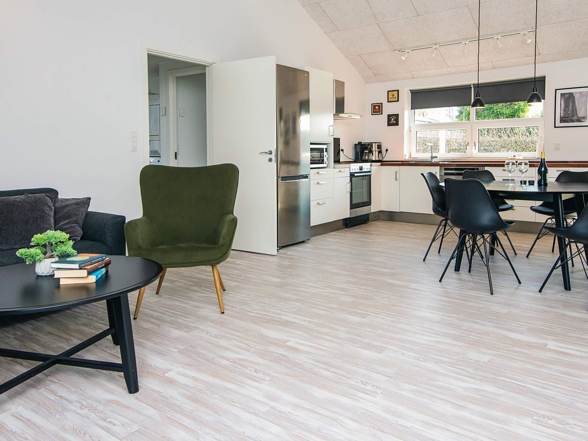 Sommerhuset byder på en lys og indbydende atmosfære med moderne møblering og alle nødvendige faciliteter. Huset har tre komfortable soveværelser og en hems som især børnene vil elske. Husets hjerte er det store køkken alrum i åben forbindelse med opholdsstuen. Der er både gæstetoilet og et moderne badeværelse med bruseniche.