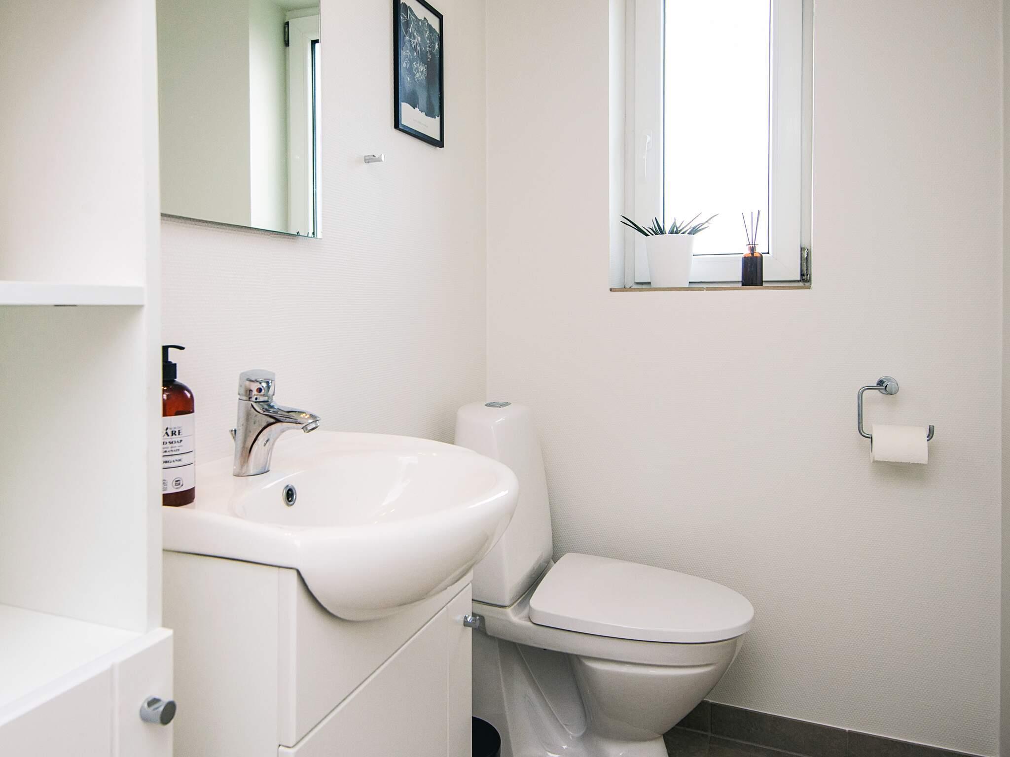 Bad/wc: Vaskemask., tørretumbler, wc, håndvask, bruser