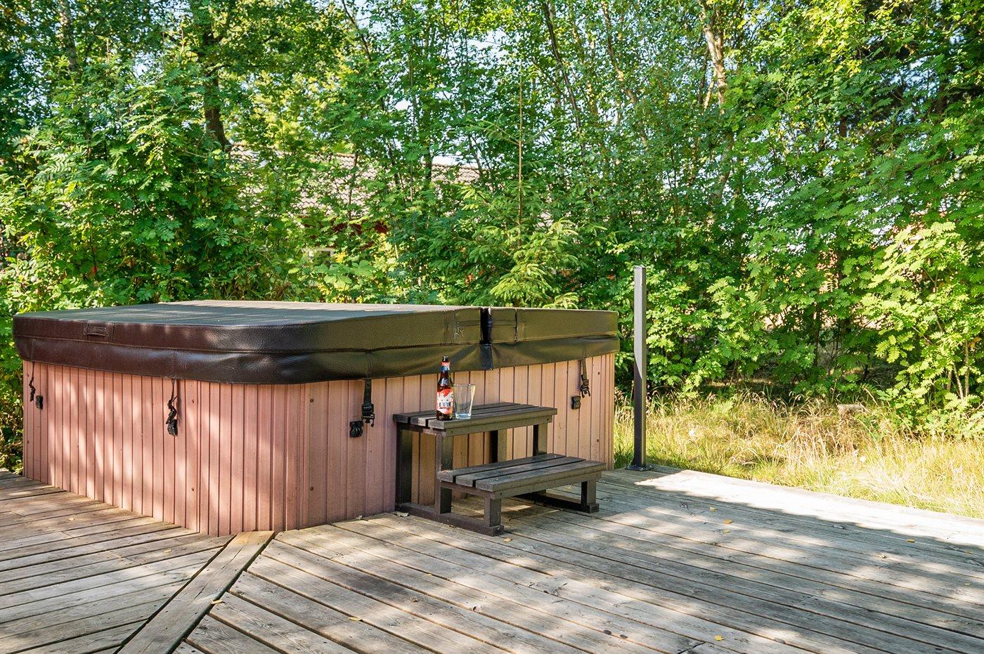 Der er mulighed for afslapning i udendørs standvandsspa til 5 personer.