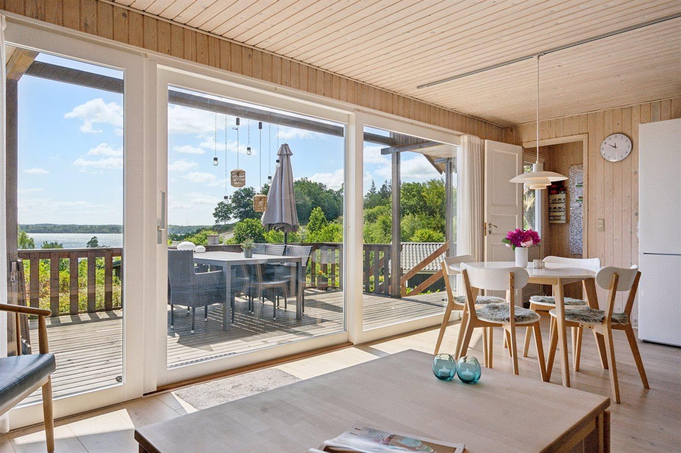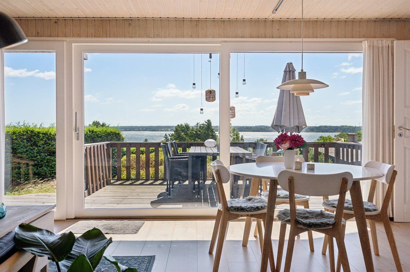 Dette dejlige og velindrettede sommerhus har en helt fantastisk beliggenhed i det attraktive og naturskønne ferieområde ved Hvidbjerg - ud til Lillebælts smukke kyststrækning. Sommerhuset er beliggende med en meget flot udsigt over fjorden, som kan nydes såvel inde fra huset som fra terrassen. Du kan gå en en skøn tur langs vandet, som kun ligger ca. 150 m fra huset, hvor du også passerer Hvidbjerg Klit, der ligger lige ved siden af huset. I Høll som ligger i forlængelse af Hvidbjerg findes "Fladstranden", som er områdets bedste og mest børnevenlige sandstrand. Her kan familien bruge adskillige timer på at hygge sig i vandkanten og nyde de skønne omgivelser.