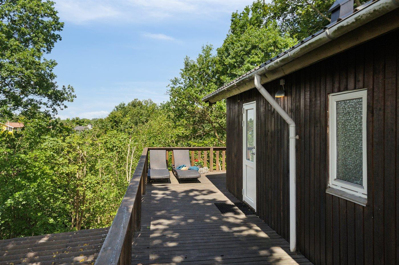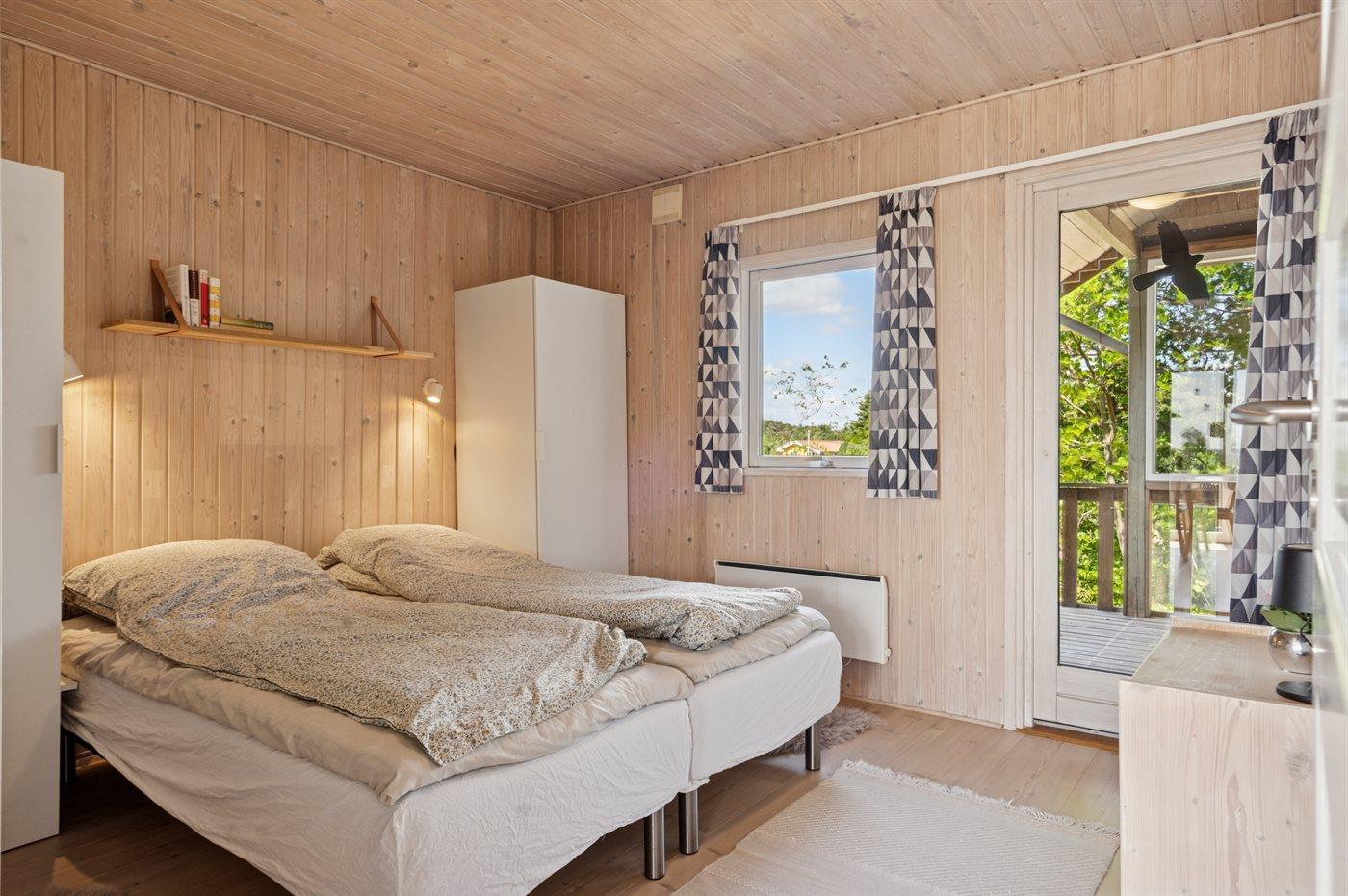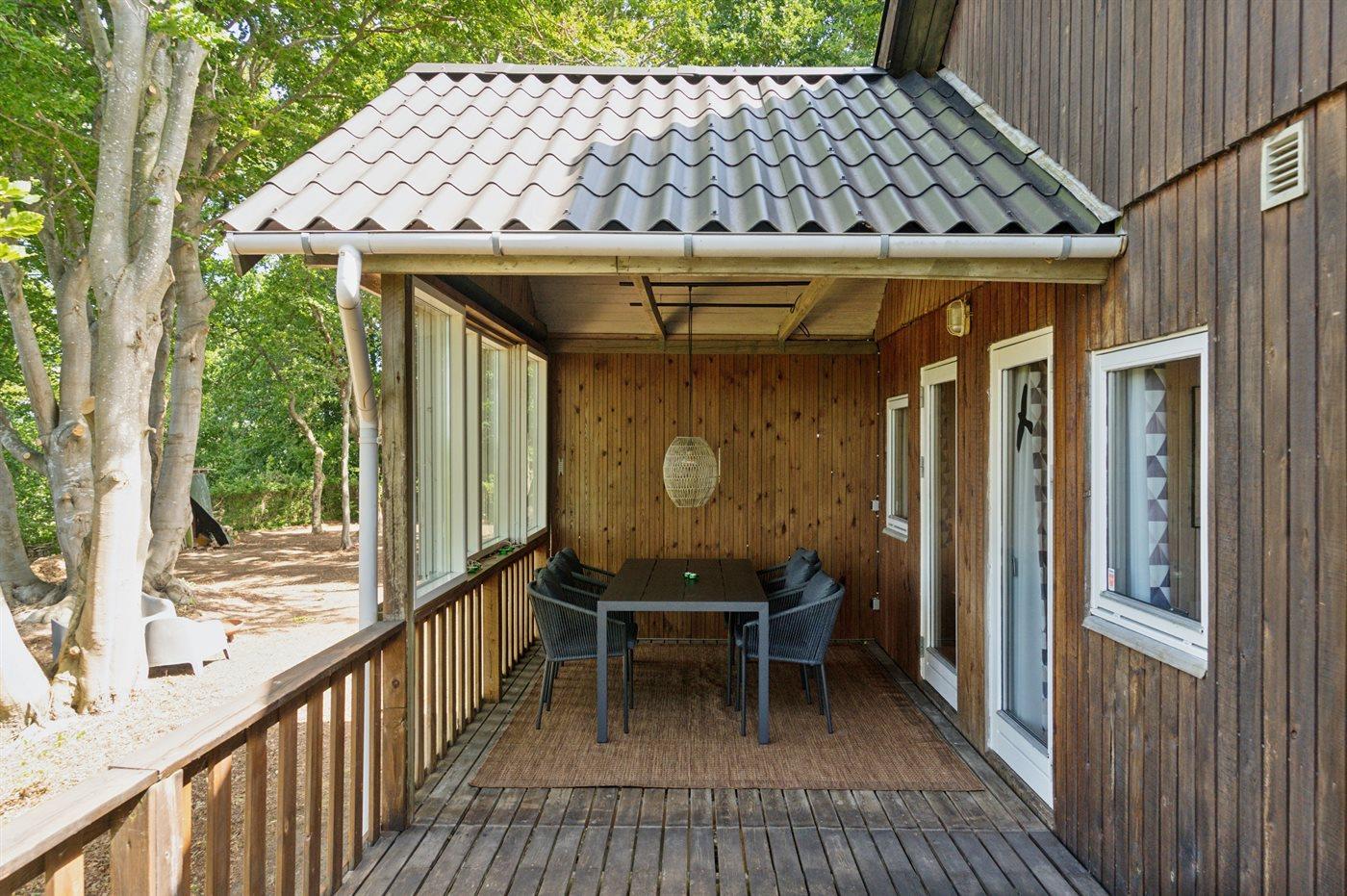Der er delvist overdækkede terrasser på begge sider af huset. Sommerhuset er beliggende på en dejlig stor naturgrund og i fuldstændig ugenerte omgivelser - specielt på bagsiden af huset, hvor også den meget hyggelige overdækkede terrasse befinder sig. Ferieområdet indbyder til gåture i den dejlige natur, og en særlig oplevelse er et besøg på Hvidbjerg Klit lige ved siden af huset. Området byder også på et ishus og kaffested.