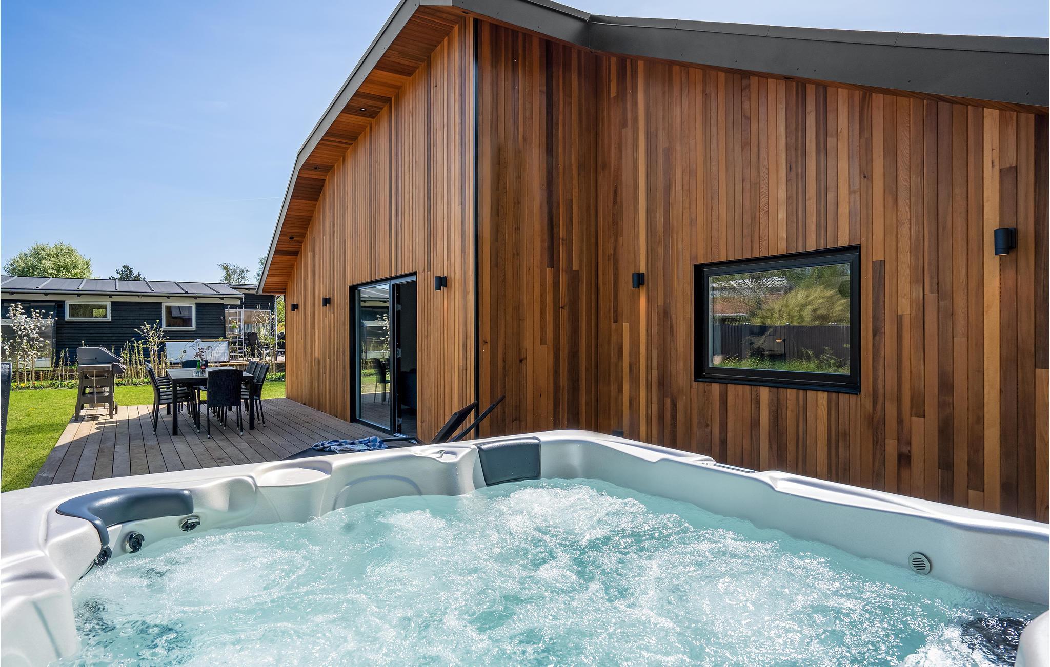 Der er åbne terrasser på begge sider af huset, således at I altid har mulighed for at sidde i solen. På den ene terrasse finder I også et udendørs spabad, hvor I på én og samme gang kan nyde det varme vand, den friske luft og måske en kølig drink.