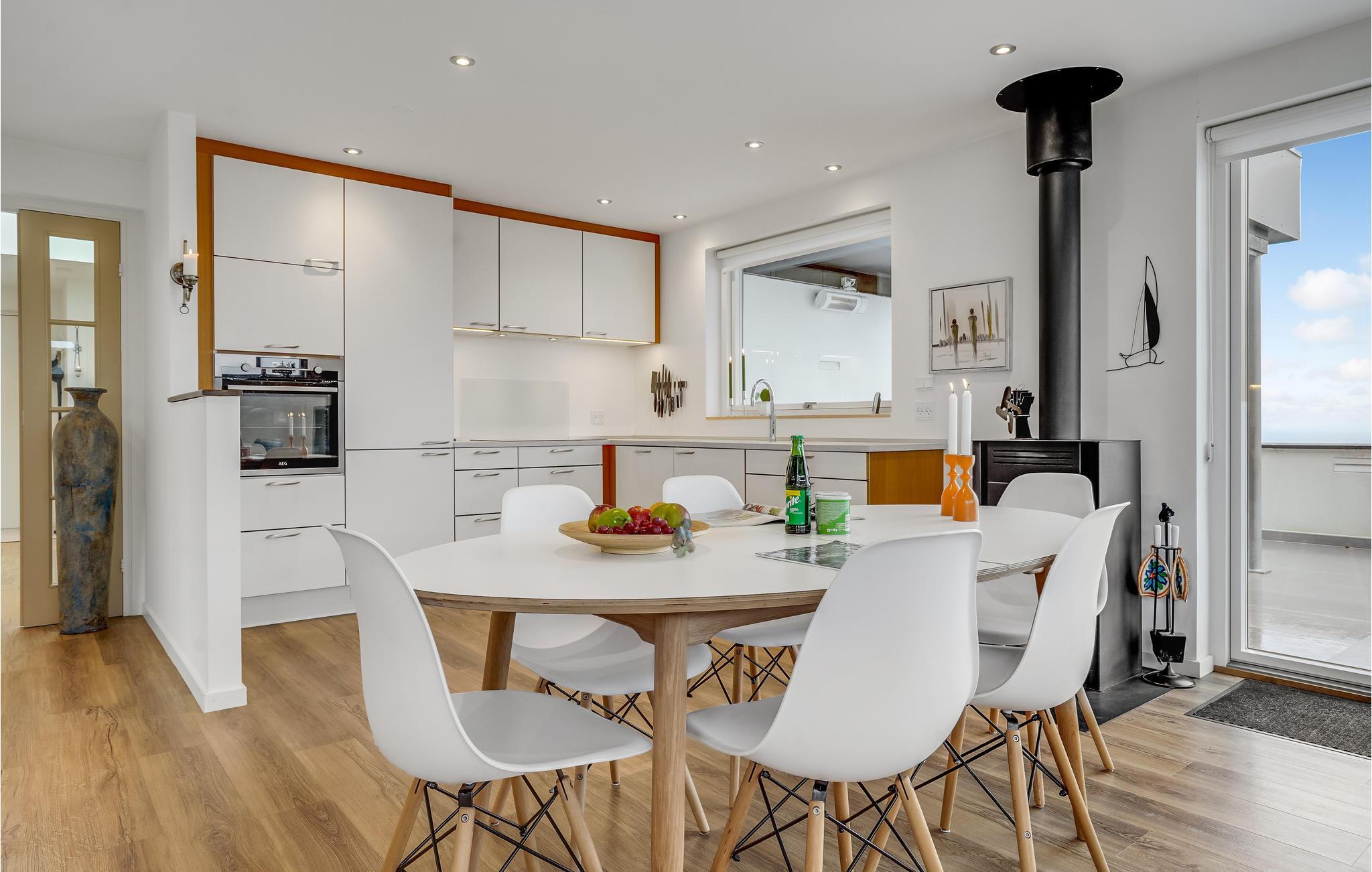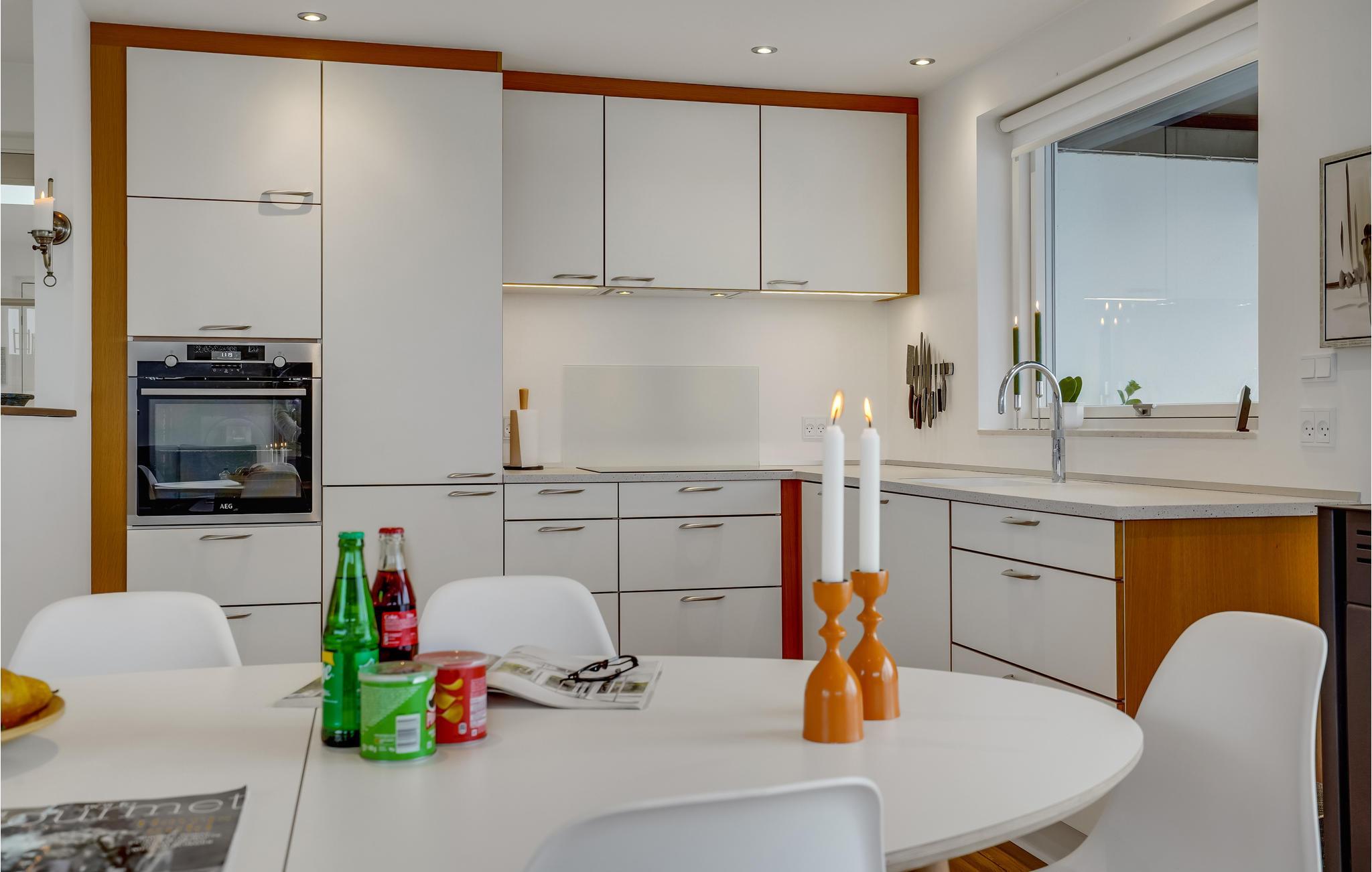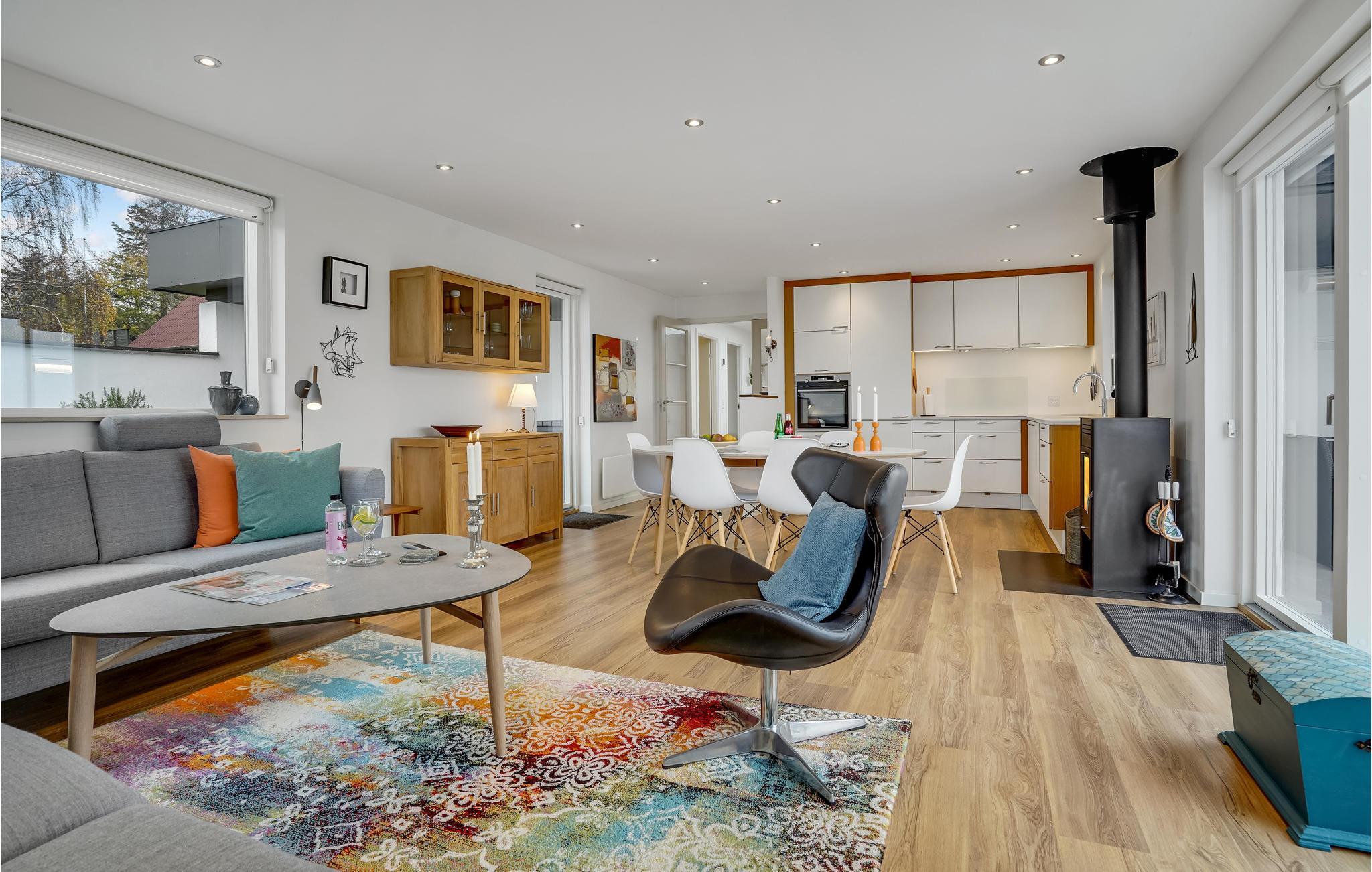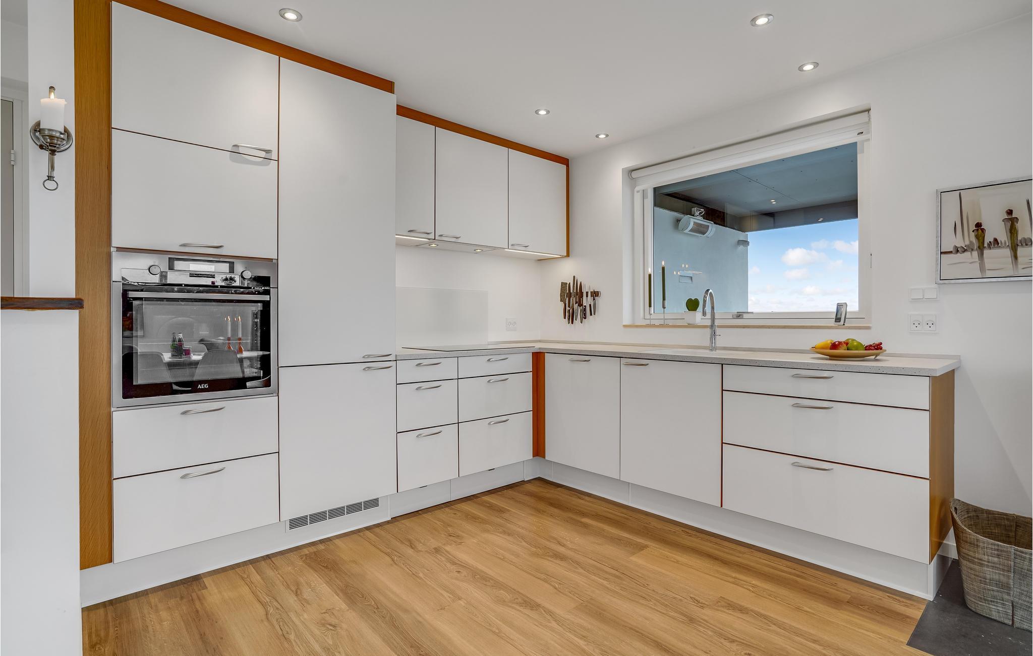 Hvidbjerg Strand ligger ud til maleriske Vejle Fjord, og her finder I dette vidunderlige feriehus. Indretningen er moderne og minimalistisk med lækre materialer og en rolig farveskala. Tilbring hyggelige aftener med ild i brændeovnen eller nyd varmen fra spabadet efter en lang dag ude i den friske luft. I kan også se frem til et dejligt udeareal med skønne miljøer, hvor I kan læne jer tilbage, mens børnene leger.